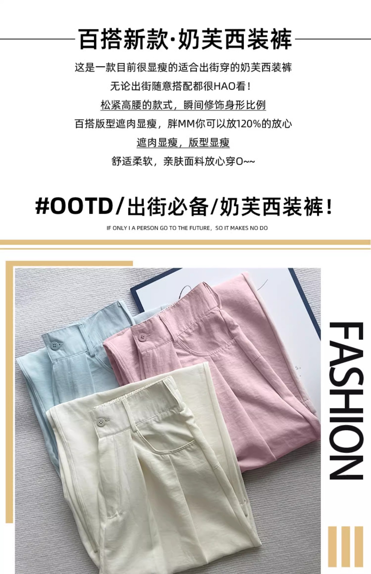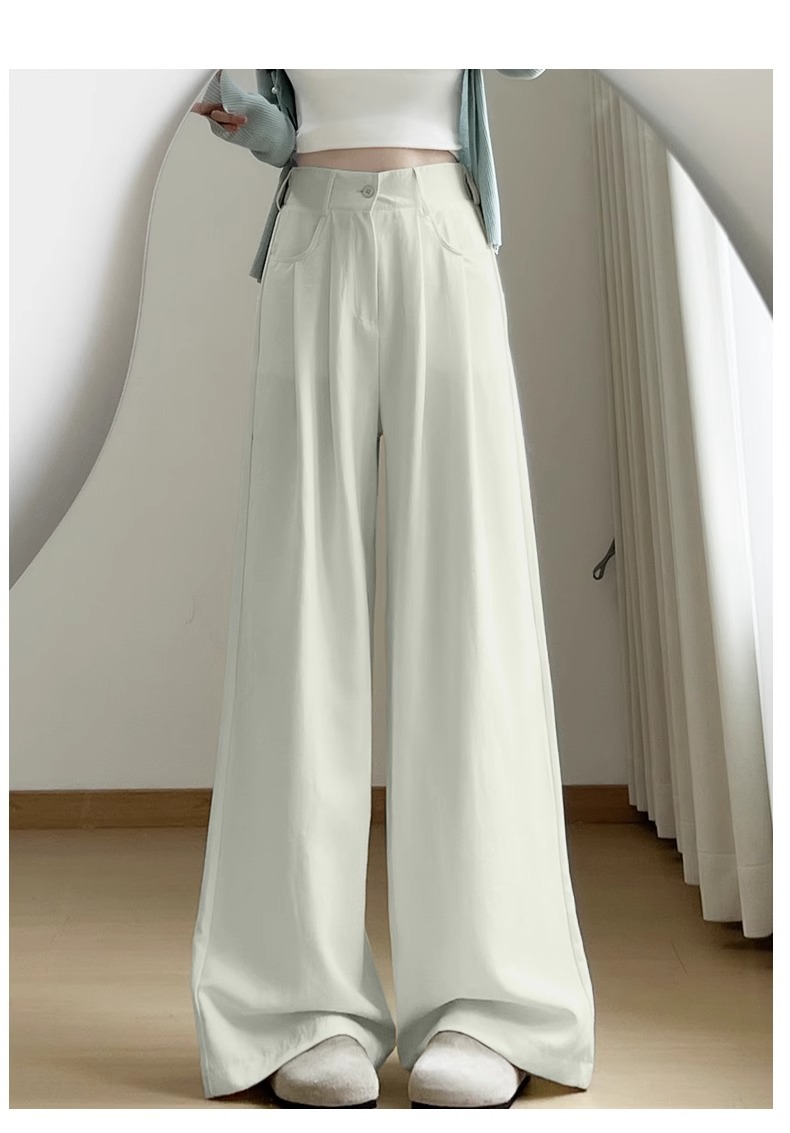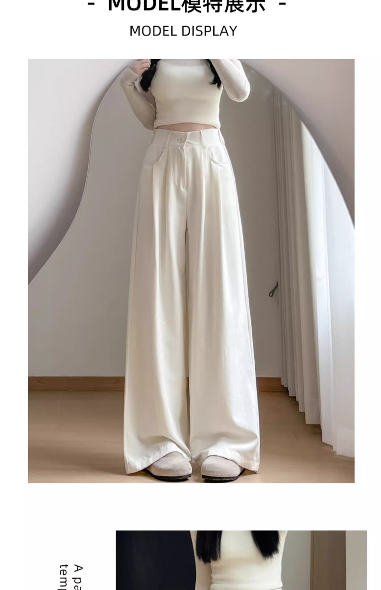 아이보리 밀크 푸 세트 넓은 다리 바지 여성 여름 얇은 2025 새로운 스타일 작은 높은 허리 얼음 실크 dape 야마모토 바지스토어 가기