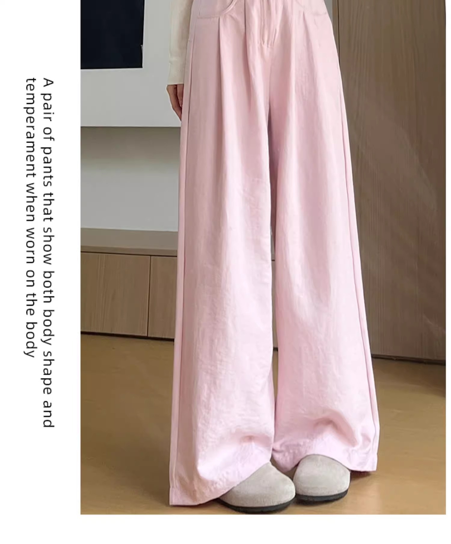 아이보리 밀크 푸 세트 넓은 다리 바지 여성 여름 얇은 2025 새로운 스타일 작은 높은 허리 얼음 실크 dape 야마모토 바지