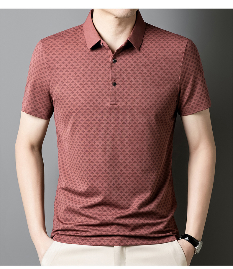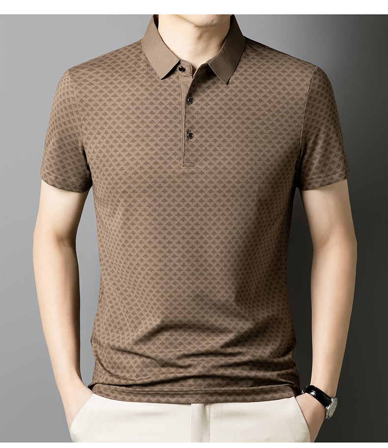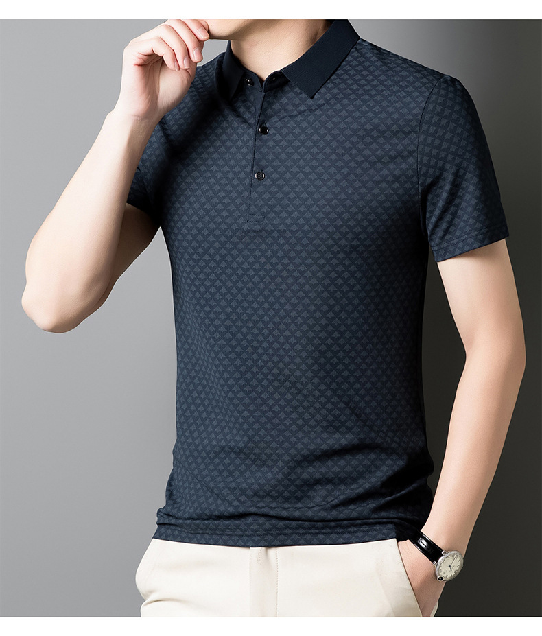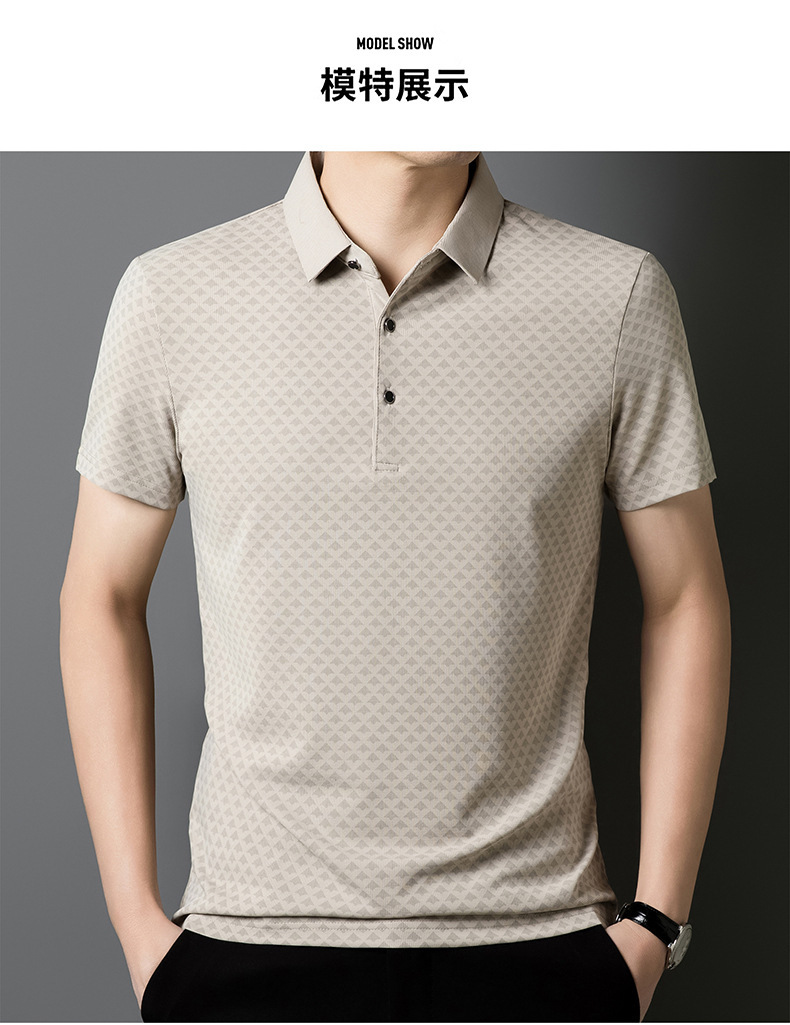 남성 폴로 셔츠 반팔 2025 여름 신작 중년 아빠 프린트 라펠 티셔츠 남성용스토어 가기