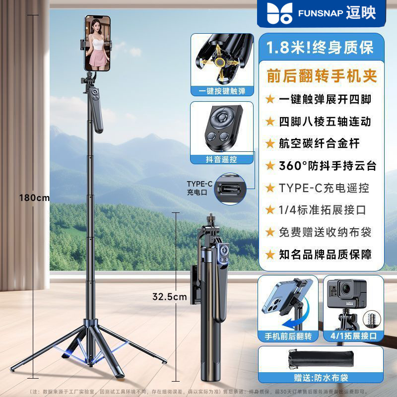 2025 새로운 4축 셀카봉 360도 회전 여행 휴대용 사진 Vlog 촬영 휴대폰 라이브 방송 스탠드