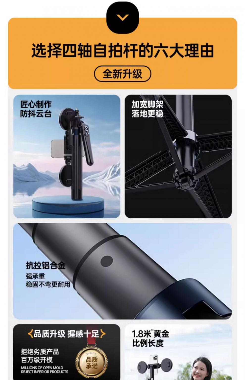 2025 새로운 4축 셀카봉 360도 회전 여행 휴대용 사진 Vlog 촬영 휴대폰 라이브 방송 스탠드스토어 가기