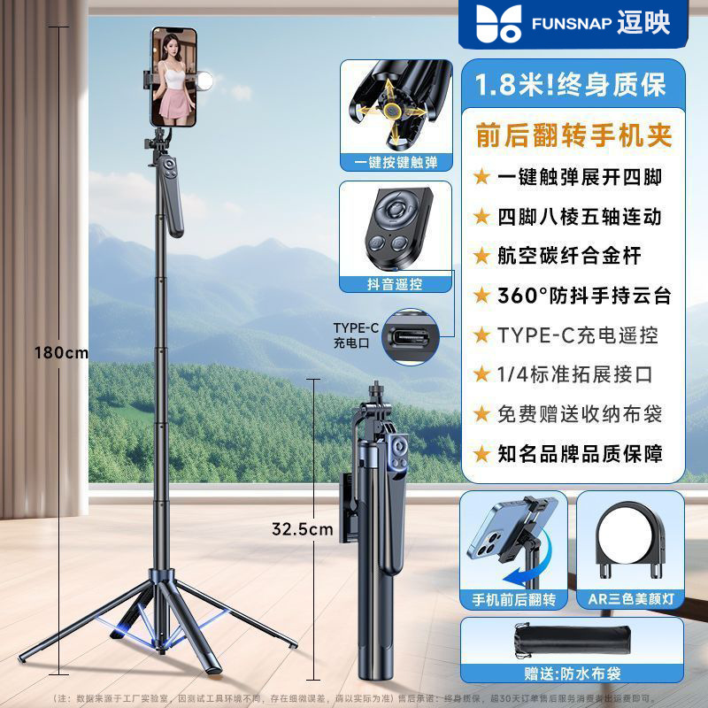 • 1.8m [블루투스 리모컨 + 탄소강 삼각대] 조명 없음