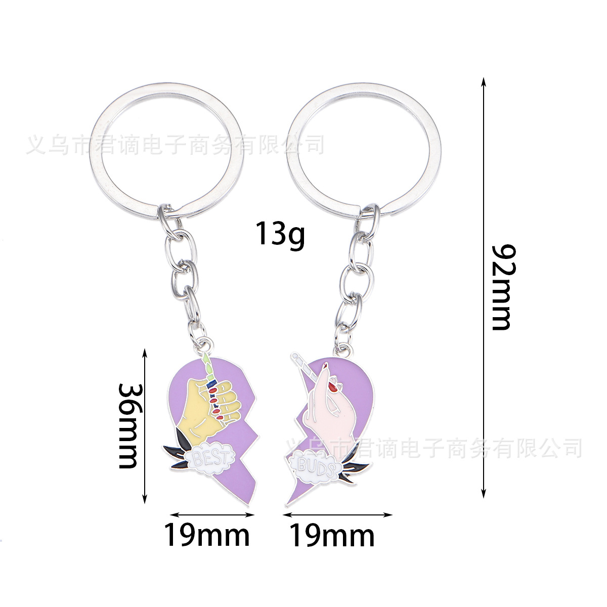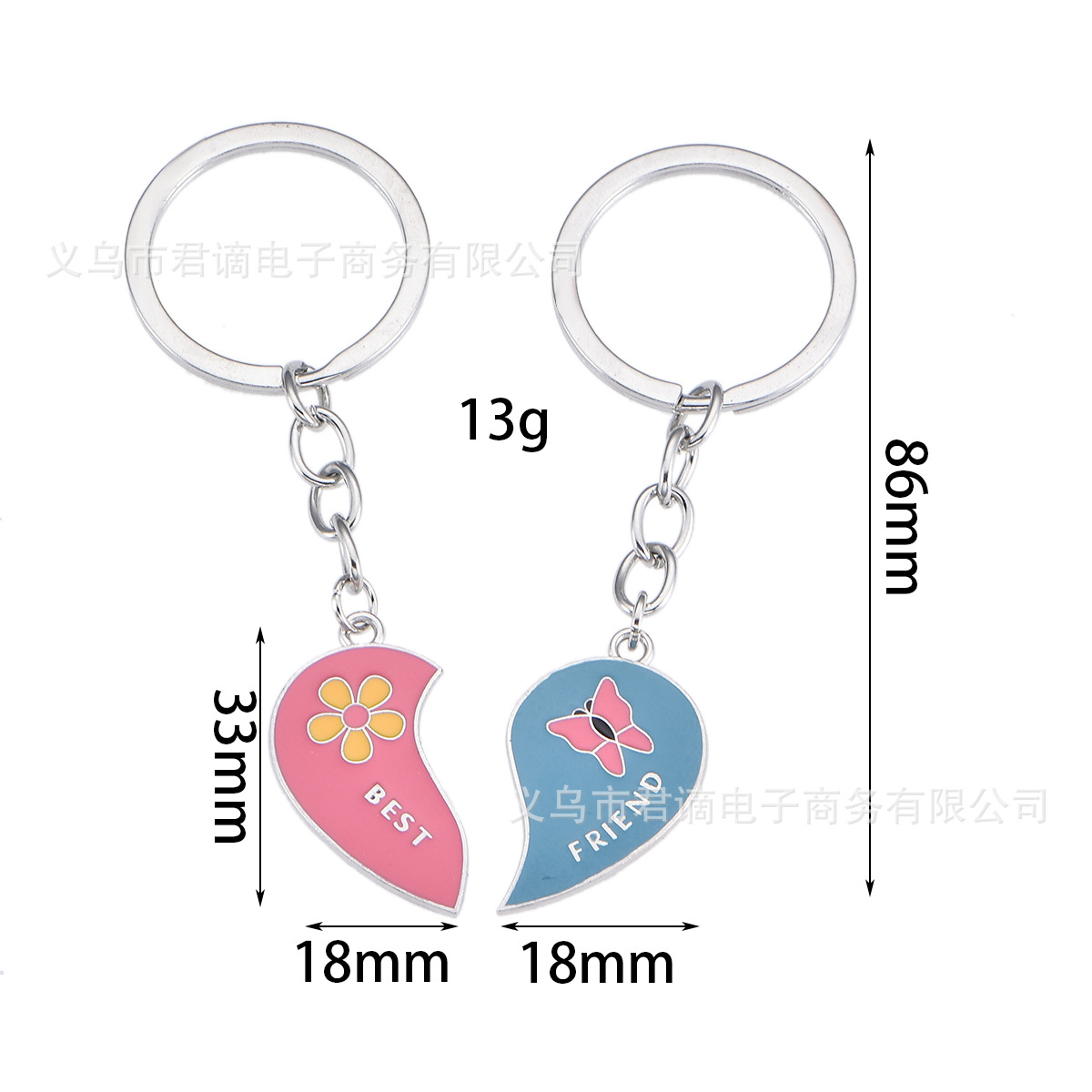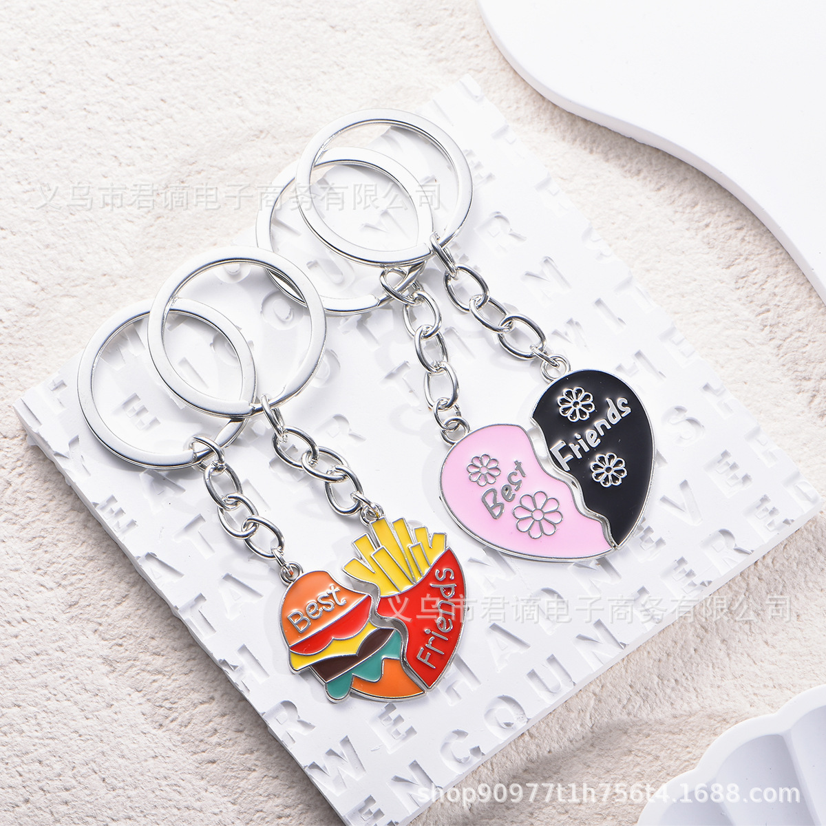 국경 간 뜨거운 판매 하트 모양의 키 체인 어린이 가방 펜던트 합금 떨어 뜨리는 기름 좋은 친구 키 체인 세트스토어 가기