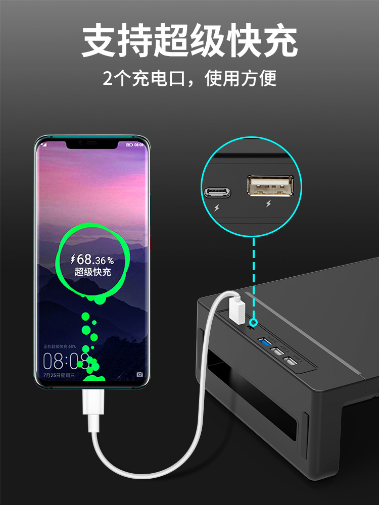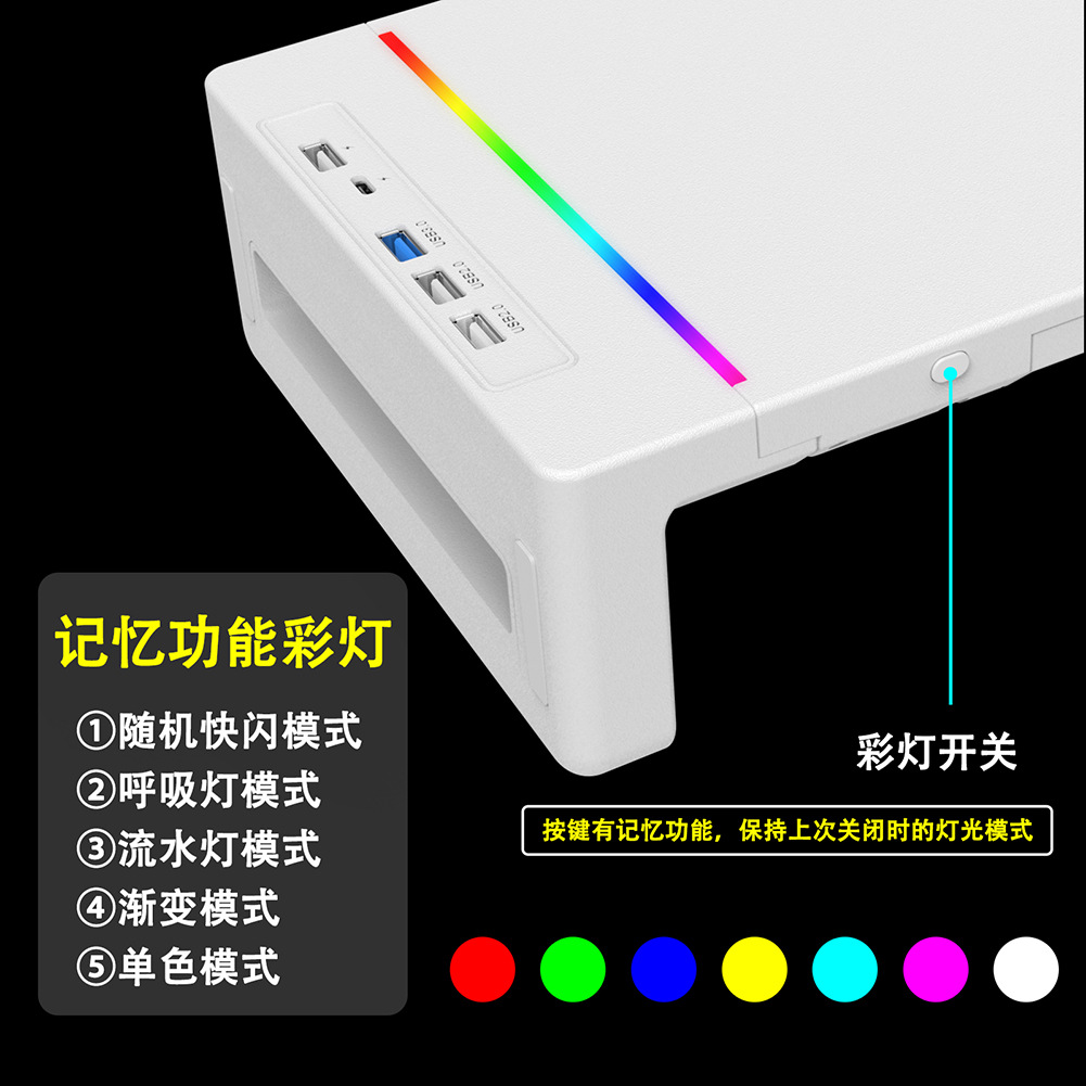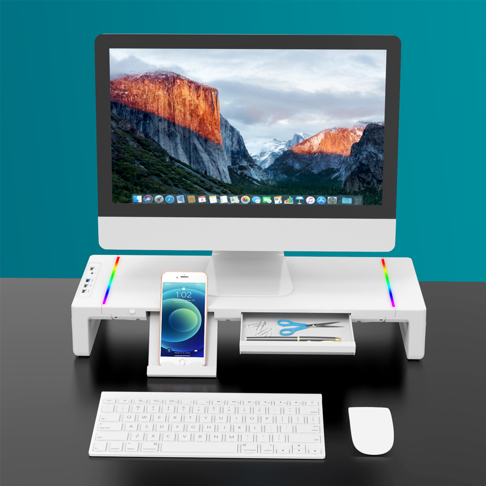 데스크탑 모니터 높은 랙 컴퓨터 디스플레이 노트북 브래킷 USB3.0 고속 충전 RGB 다채로운 조명
