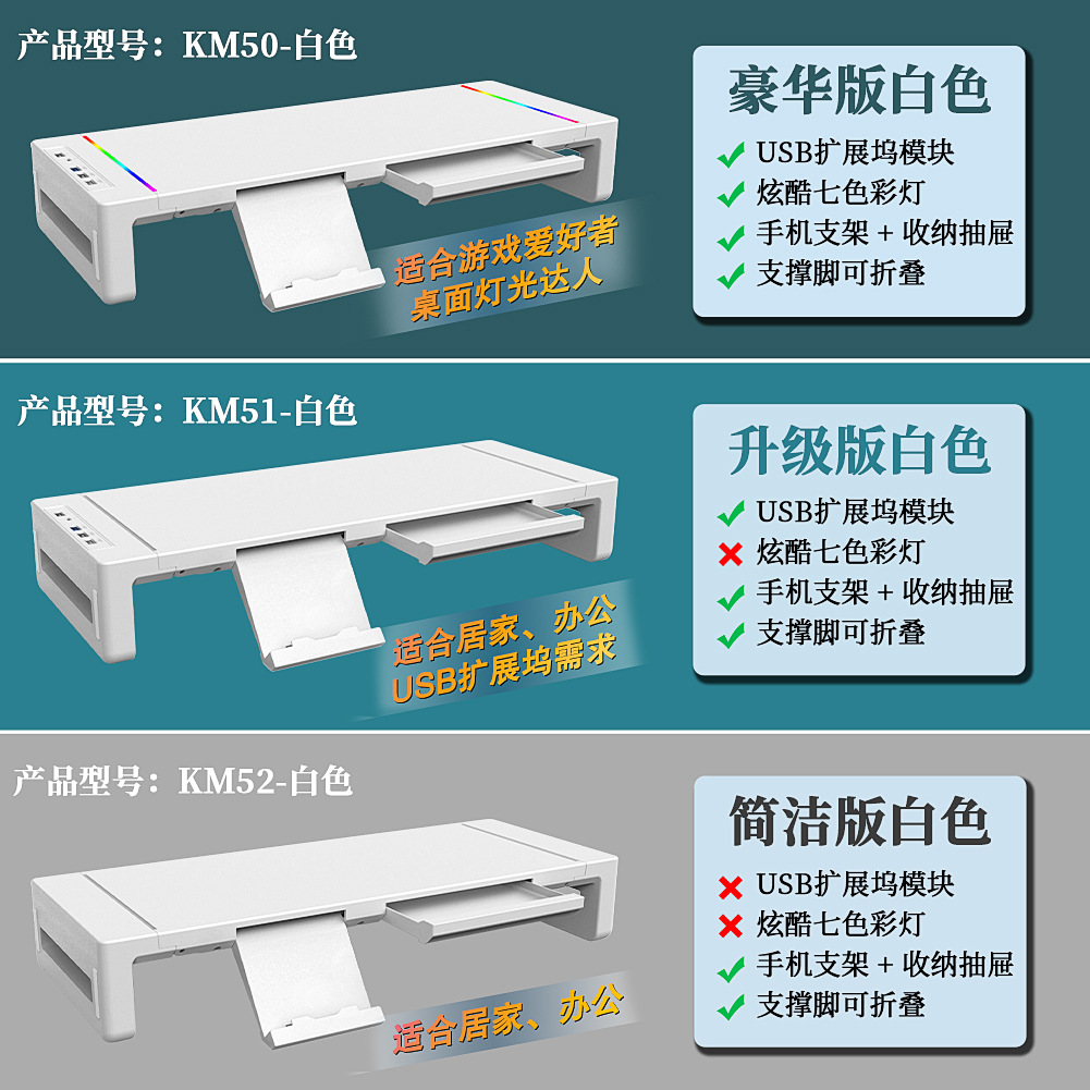 데스크탑 모니터 높은 랙 컴퓨터 디스플레이 노트북 브래킷 USB3.0 고속 충전 RGB 다채로운 조명스토어 가기