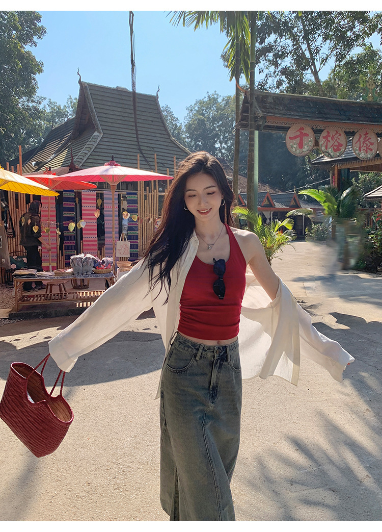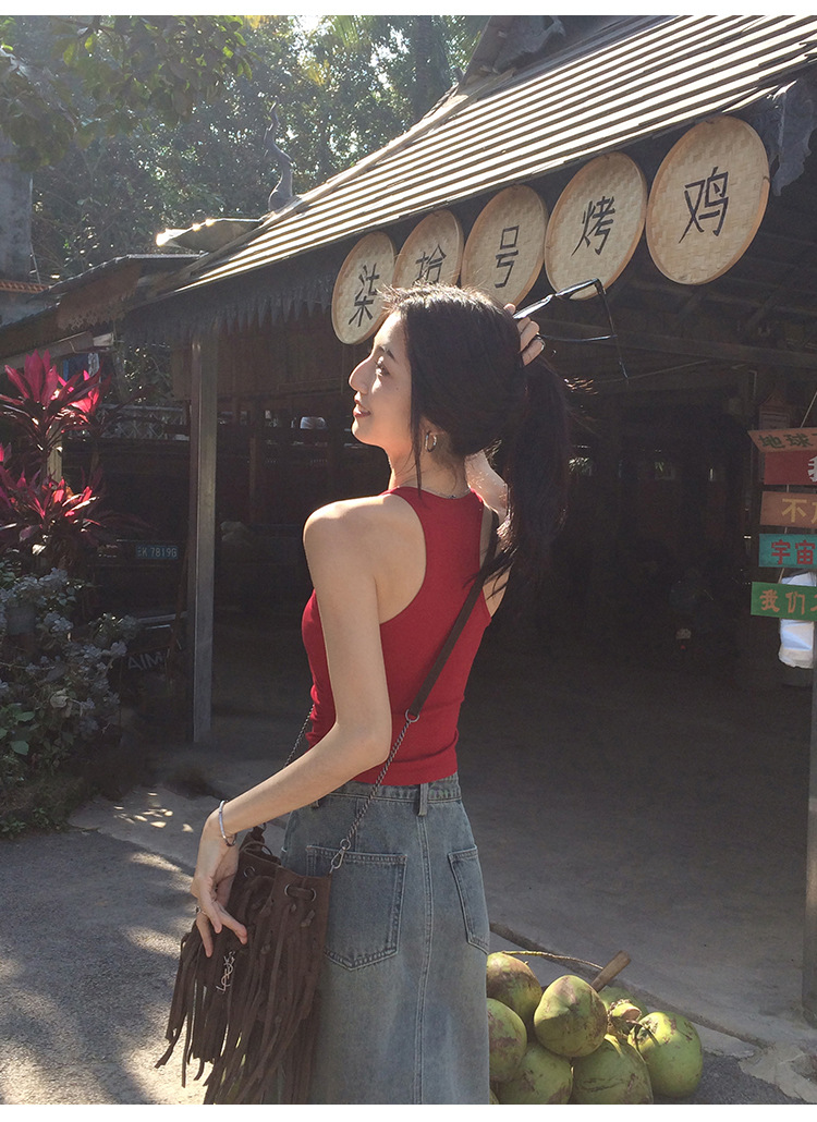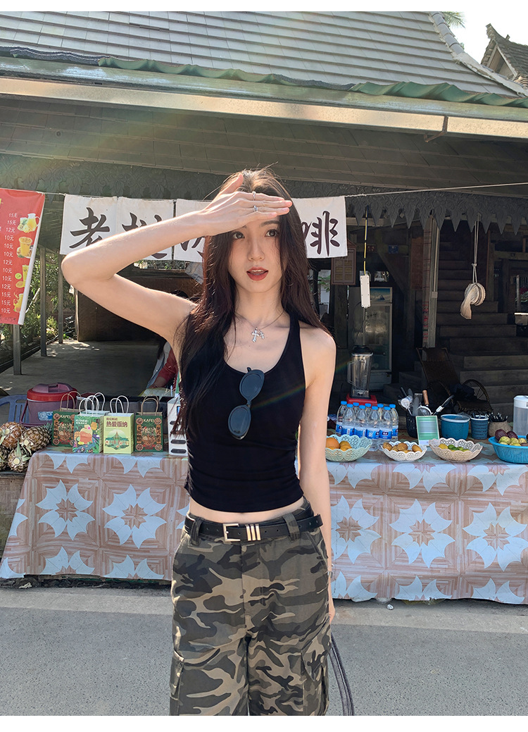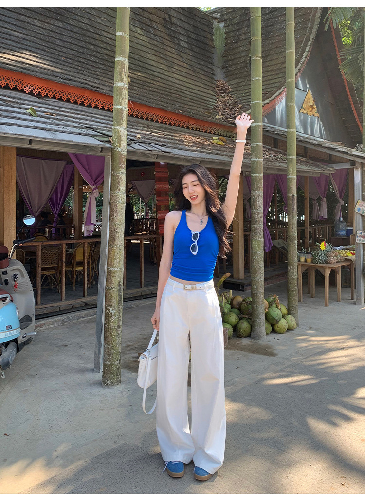 좋은 베이직 화이트 카미 솔 조끼 가슴 패드 여성의 여름 새로운 슬림 핏 I 자형 쇼트 탑