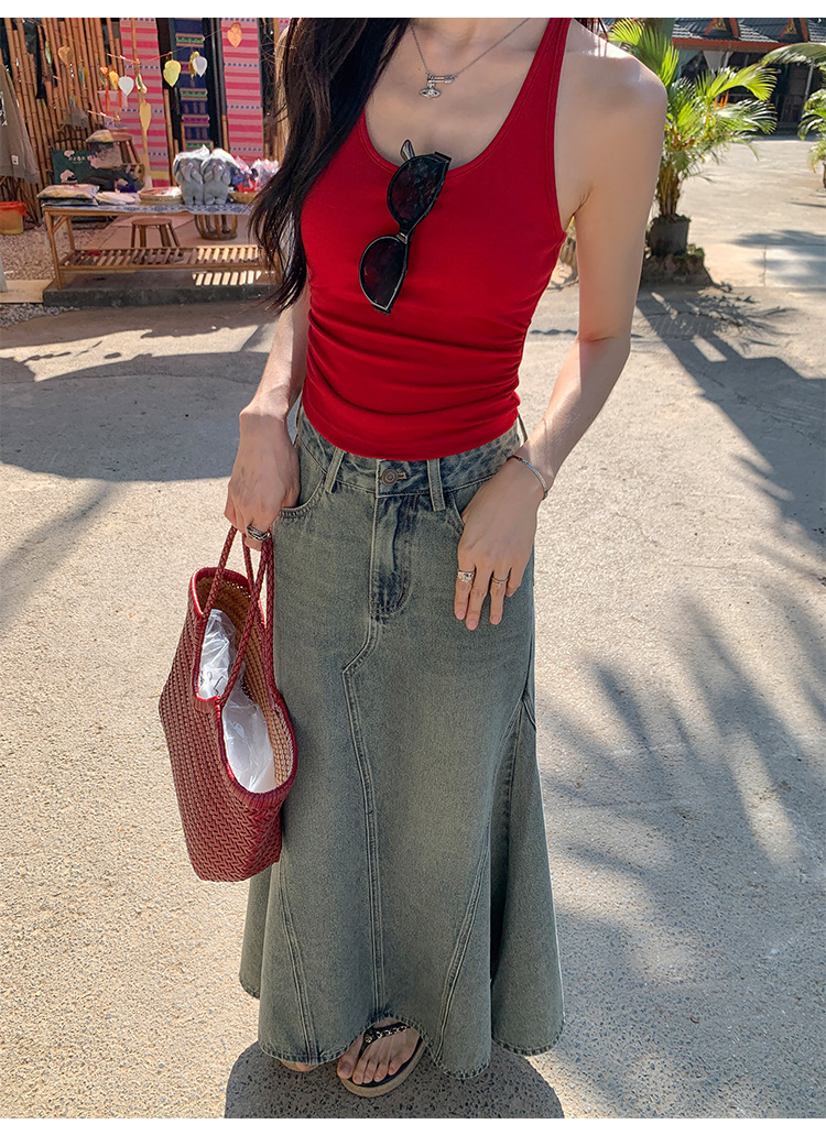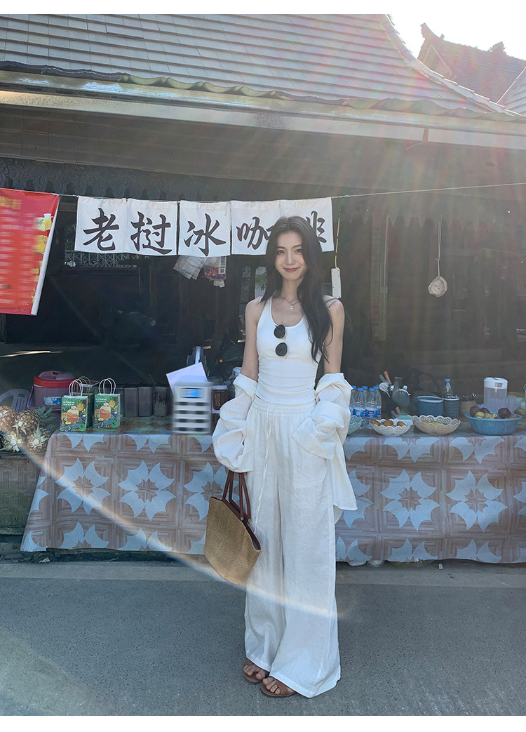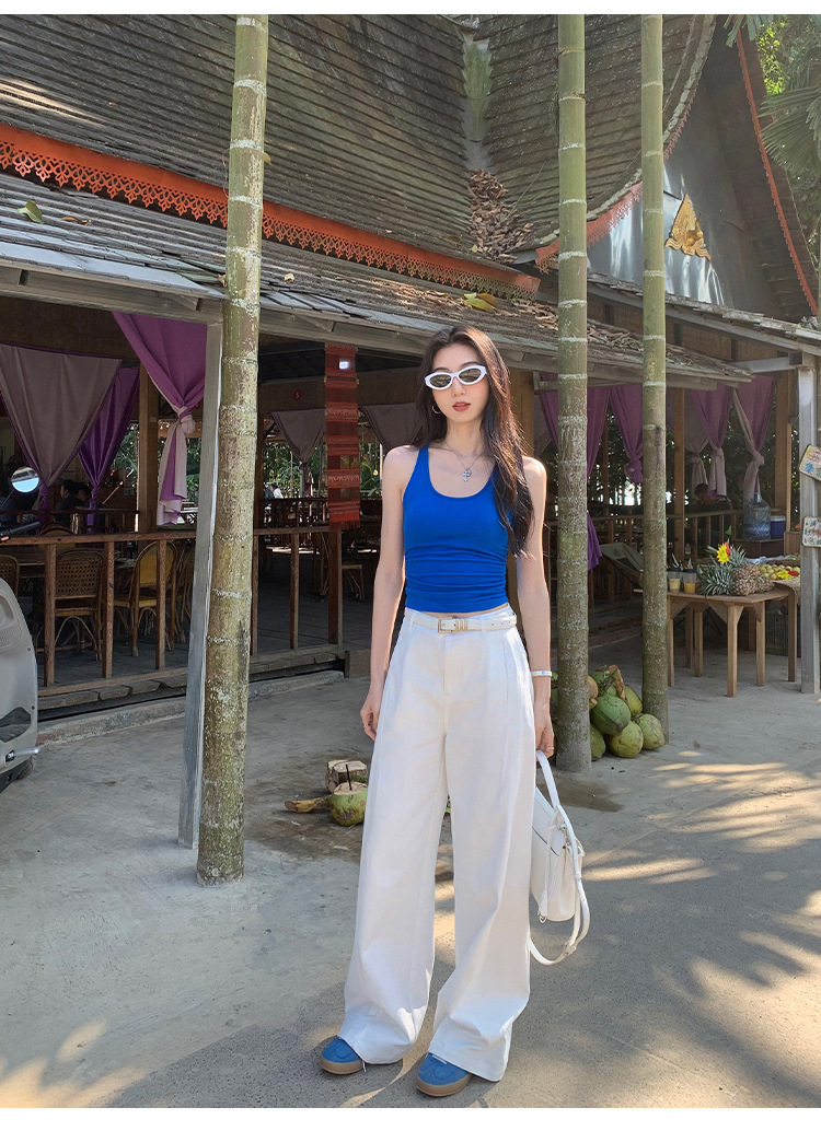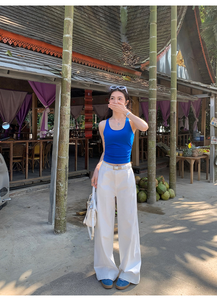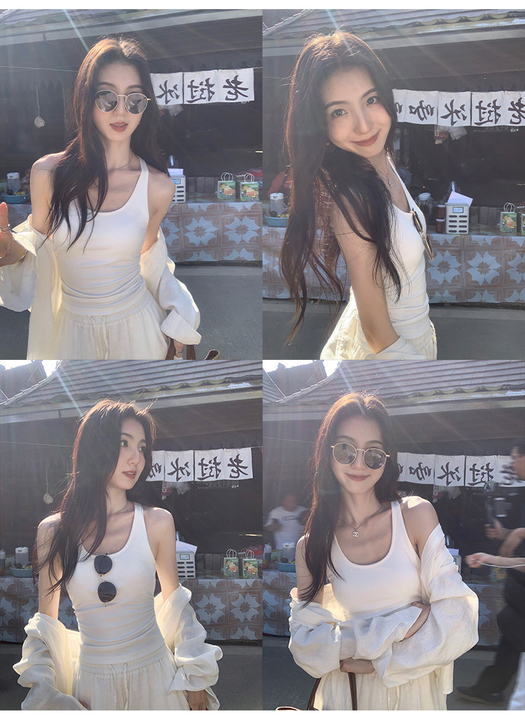 좋은 베이직 화이트 카미 솔 조끼 가슴 패드 여성의 여름 새로운 슬림 핏 I 자형 쇼트 탑스토어 가기