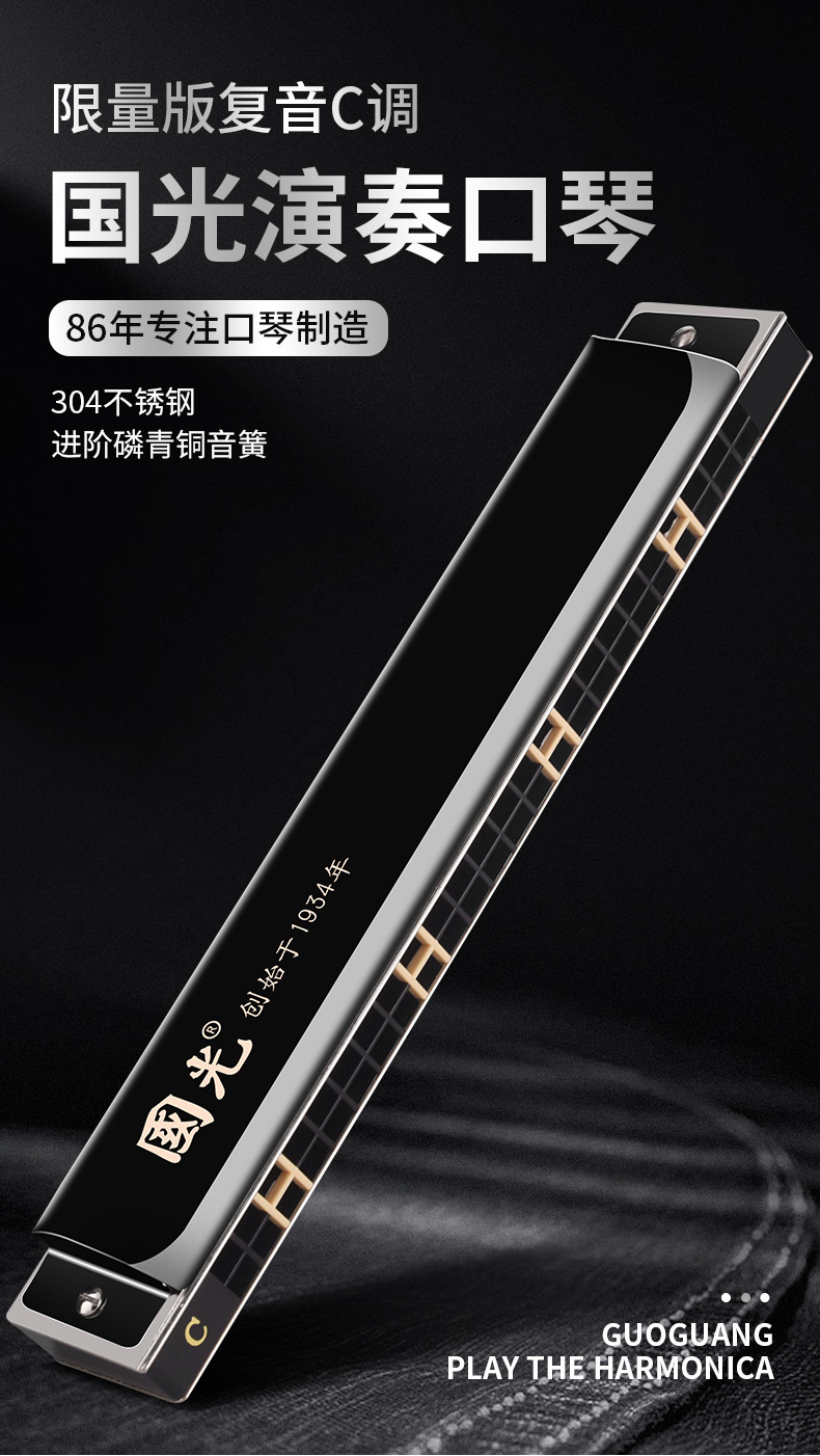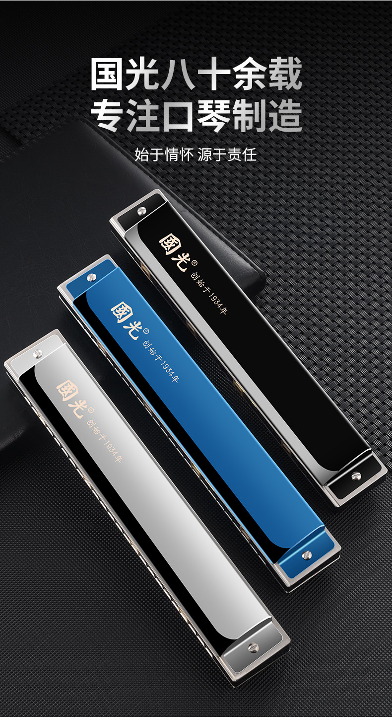 상하이 Guoguang 24 홀 폴리포닉 ABCDEFG 톤 독일 수입 리드 12 톤 하모니카 전문 연주 등급 악기스토어 가기