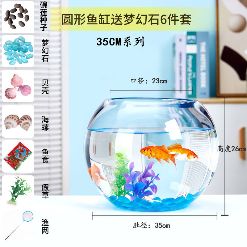 투명한 원형 실린더, 매우 두꺼운 원형 금붕어 수조, 생태학적이고 창의적인 유리 수조, 수경 수조, 구형스토어 가기