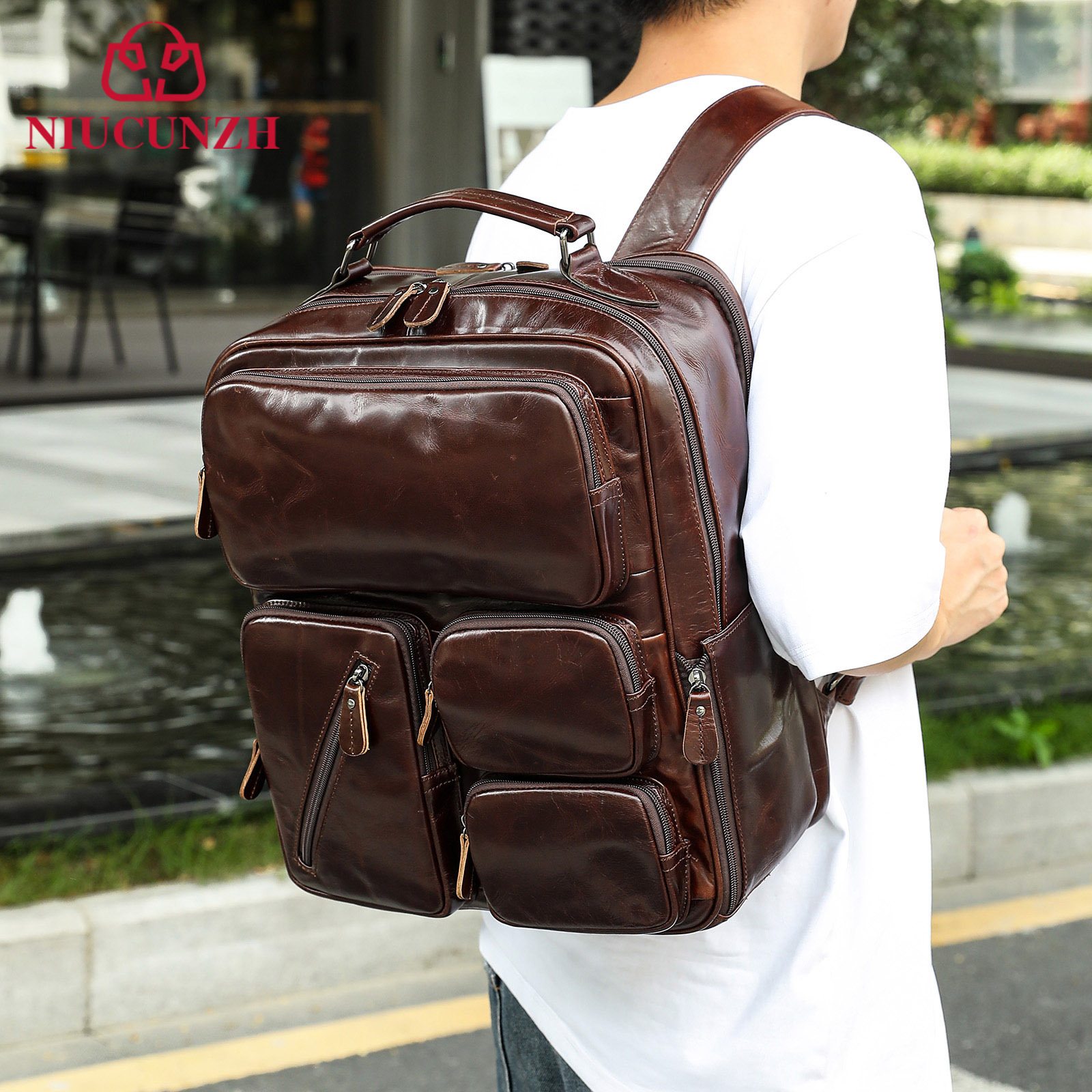 NIUCUNZH 비즈니스 정품 가죽 남성용 트롤리 케이스 18inch 패션 탑승 케이스 범용 휠 암호 상자 수하물 가방