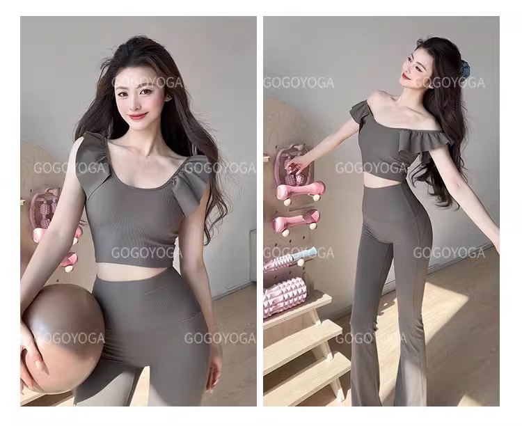 새로운 요가 세트 여성의 모임 배꼽 슬리밍 피트니스 세트 높은 허리 복숭아 엉덩이 들어 올리는 알몸 요가 바지 여름