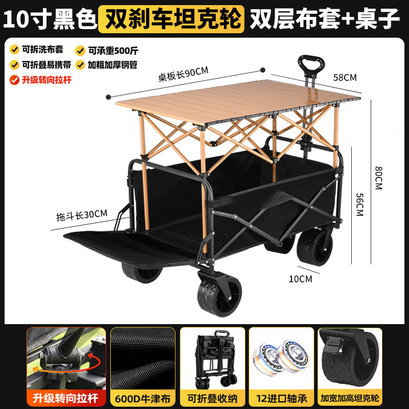 • 블랙 [이중 두꺼운 옥스포드 천] - 상단 구성 / 10inch 탱크 휠 / 더블 브레이크 + 강화된 블랙 테이블