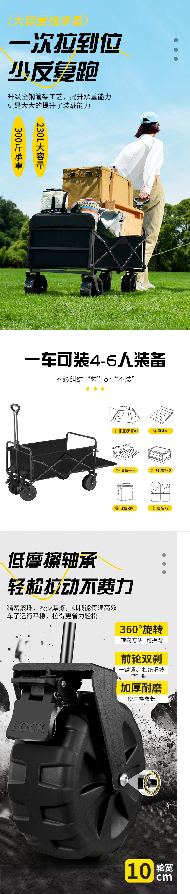 • 블랙 [이중 두꺼운 옥스포드 천] - 대형 / 8inch 오프로드 휠 / 더블 브레이크 / 티핑 버킷 스타일 + 나뭇결 테이블