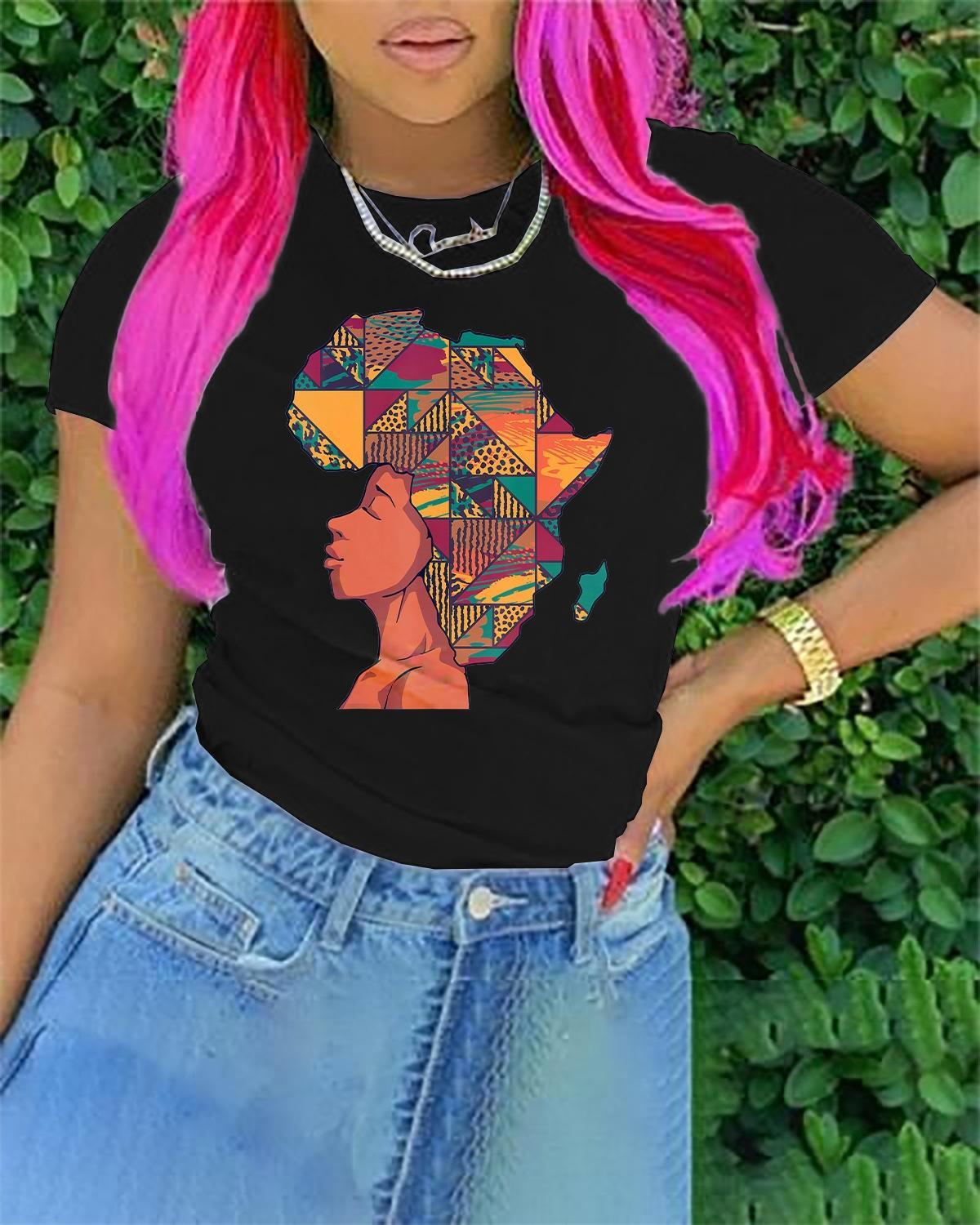 N9000130 Amazon AliExpress 인기 라운드 넥 풀오버 프린트 티셔츠 크로스보더 유럽 및 미국 반팔 여성 의류스토어 가기