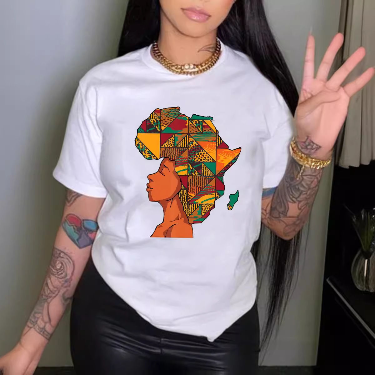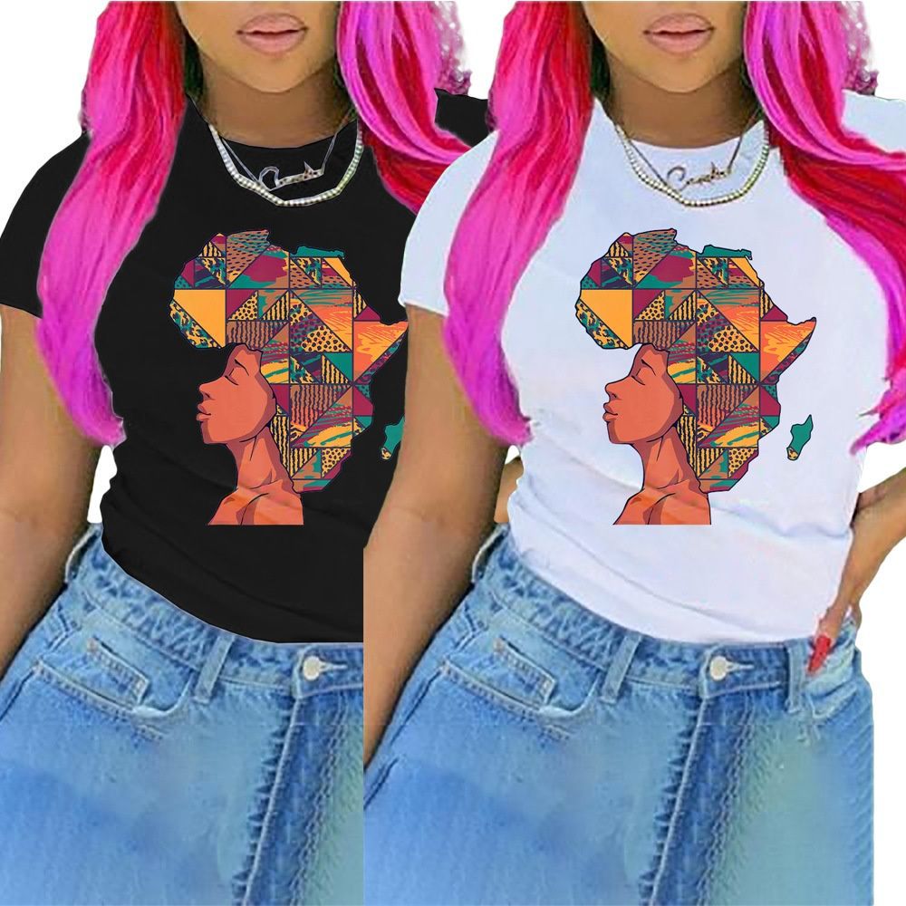N9000130 Amazon AliExpress 인기 라운드 넥 풀오버 프린트 티셔츠 크로스보더 유럽 및 미국 반팔 여성 의류