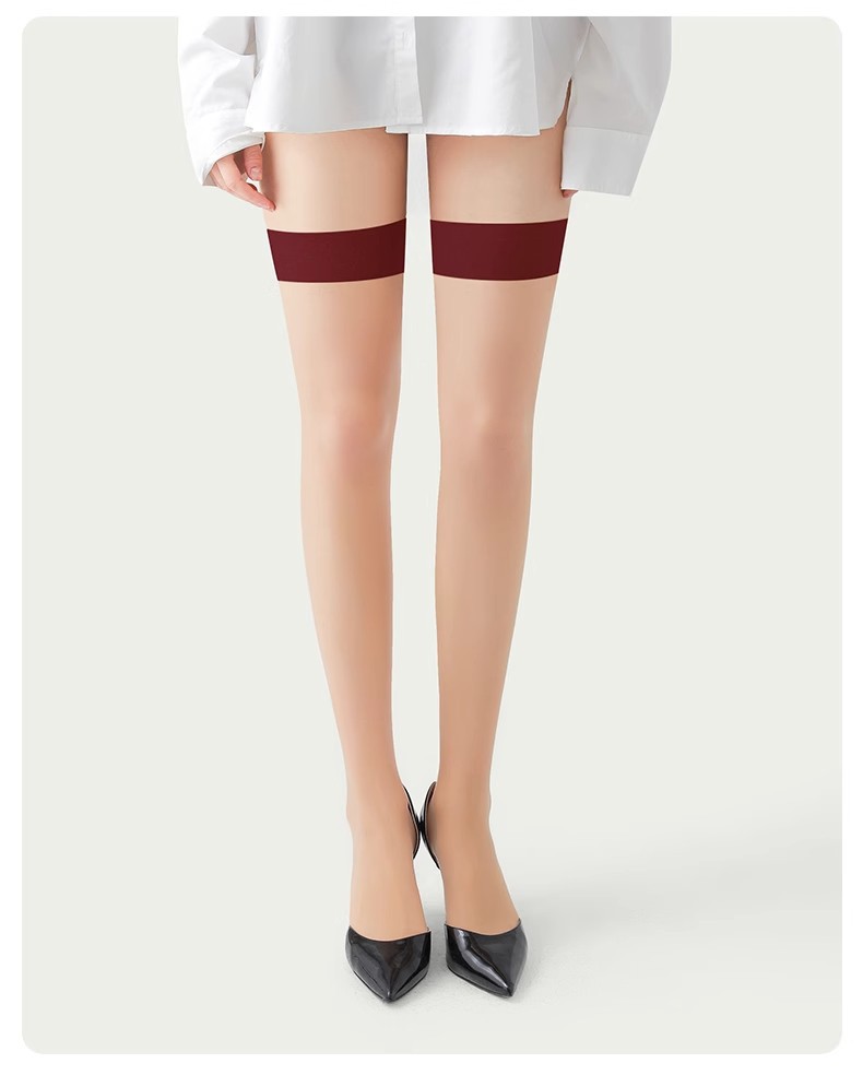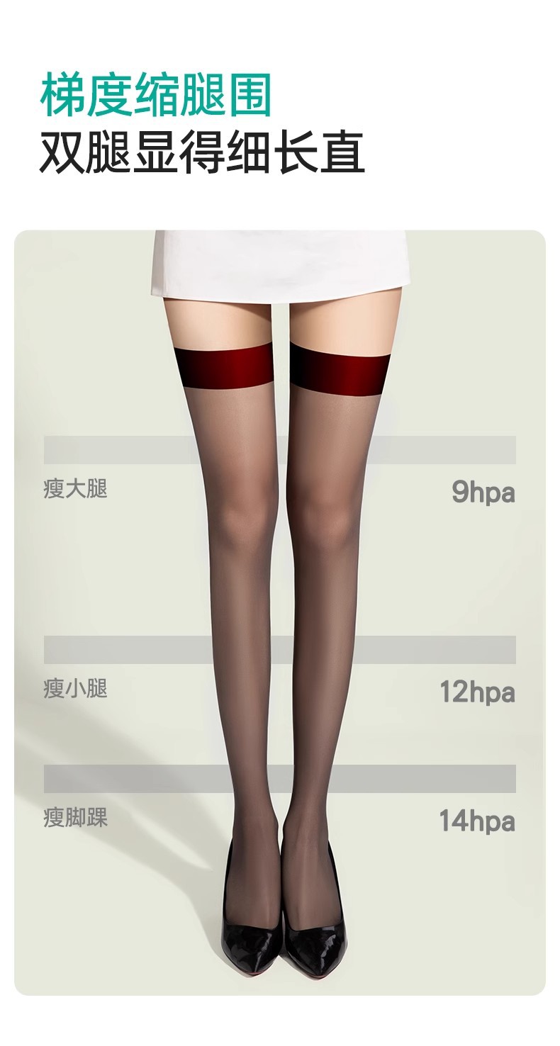 여름용 레드 엣지 블랙 실크 오버니 스타킹 여성용 얇은 블랙 섹시 퓨어 러스트 롱 스타킹 압력 슬리밍 허벅지 스타킹