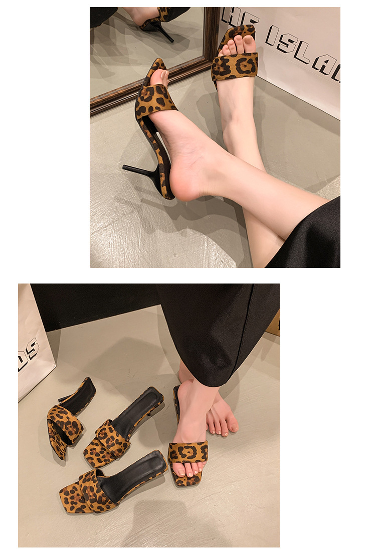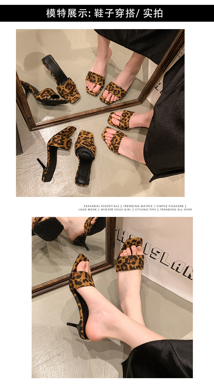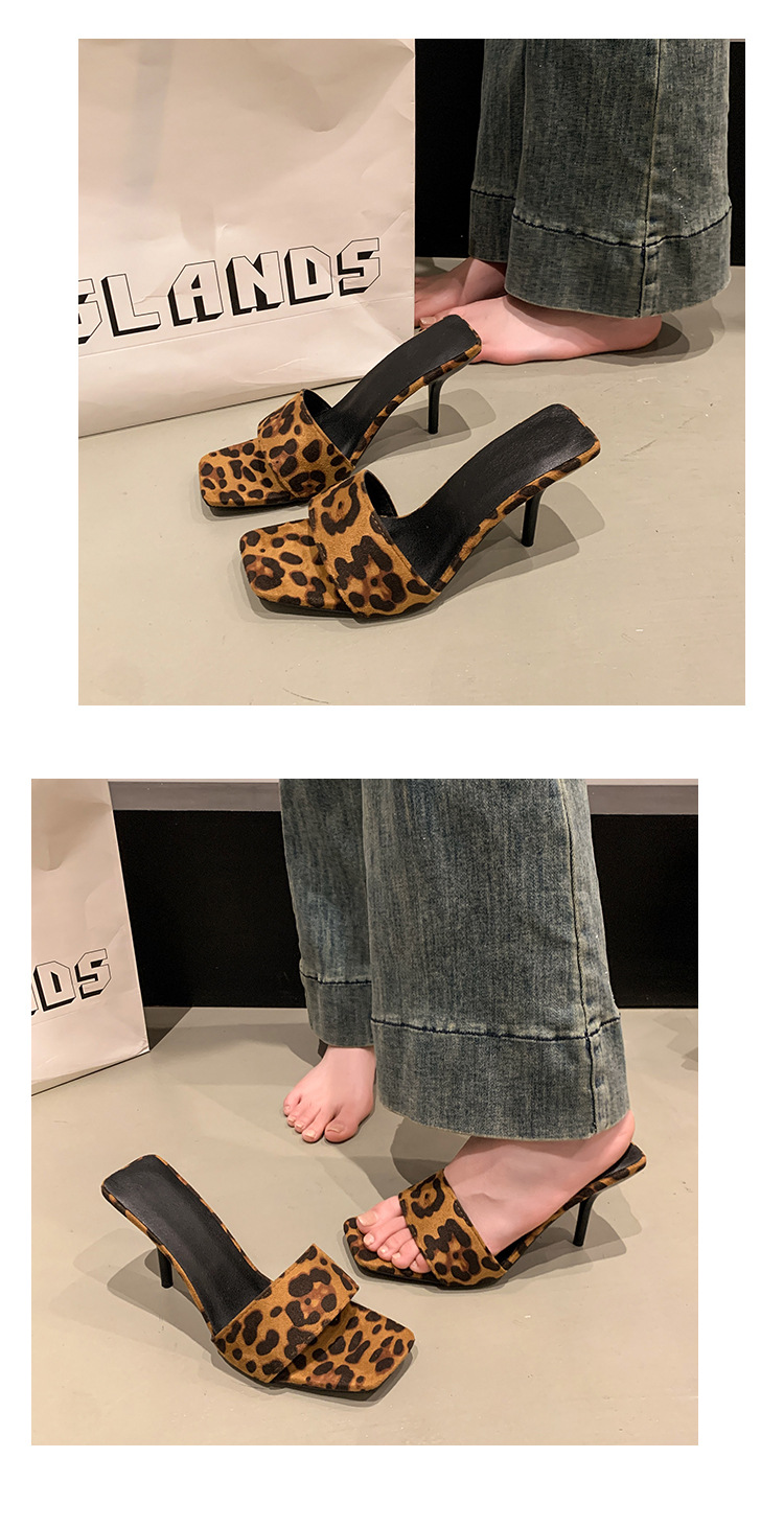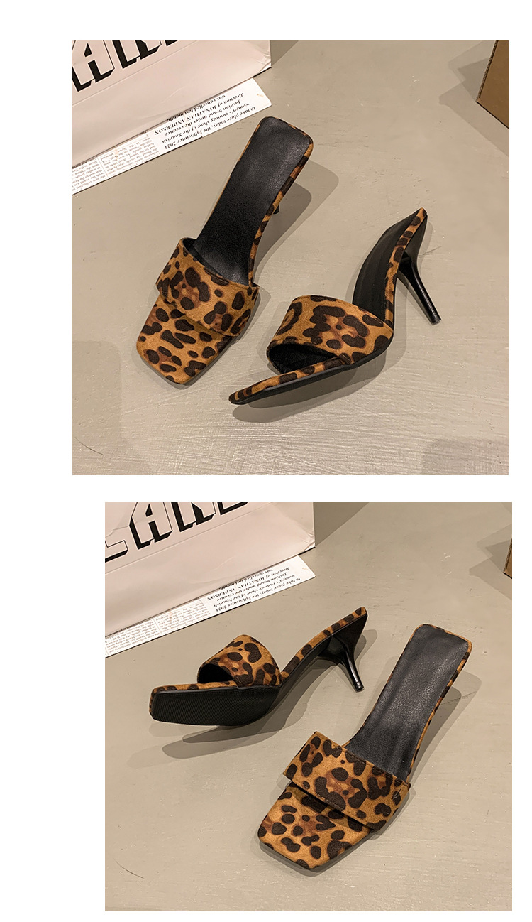 하이힐 신발 2025 여름 여성용 4142 샌들과 슬리퍼 플러스 사이즈 새로운 인라인 레오파드 프린트 스퀘어 스틸레토 힐