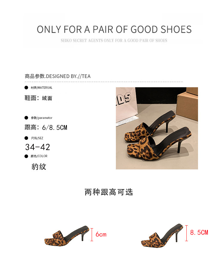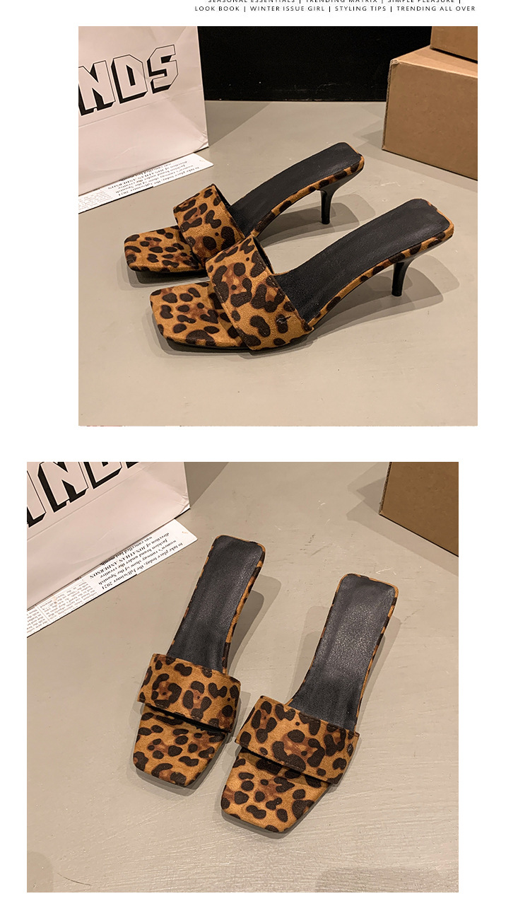 하이힐 신발 2025 여름 여성용 4142 샌들과 슬리퍼 플러스 사이즈 새로운 인라인 레오파드 프린트 스퀘어 스틸레토 힐스토어 가기