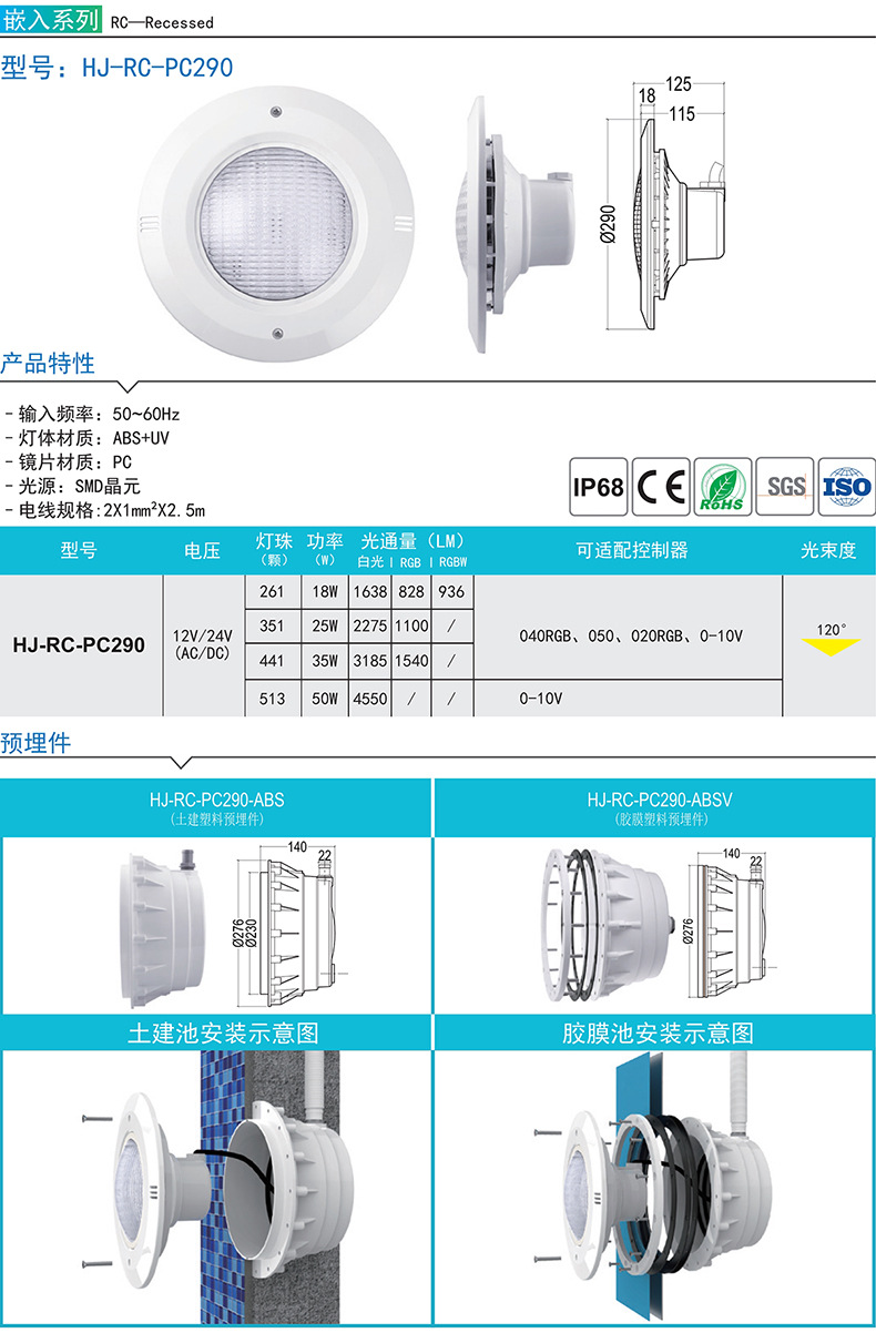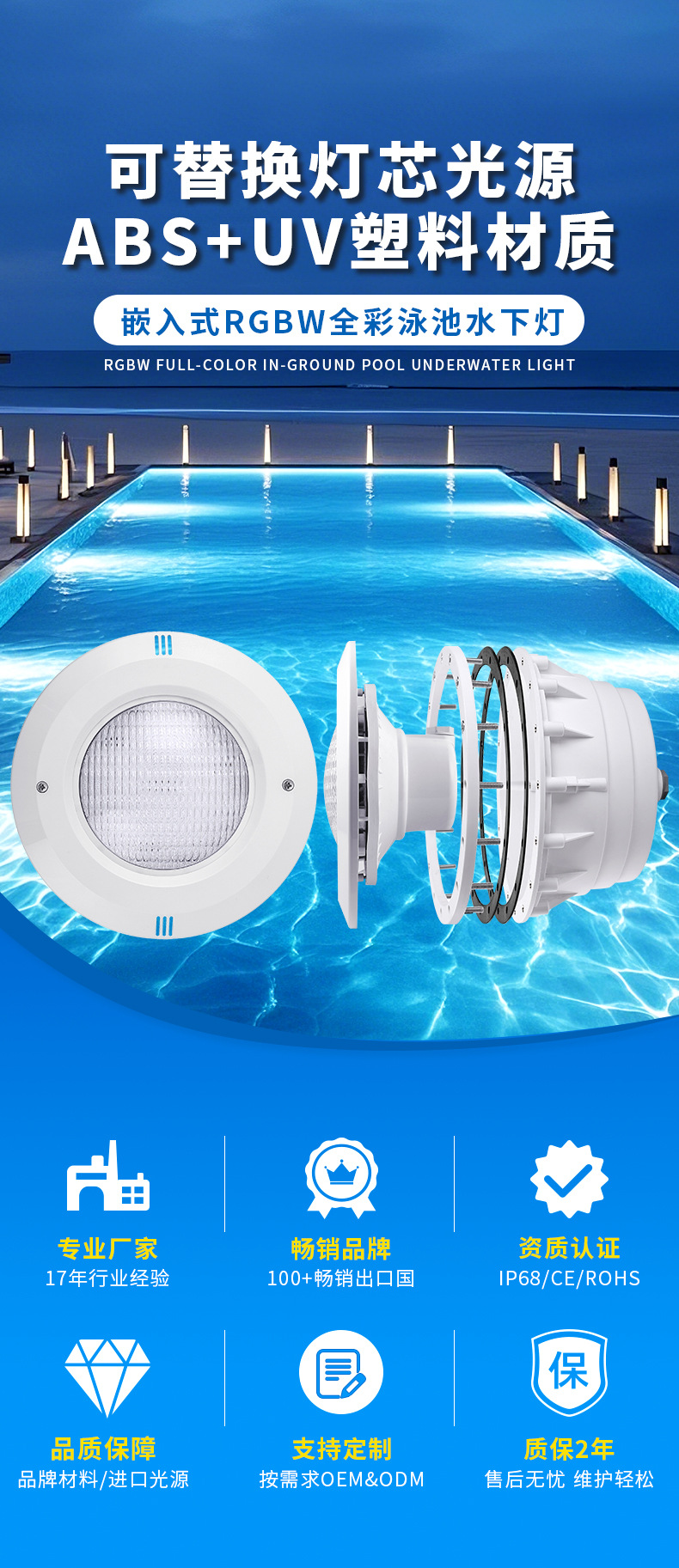 ABS 플라스틱 임베디드 필름 수영장 조명 북미 국경 간 분할 수중 조명 고출력 시멘트 수영장 벽 조명