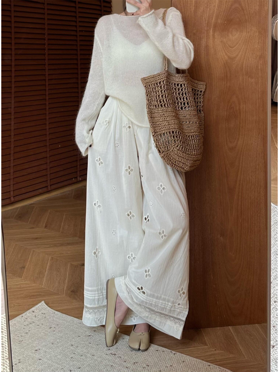2025 간단한 매일 통근 휴일 센스 빈 레이스 스티칭 플로팅 캐주얼 바지 스포츠 바지스토어 가기