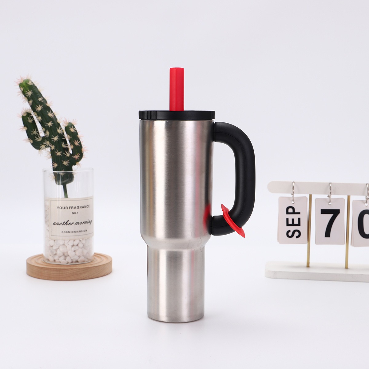 국경 304 스테인레스 스틸 핸들 자동차 컵 휴대용 마카롱 아이스 컵 더블 진공 짚 보온병 컵