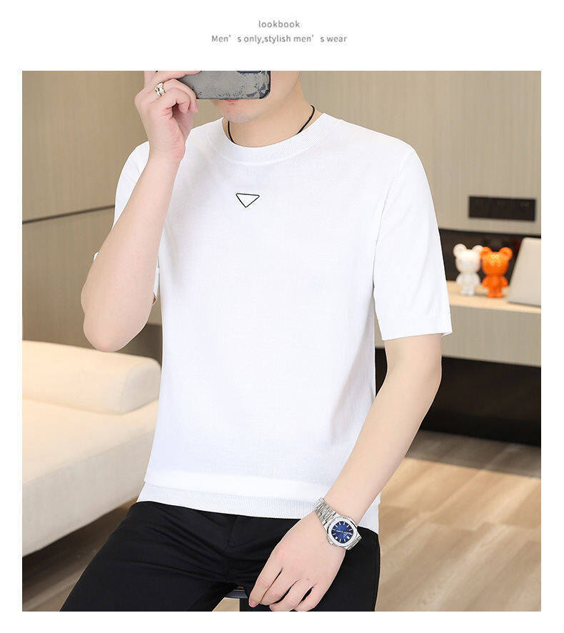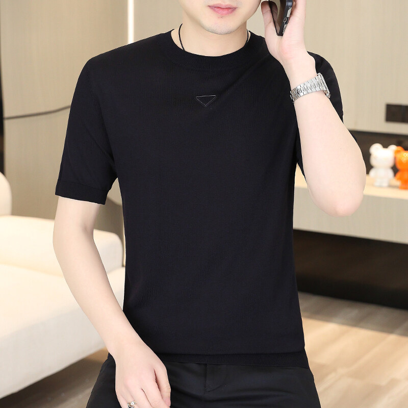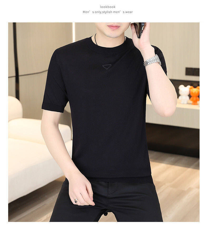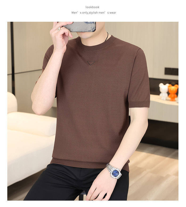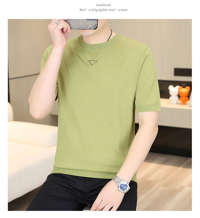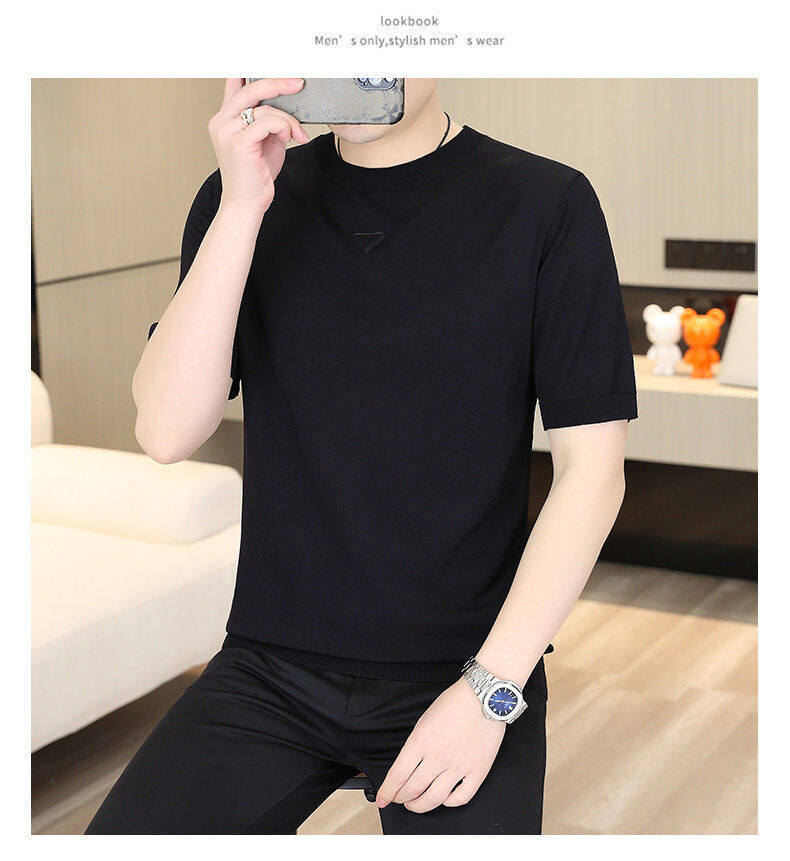 2025 신작 남성용 아이스 실크 반팔 여름 트렌디 패션 심플 니트 반팔 남성용 베이스 다용도 셔츠스토어 가기