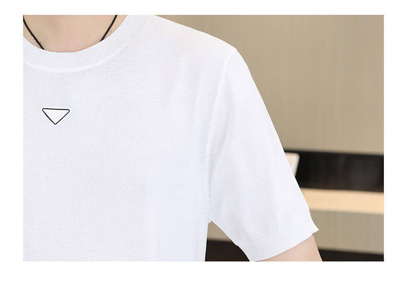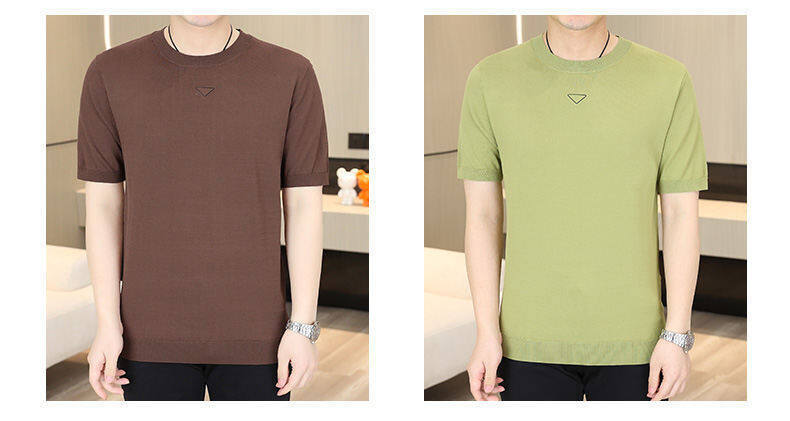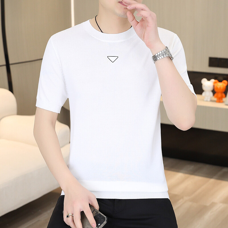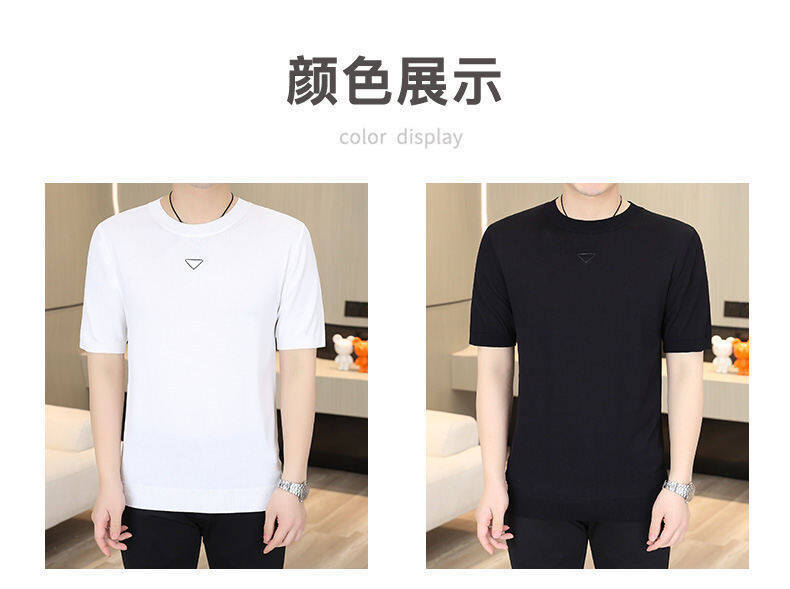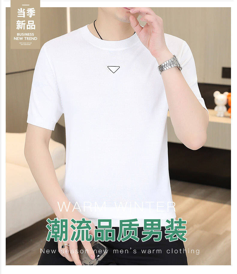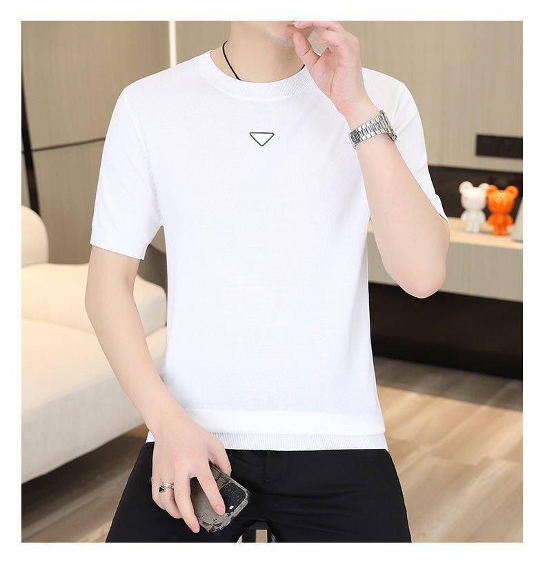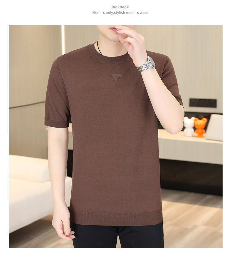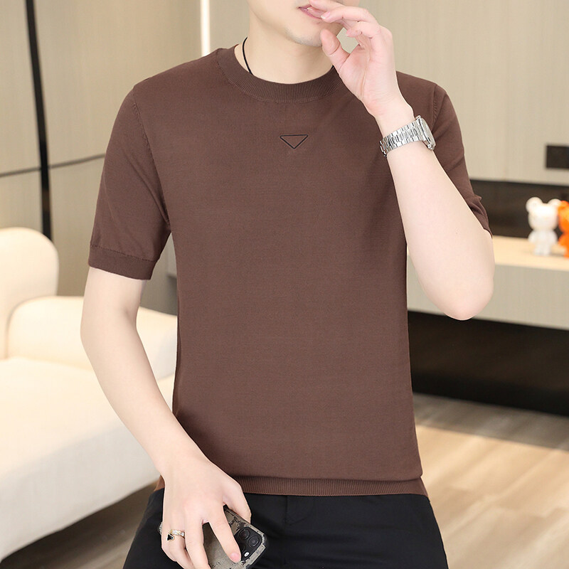 2025 신작 남성용 아이스 실크 반팔 여름 트렌디 패션 심플 니트 반팔 남성용 베이스 다용도 셔츠스토어 가기