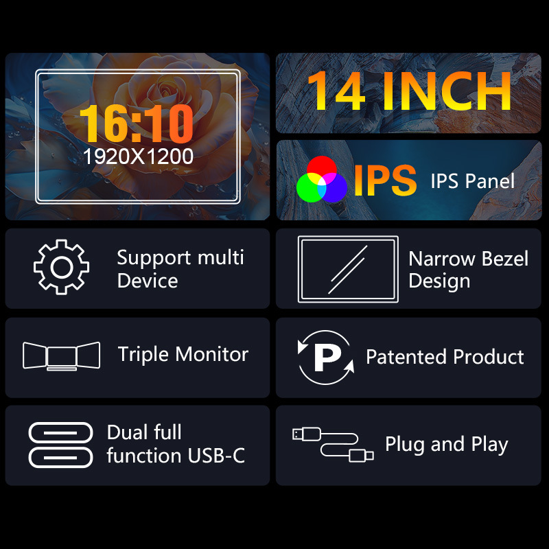 14 인치 듀얼 스크린 휴대용 디스플레이 대형 스크린 노트북 서브 스크린 주식 거래 확장 화면 사무실 듀얼 스크린