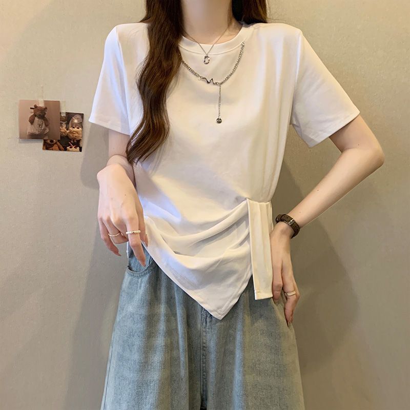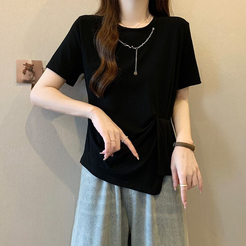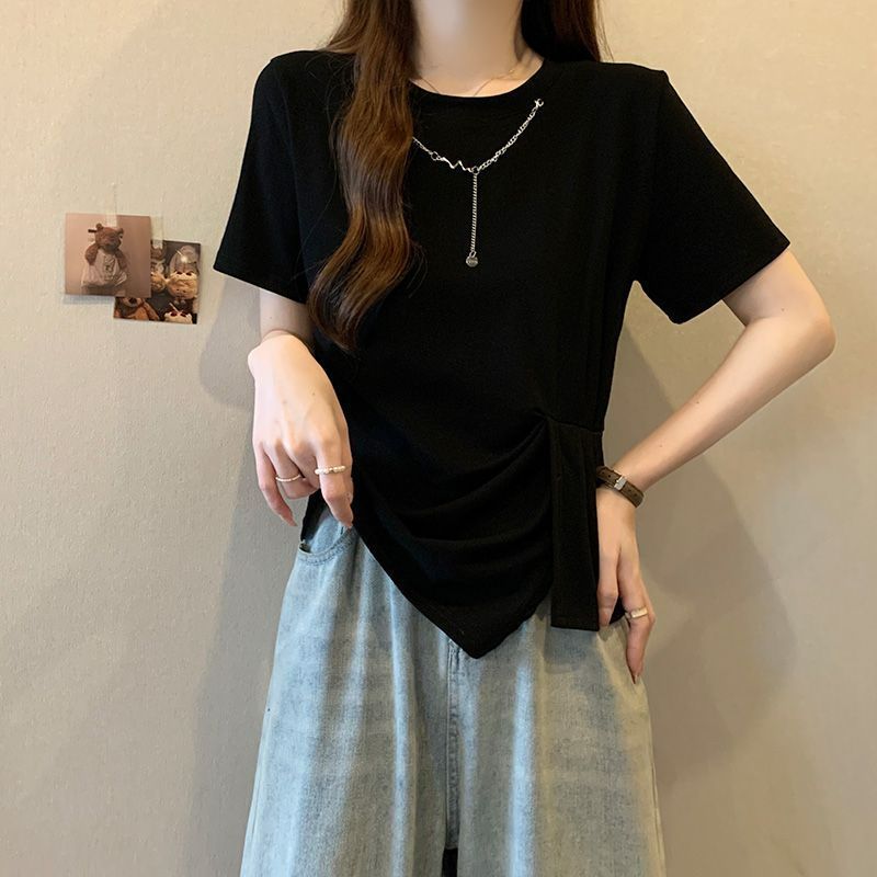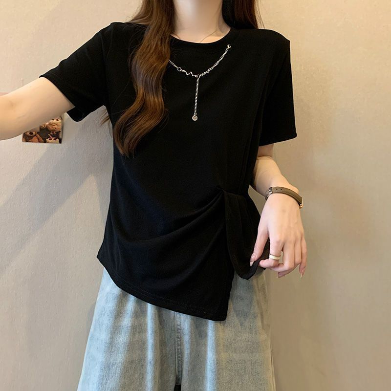 통통녀 디자인 센스 니쉬 슬리밍 티셔츠 반팔 여름 플러스 사이즈 여성 의류 서양식 나이 감소 배꼽 커버 칙 탑스토어 가기