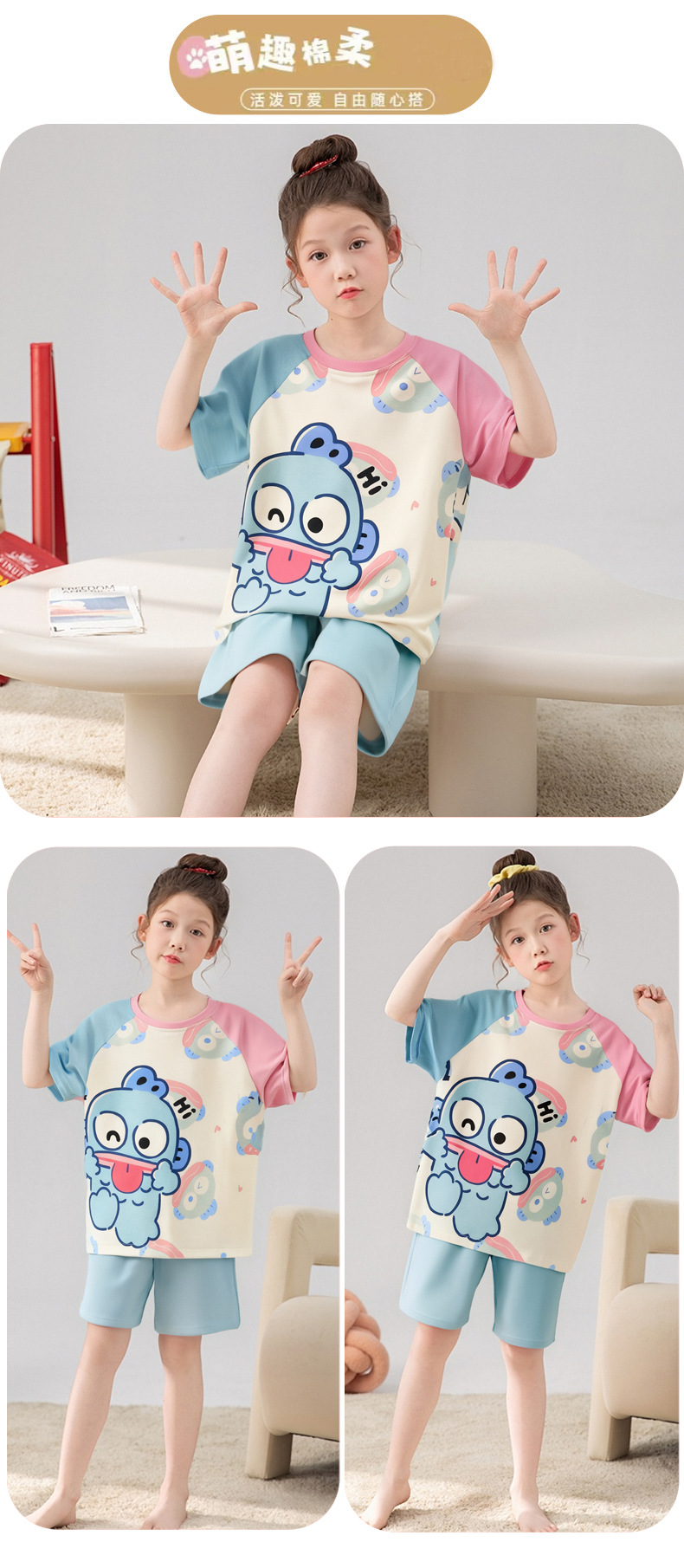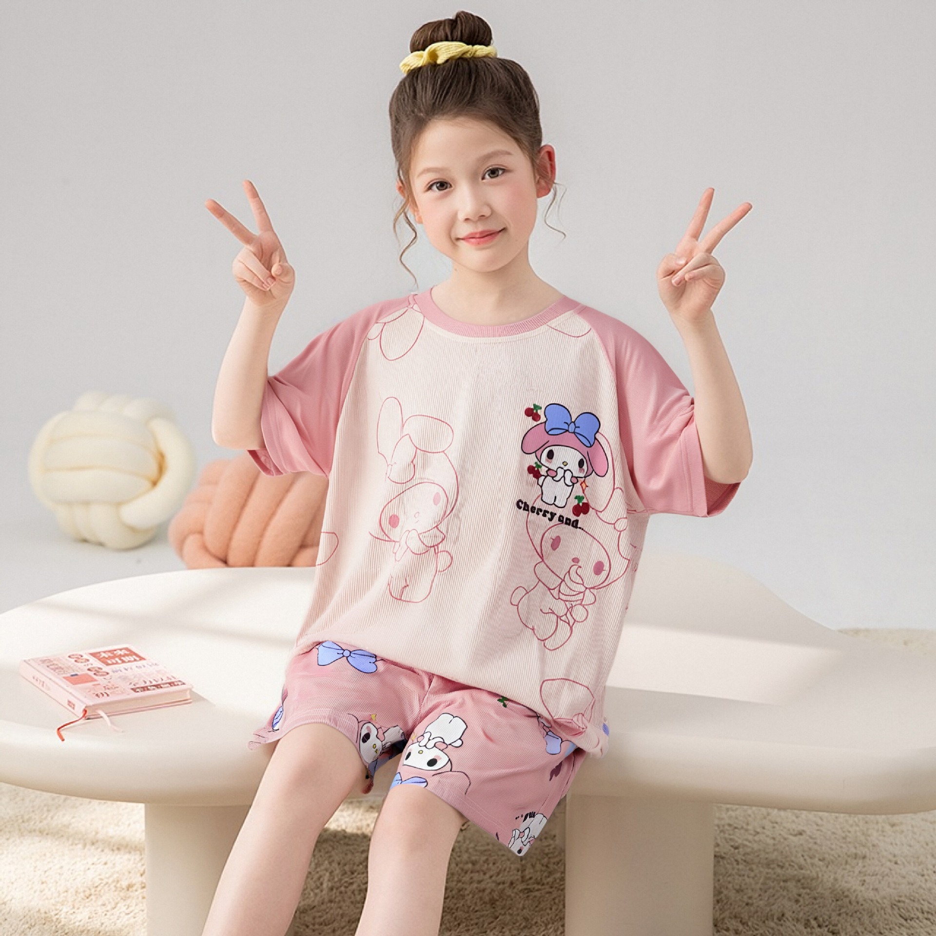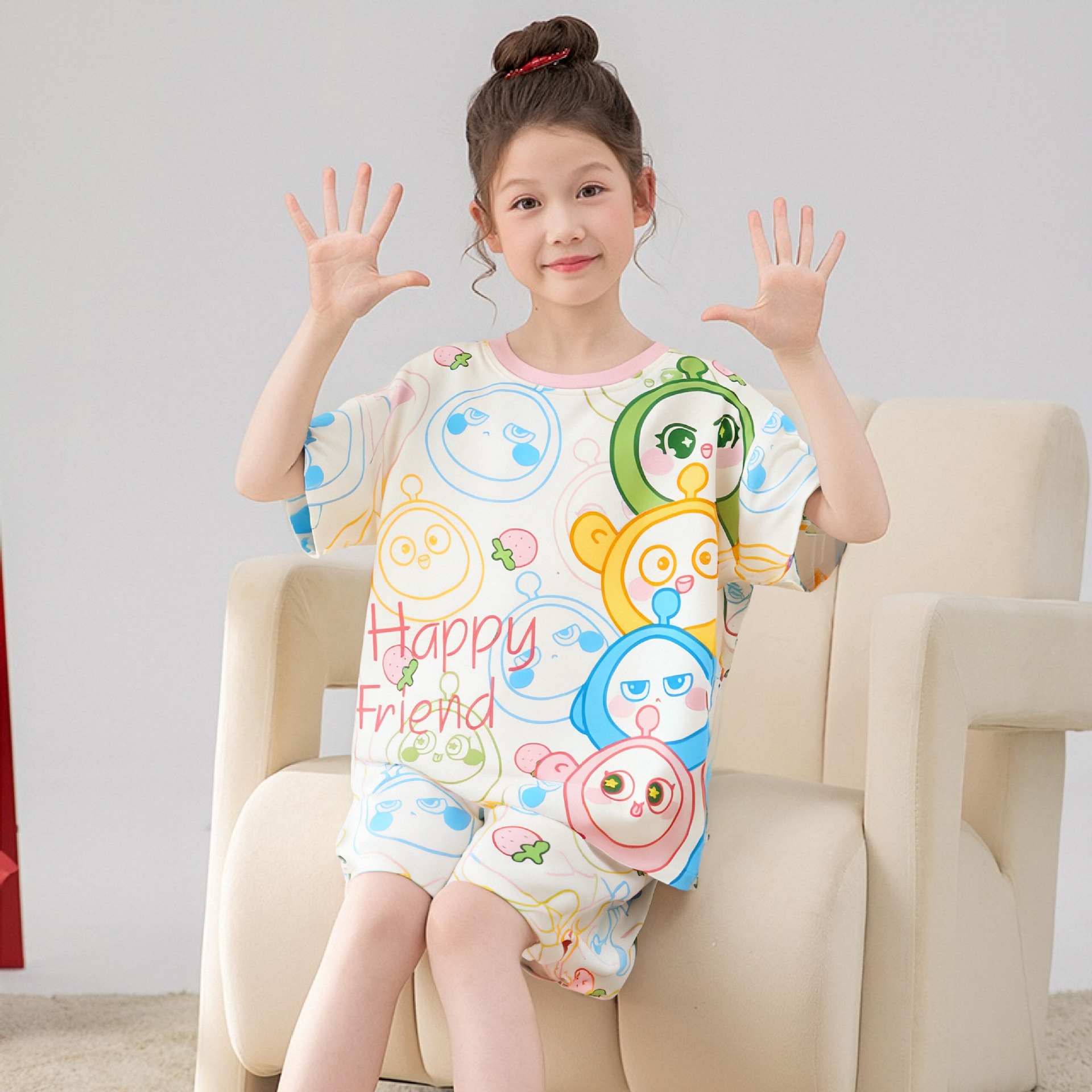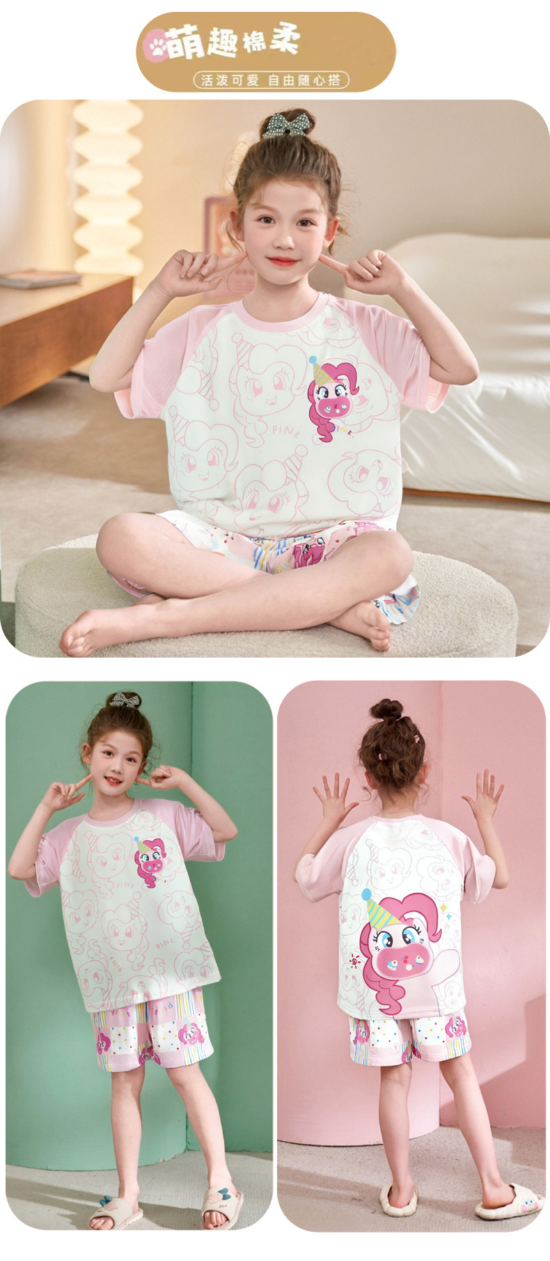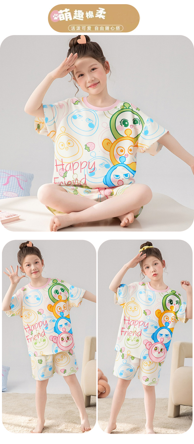 어린이 잠옷 여름 얇은 모달 반팔 만화 소녀 중대형 어린이 어머니와 딸 부모-자식 가정 의류 세트