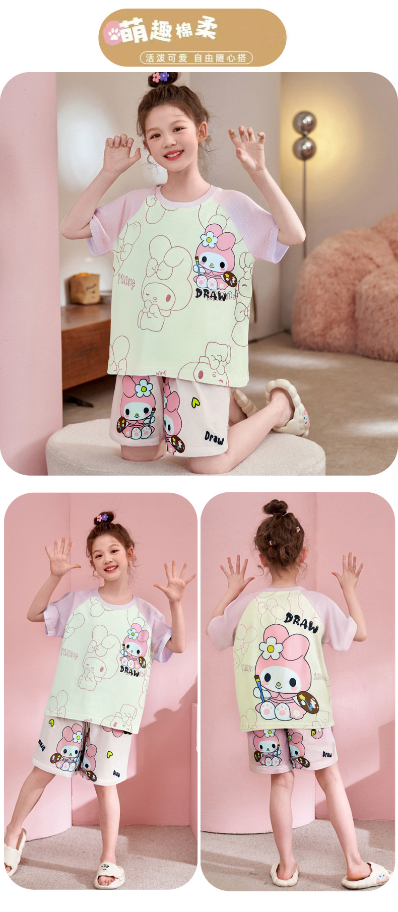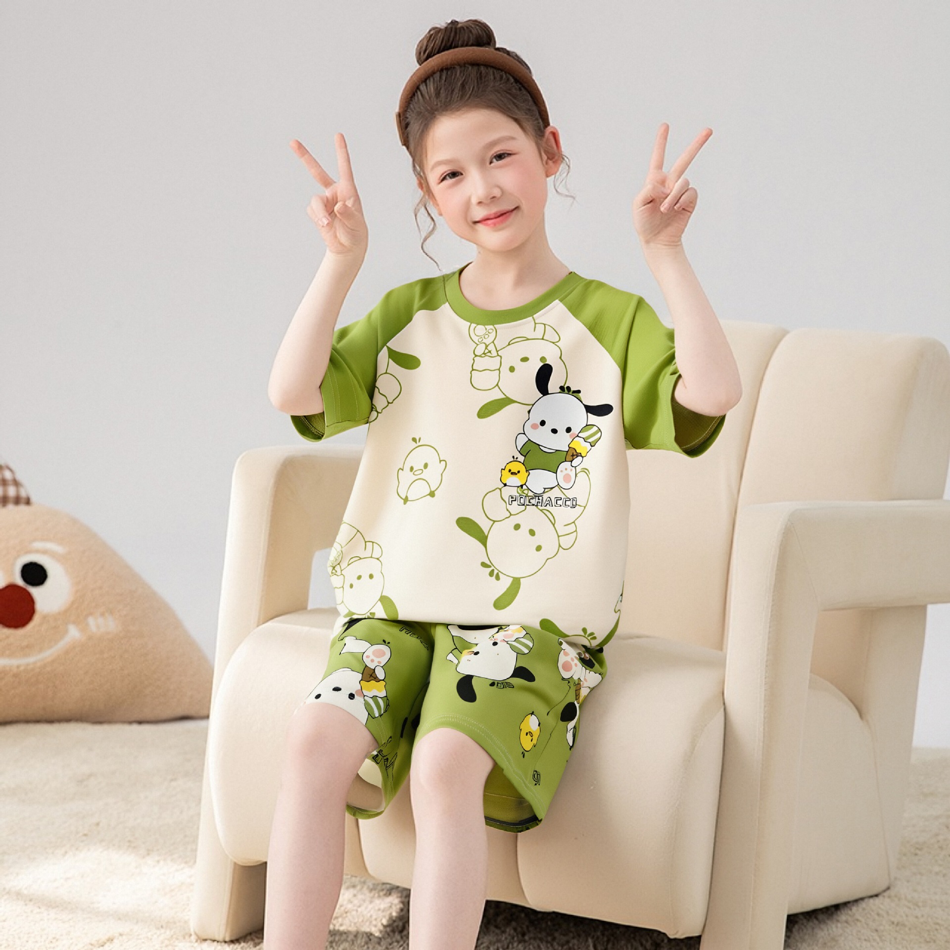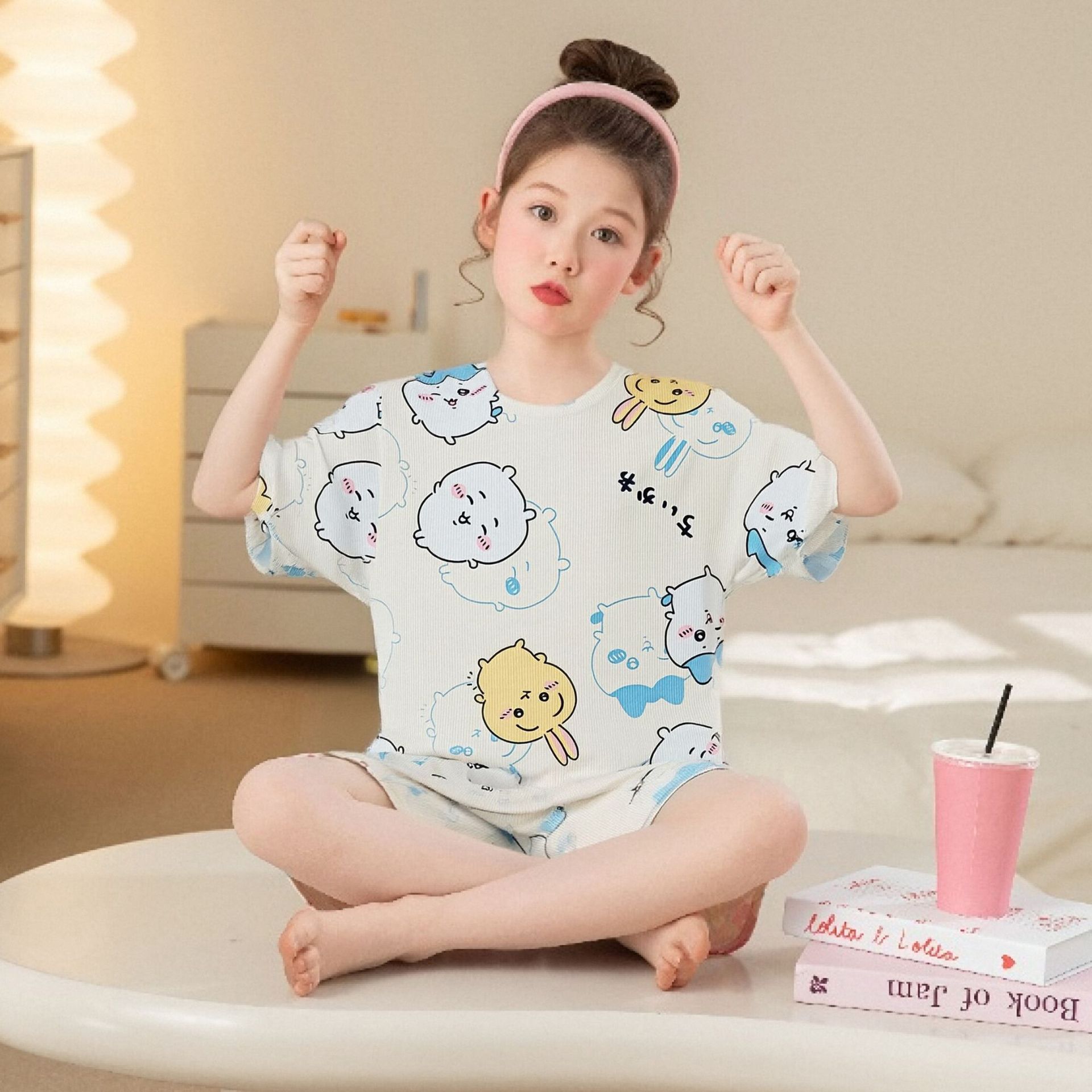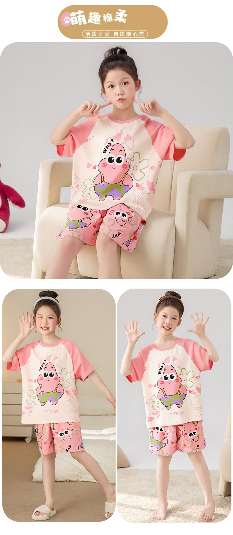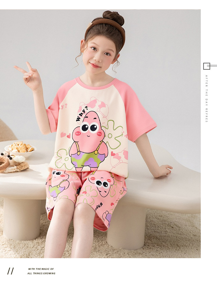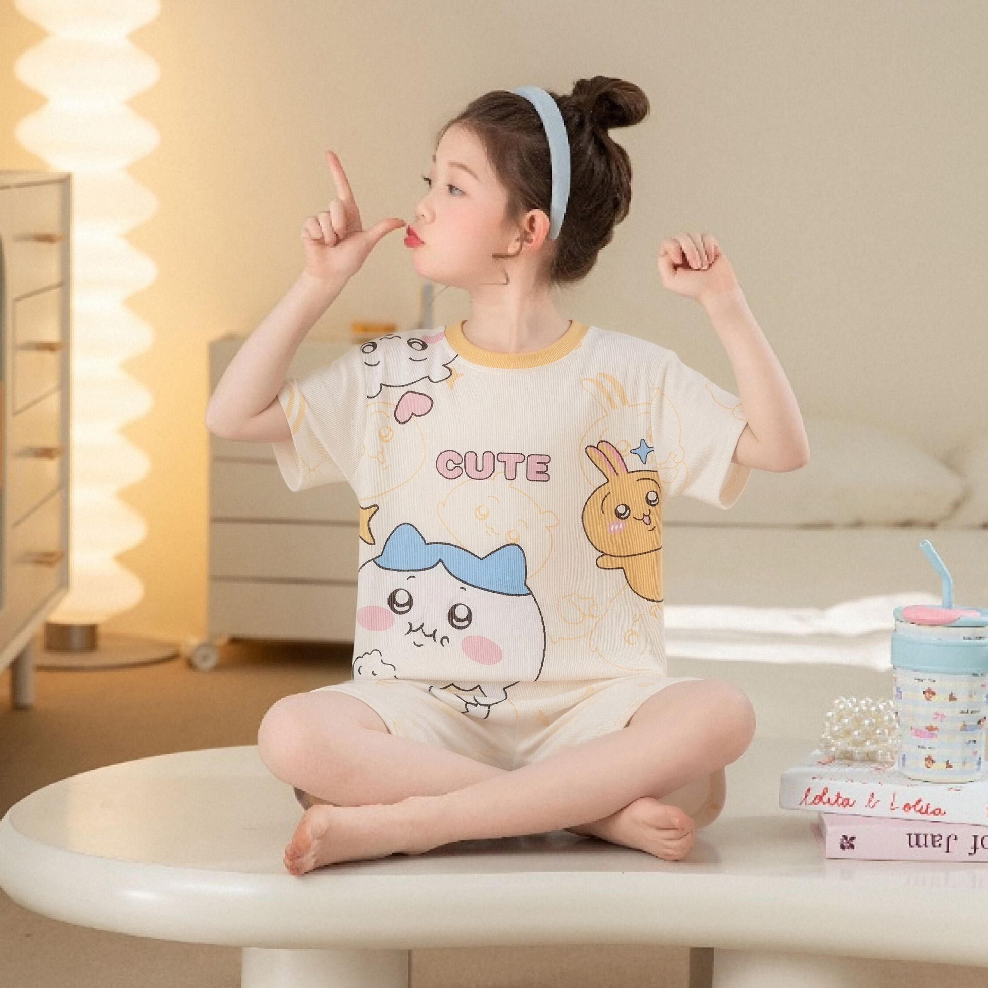 어린이 잠옷 여름 얇은 모달 반팔 만화 소녀 중대형 어린이 어머니와 딸 부모-자식 가정 의류 세트