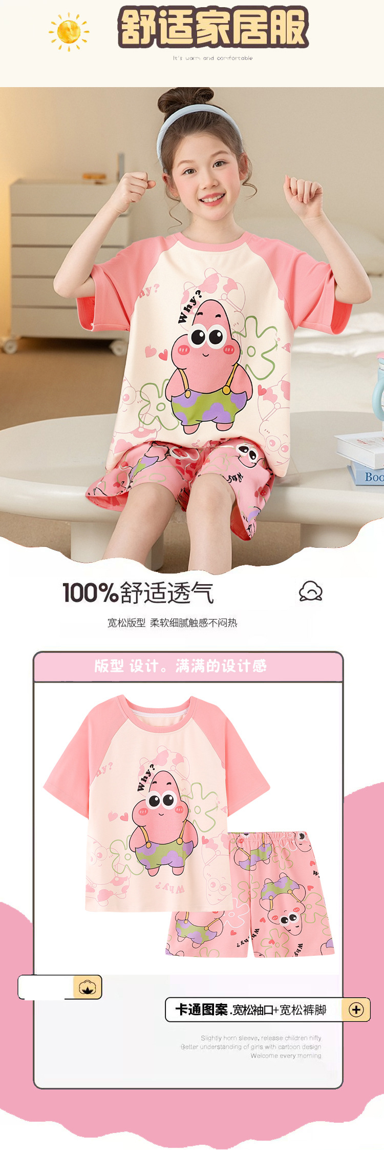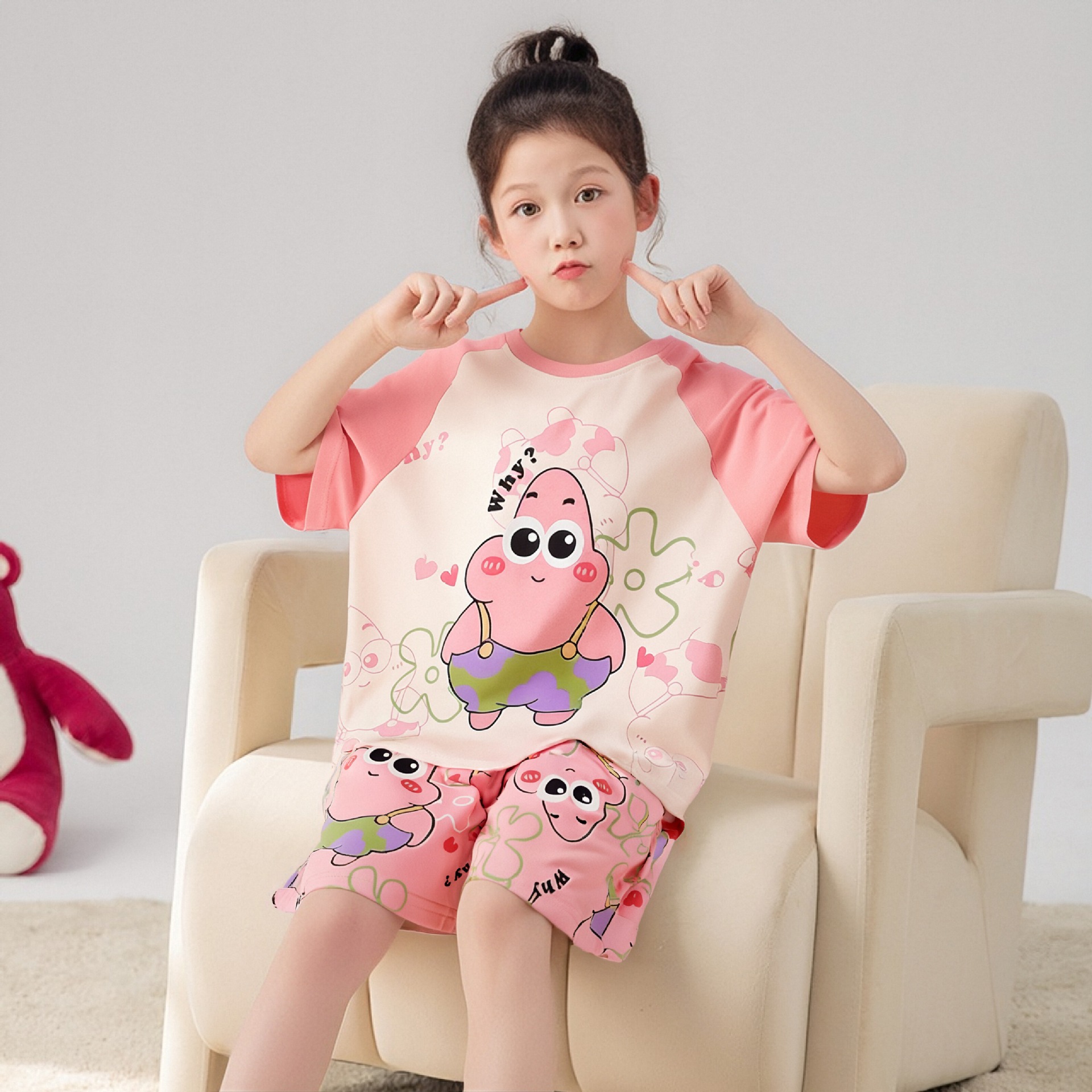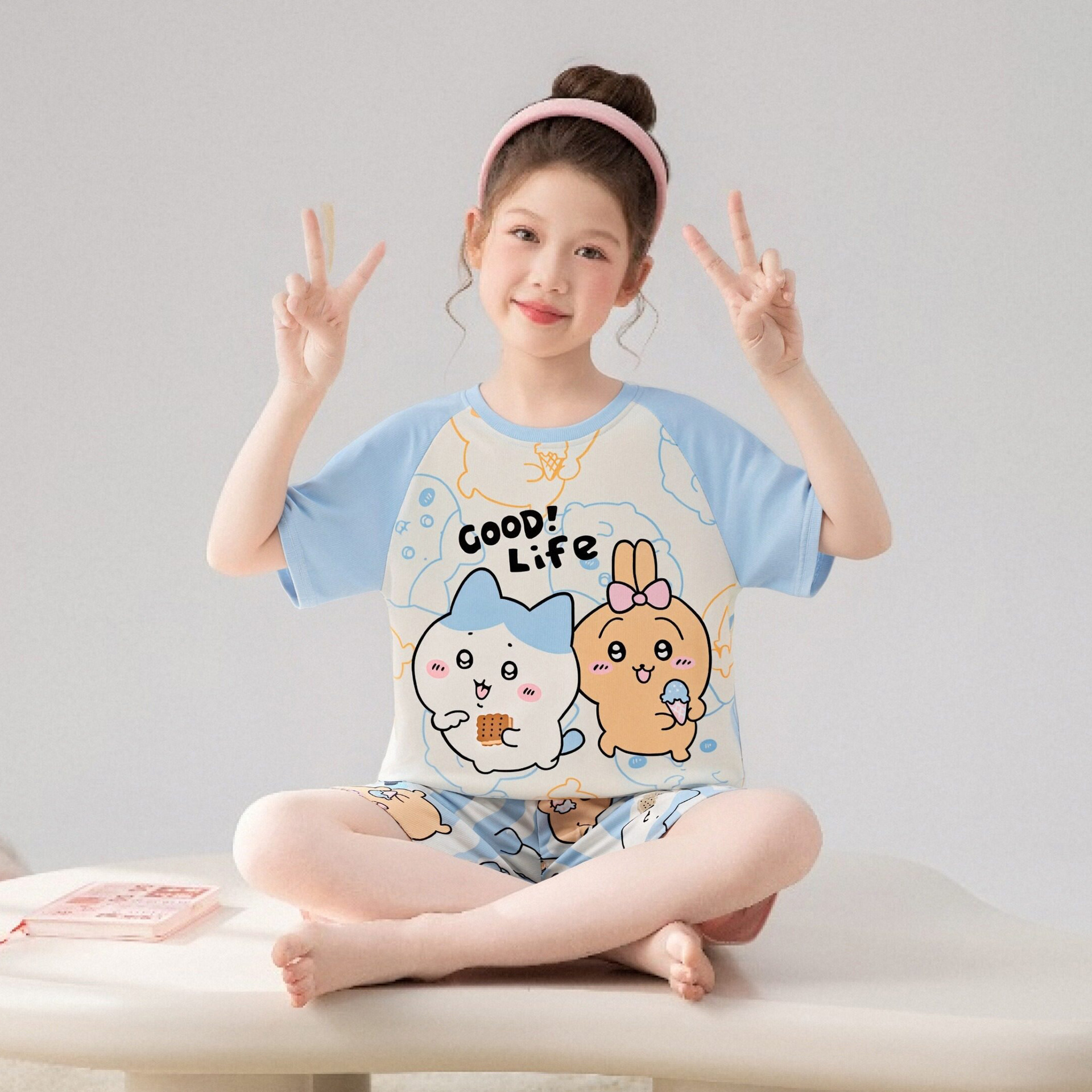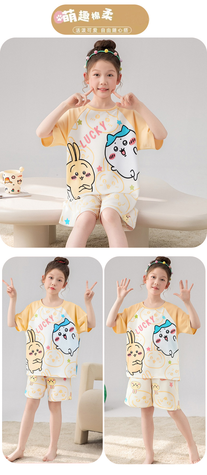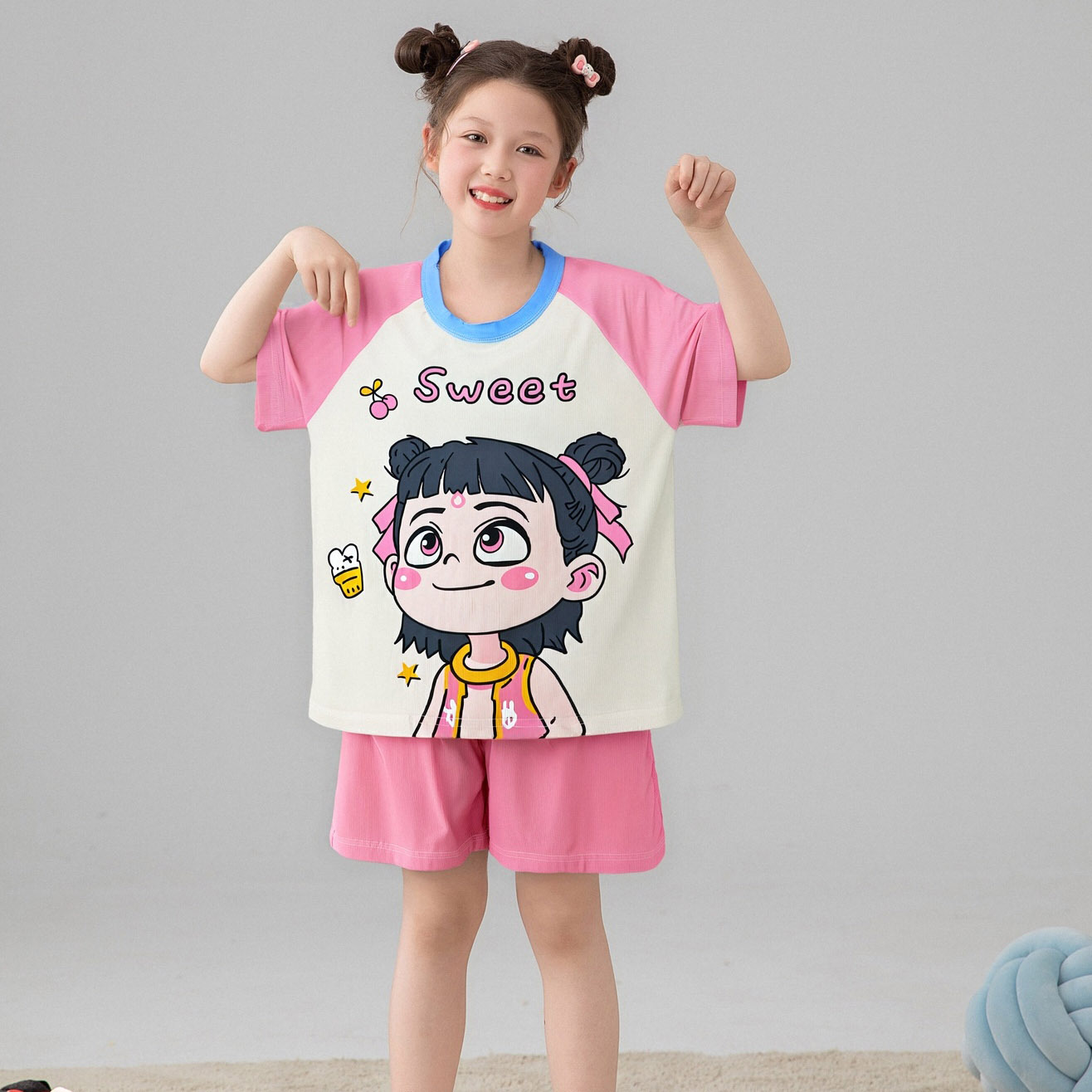 어린이 잠옷 여름 얇은 모달 반팔 만화 소녀 중대형 어린이 어머니와 딸 부모-자식 가정 의류 세트