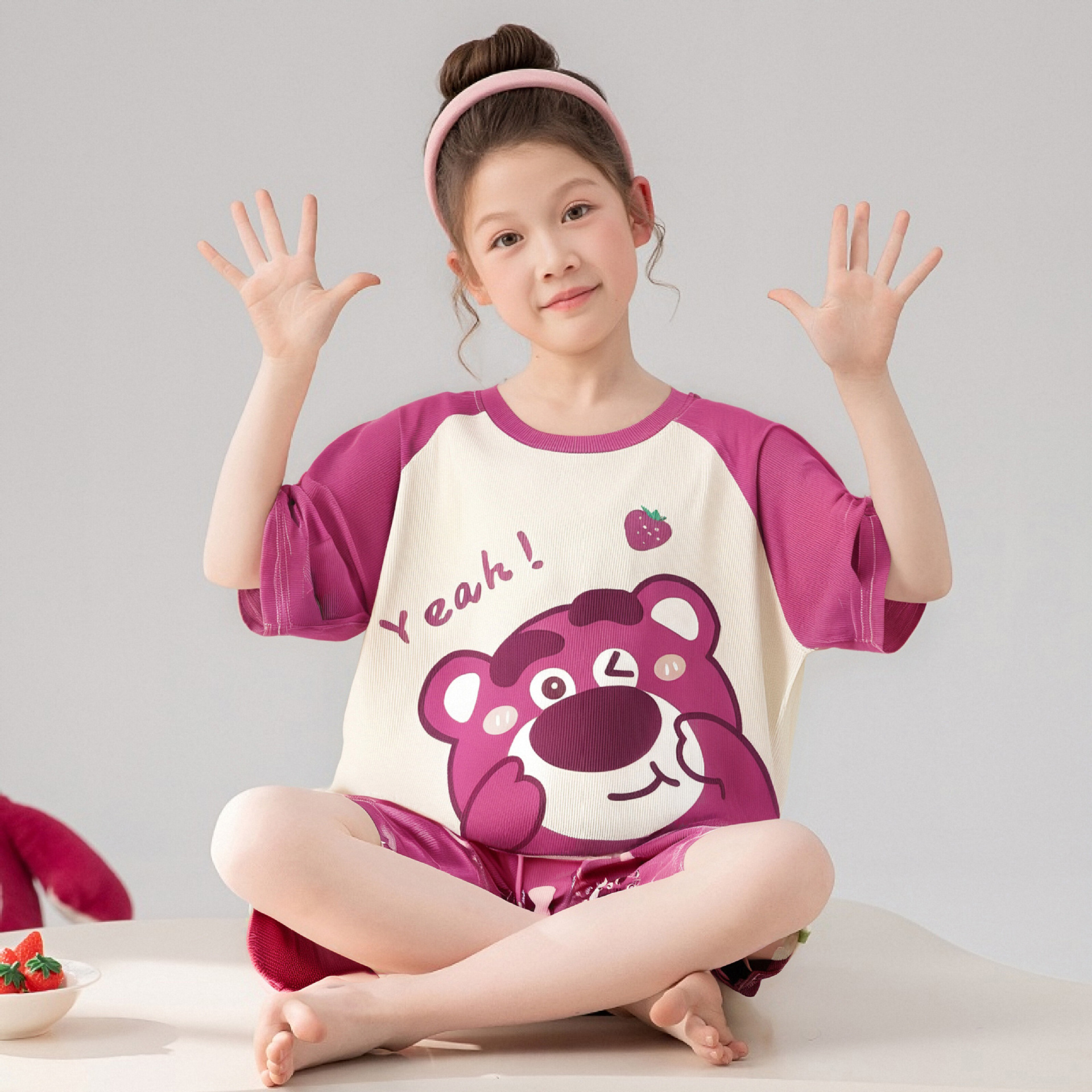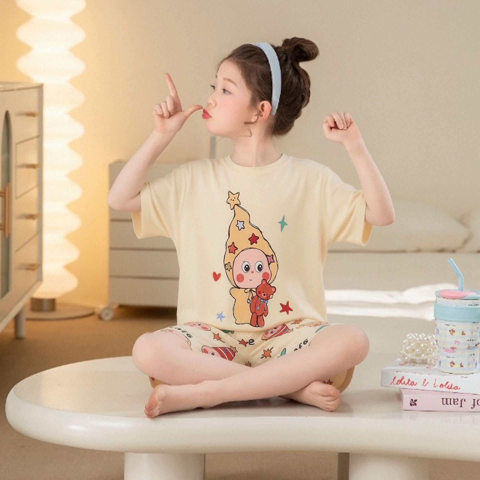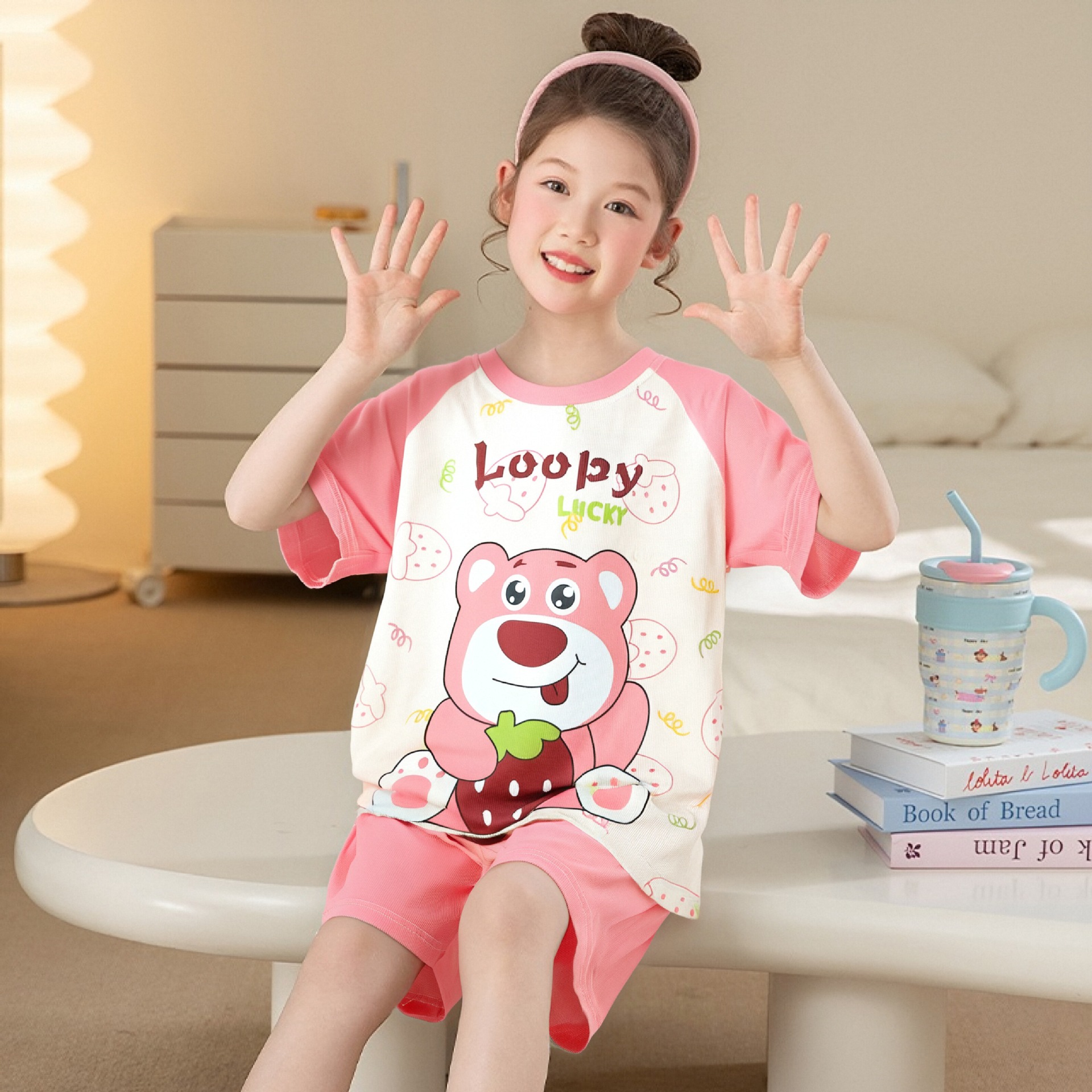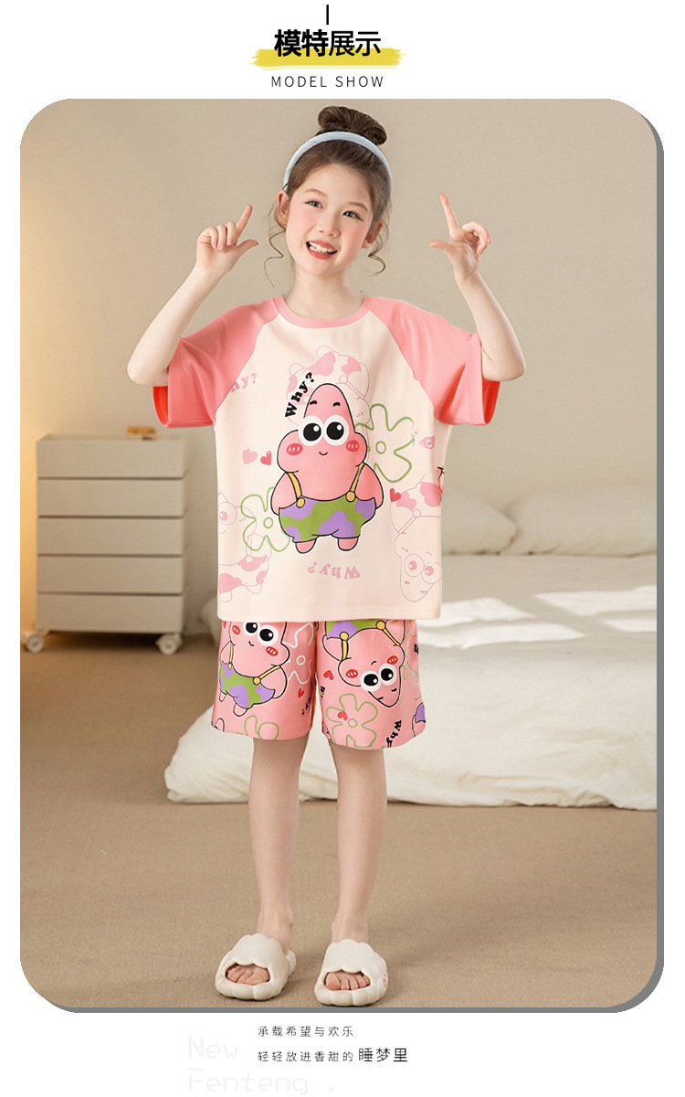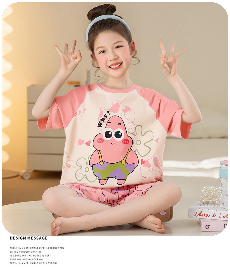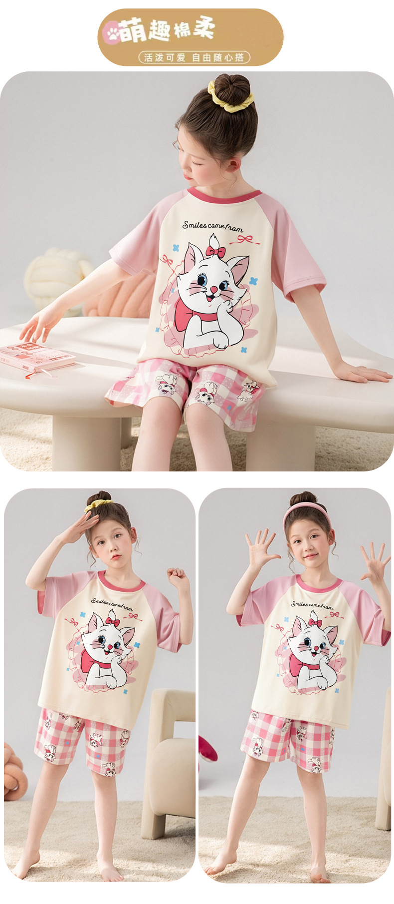 어린이 잠옷 여름 얇은 모달 반팔 만화 소녀 중대형 어린이 어머니와 딸 부모-자식 가정 의류 세트