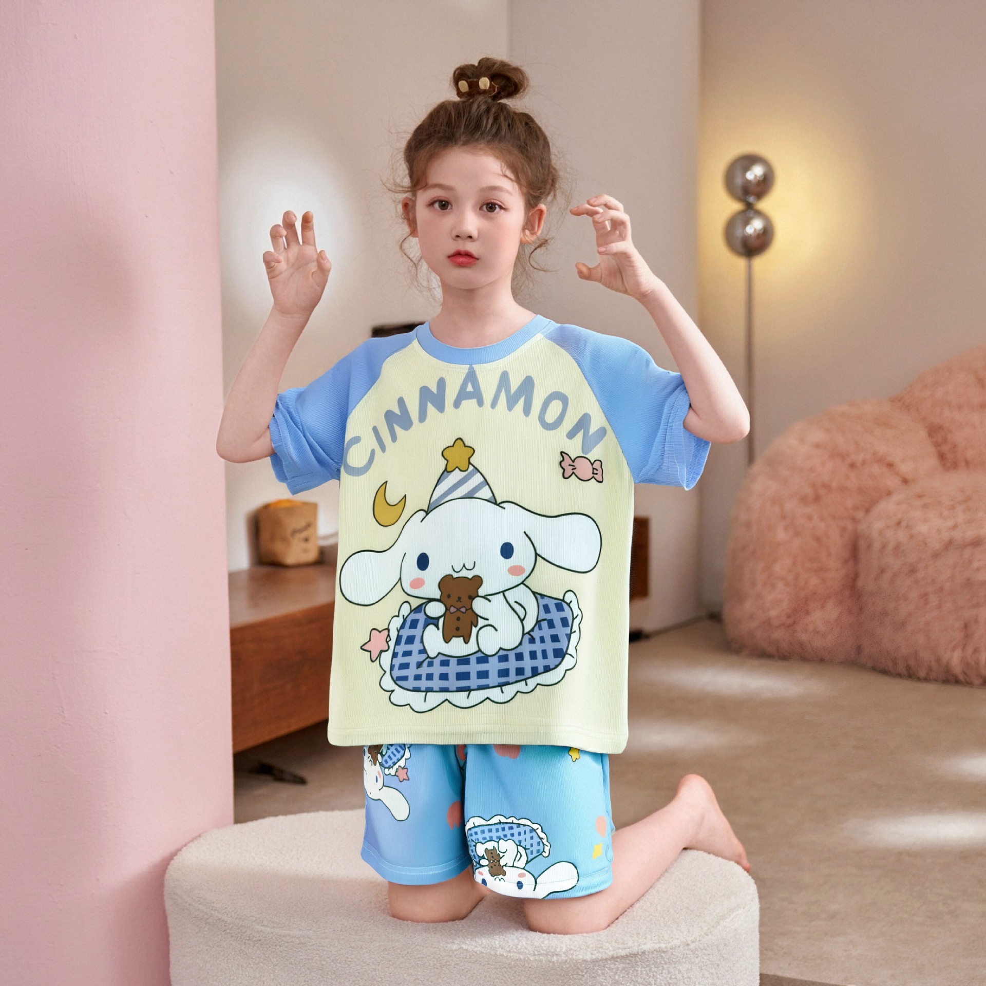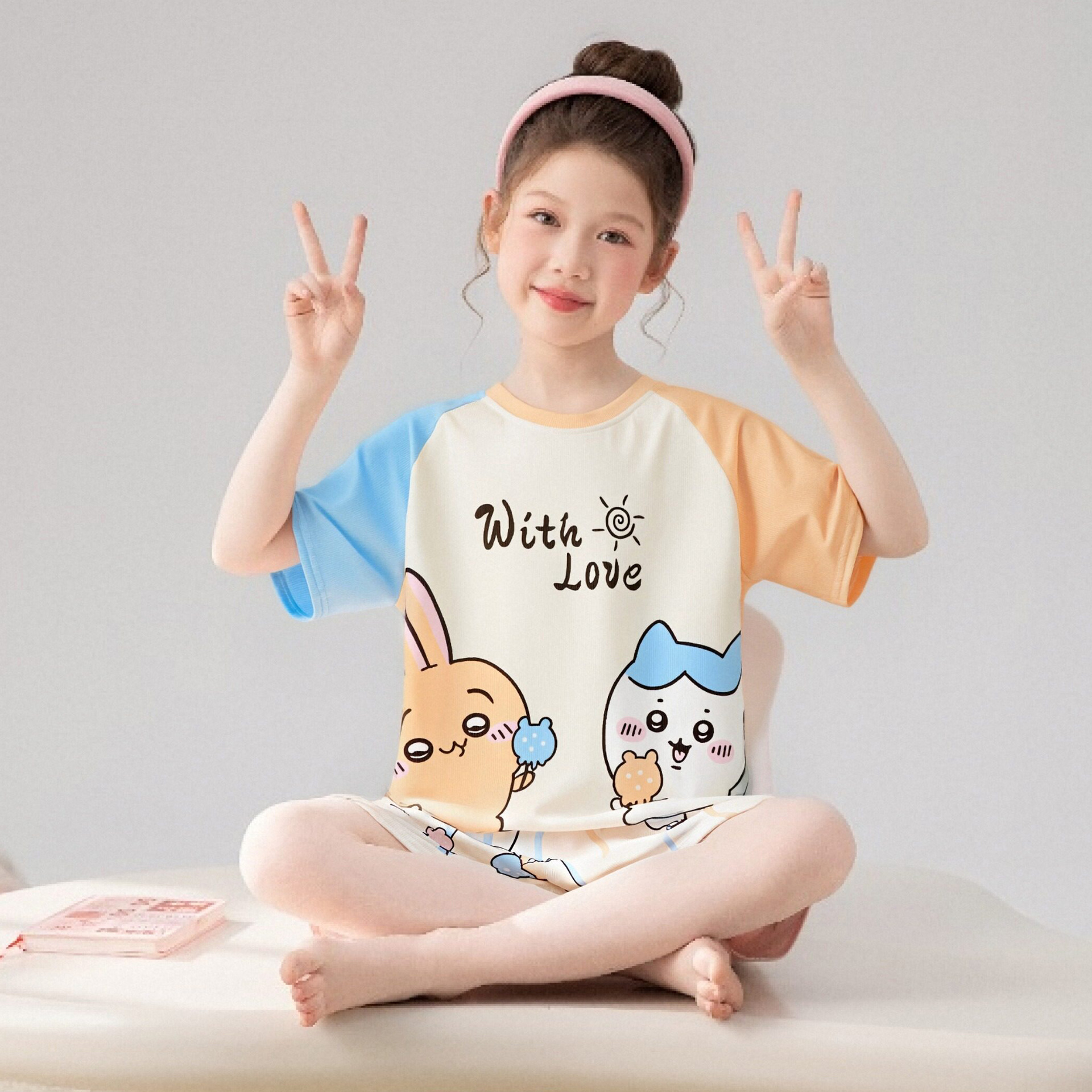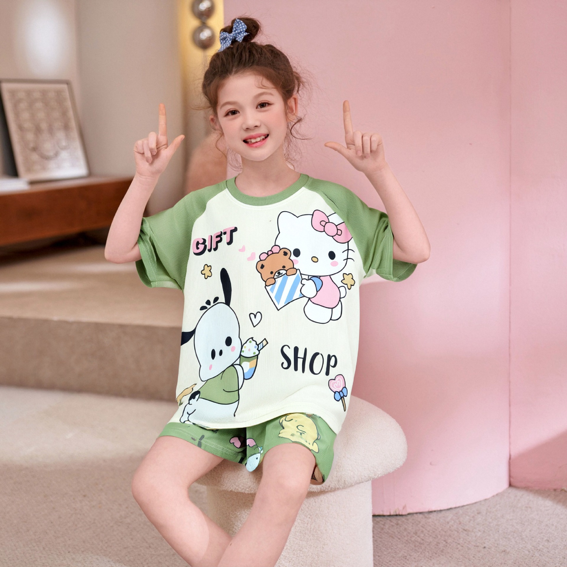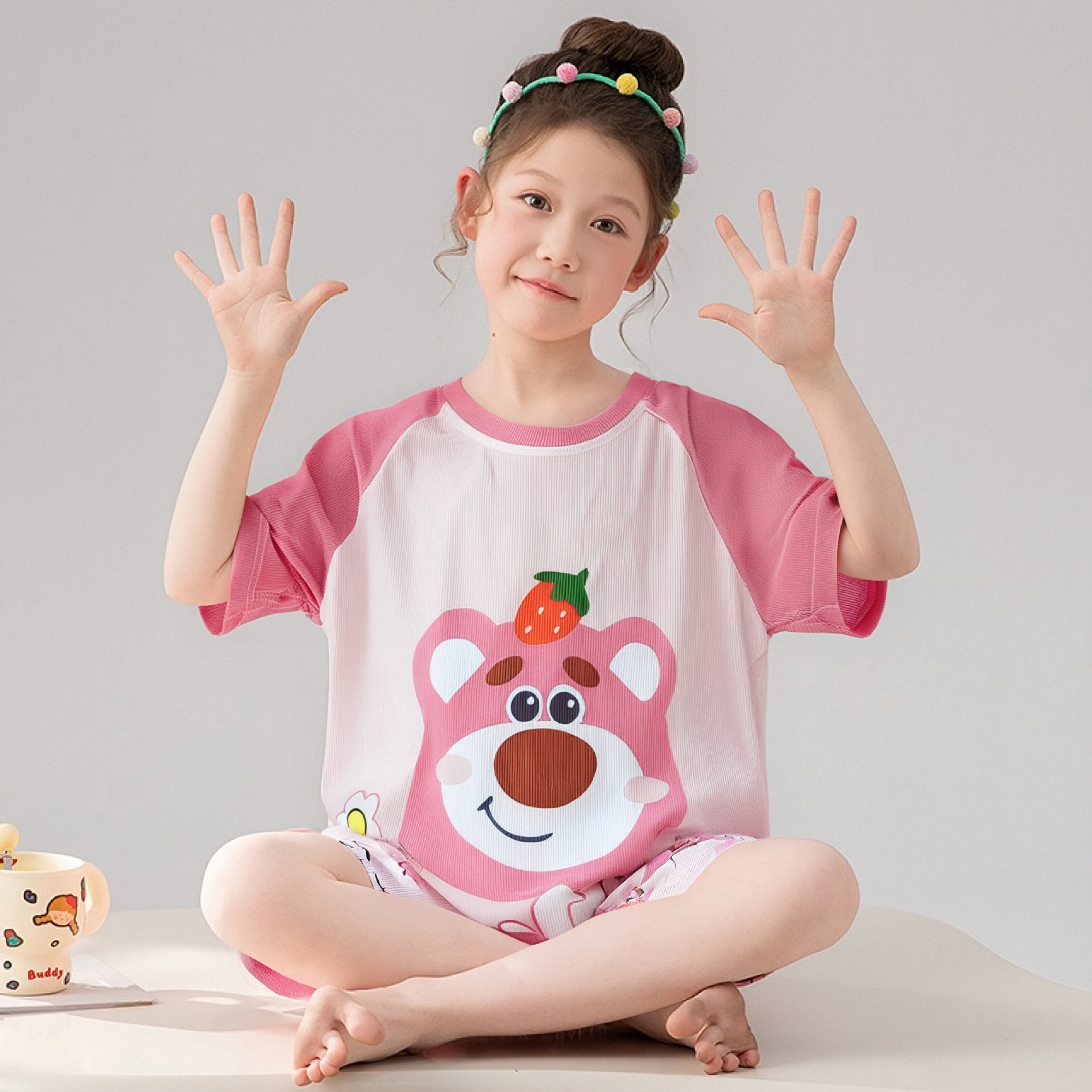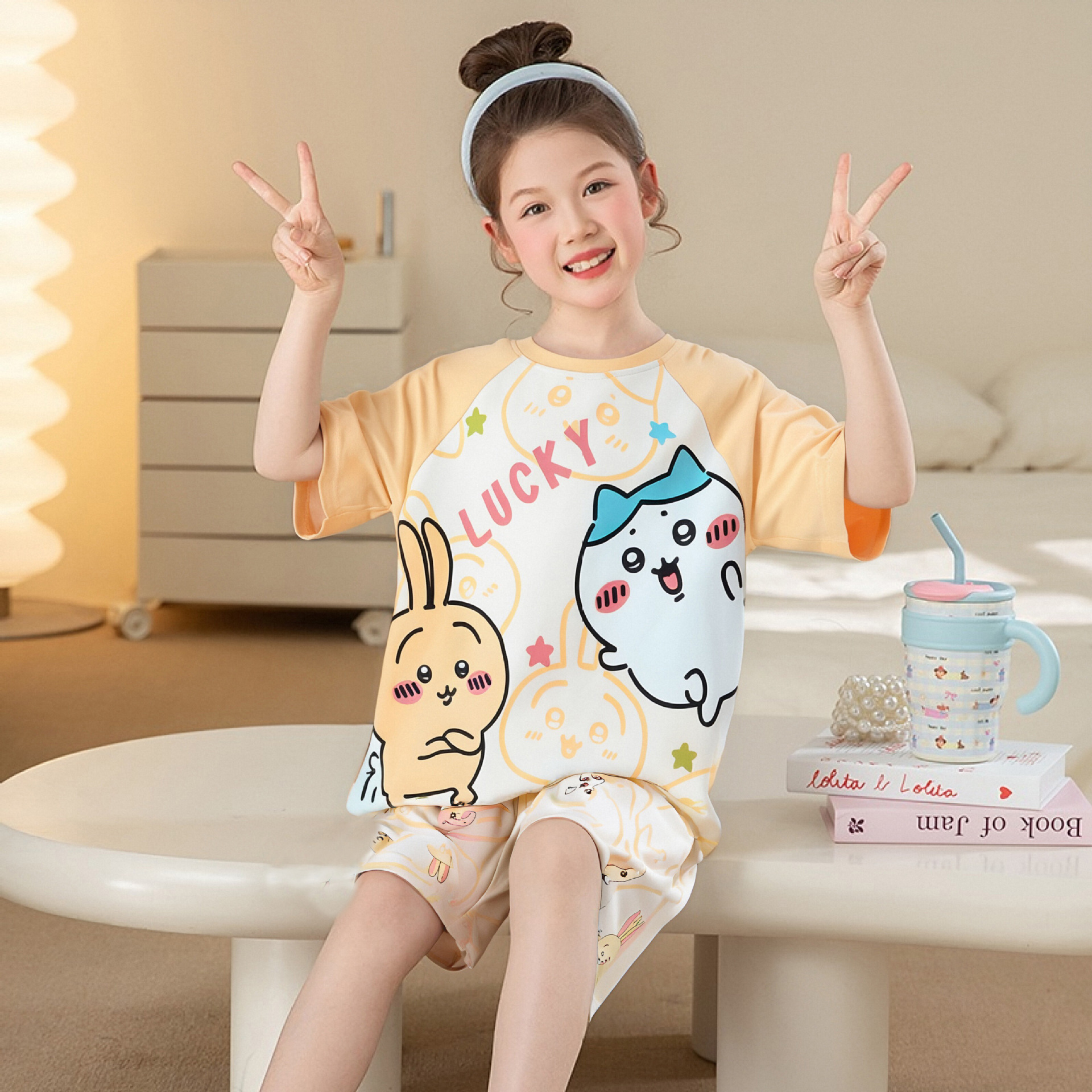 어린이 잠옷 여름 얇은 모달 반팔 만화 소녀 중대형 어린이 어머니와 딸 부모-자식 가정 의류 세트