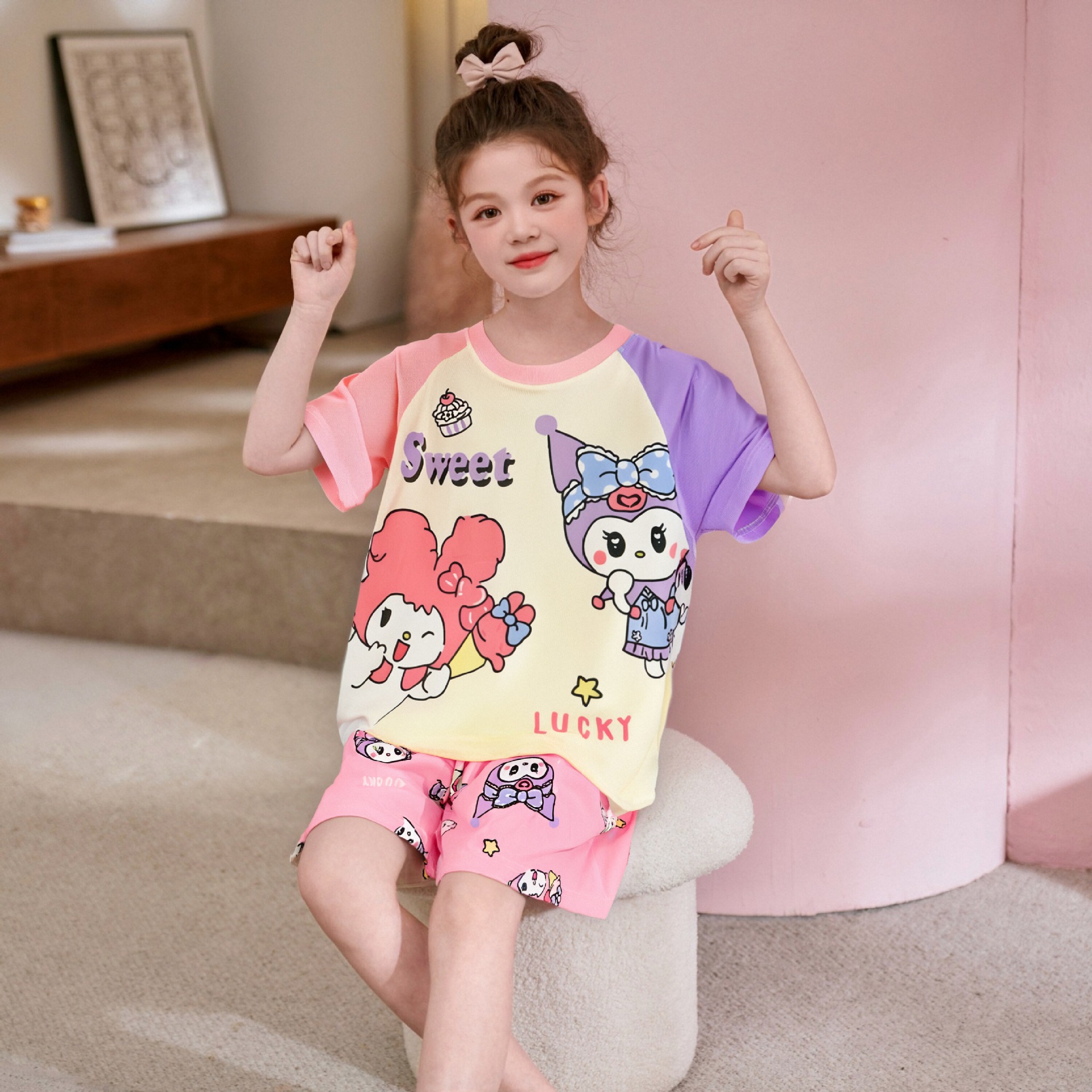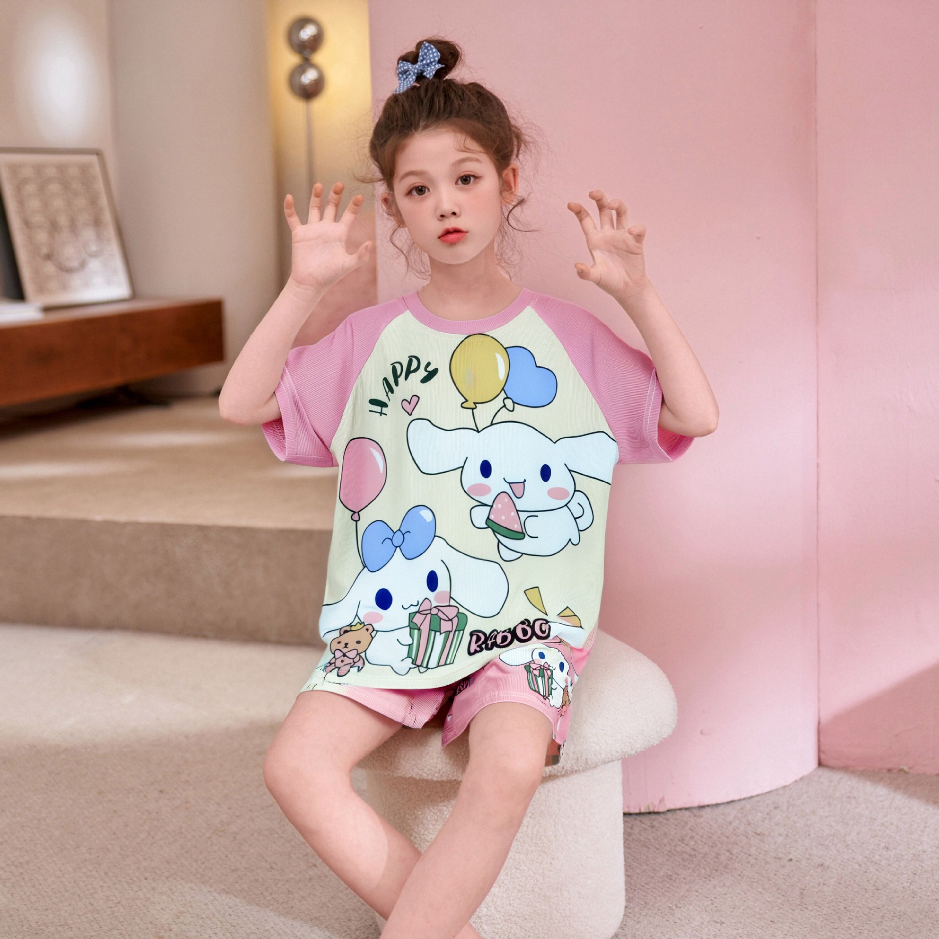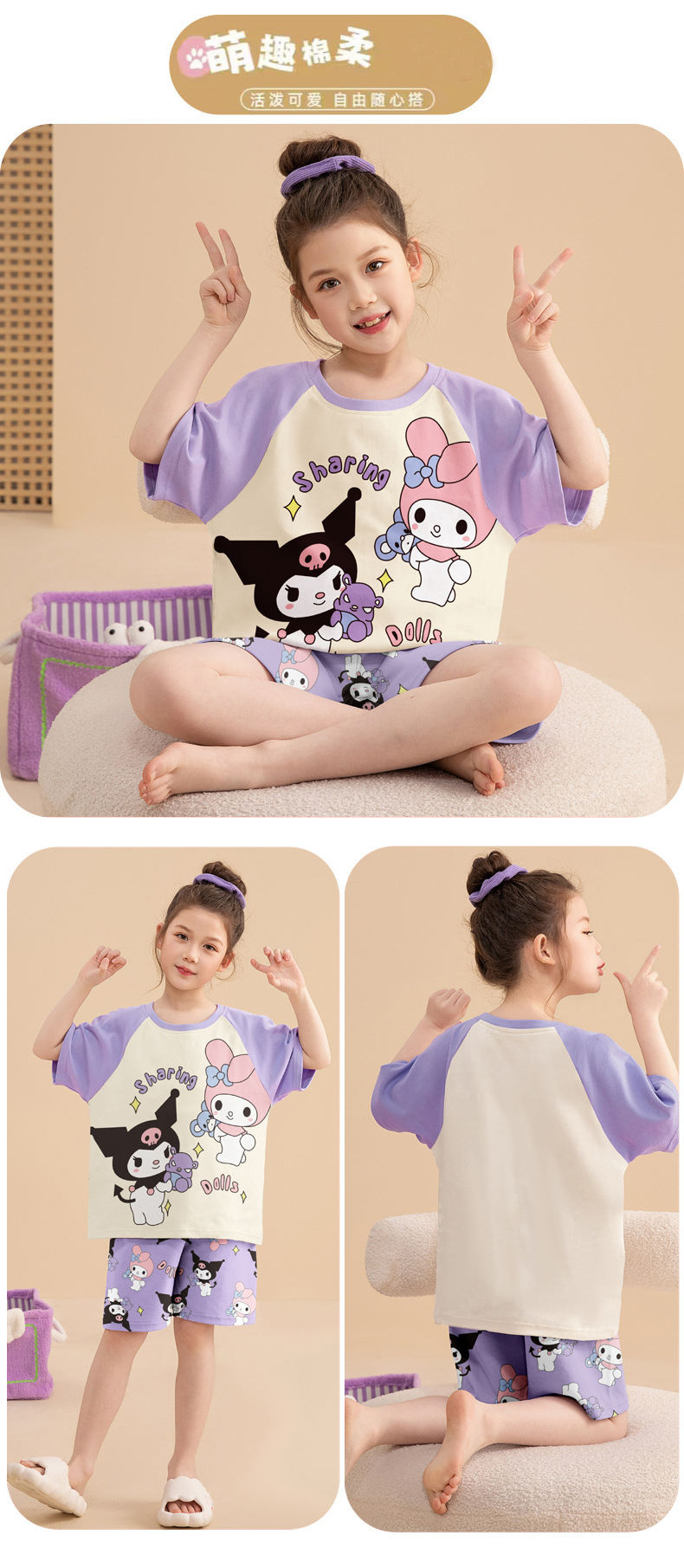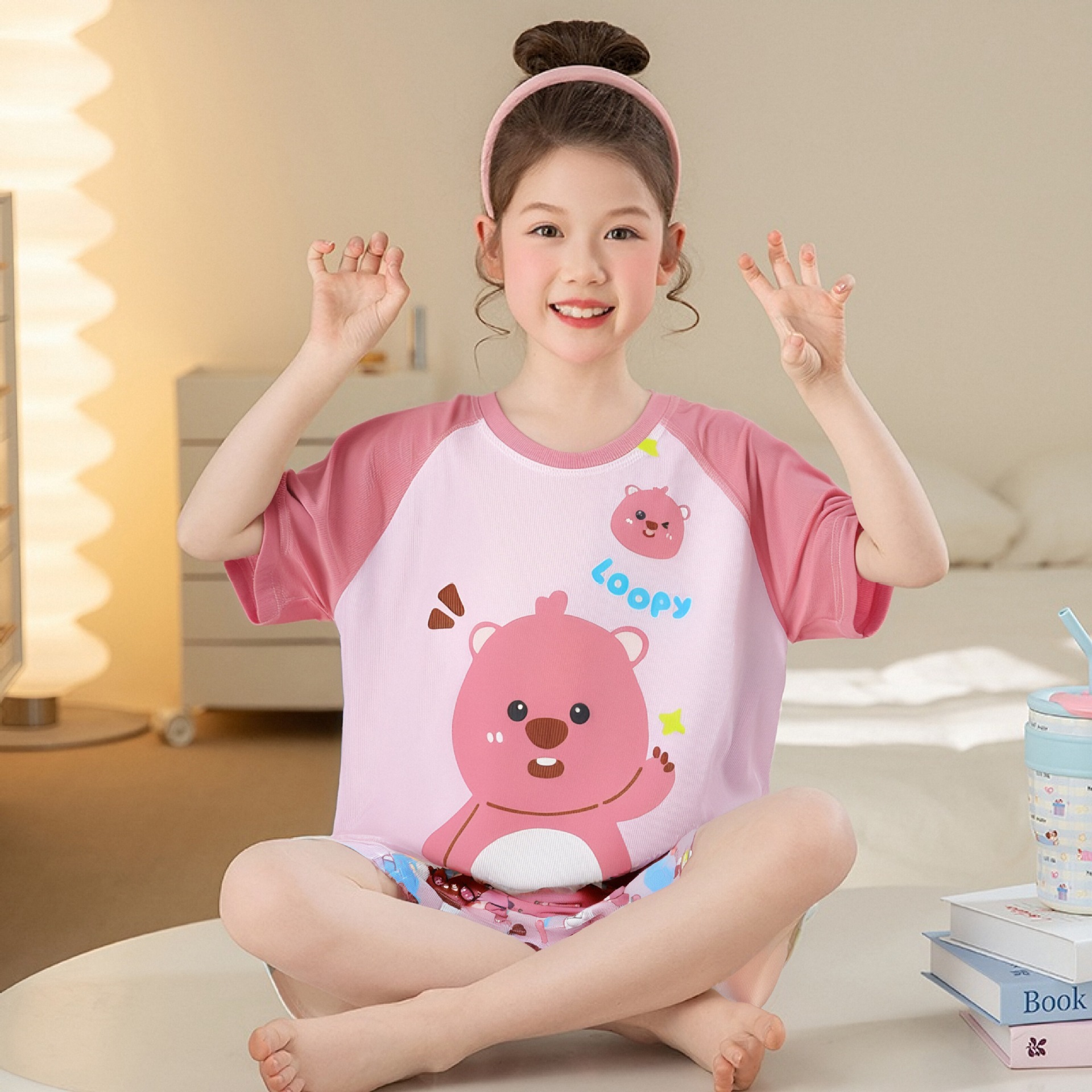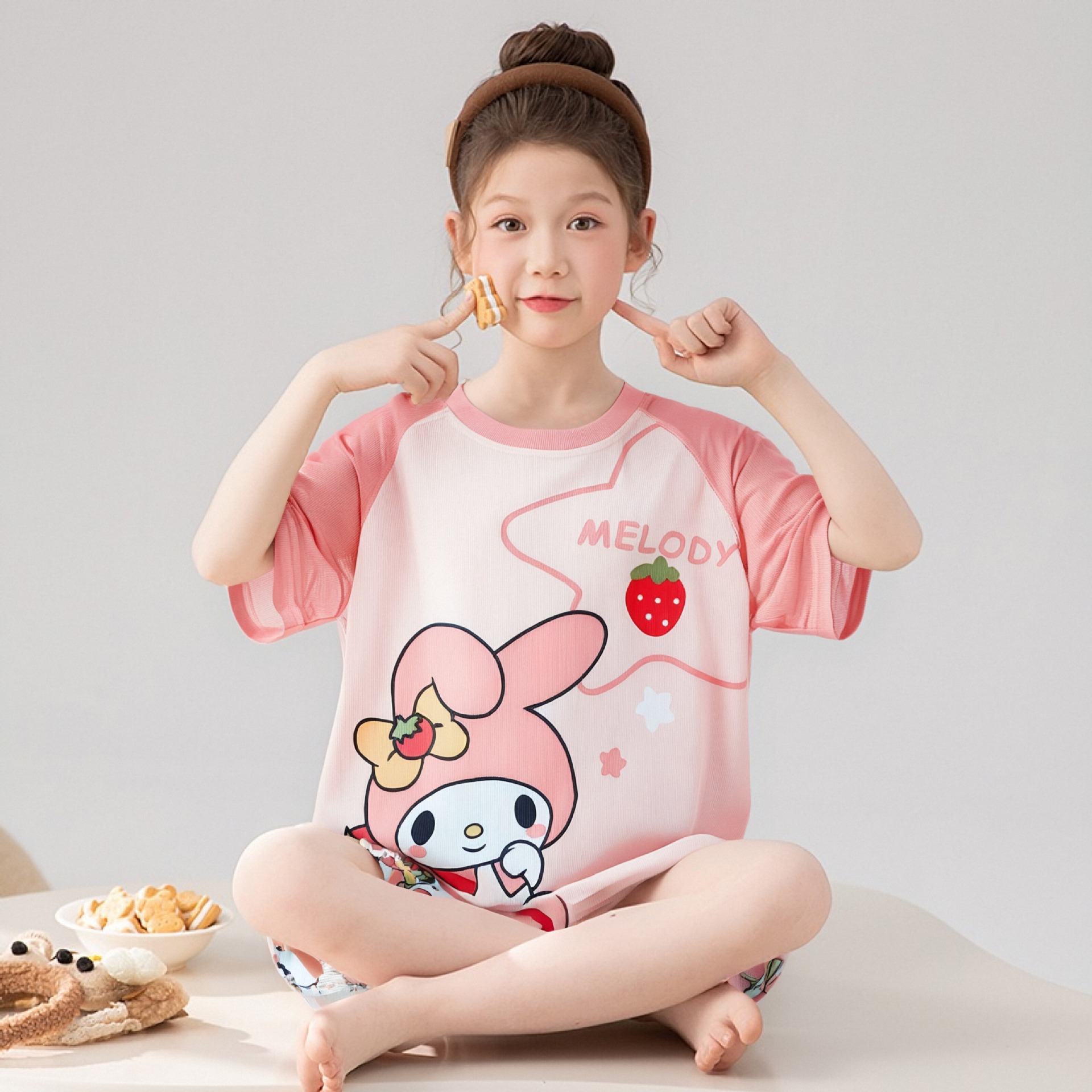 어린이 잠옷 여름 얇은 모달 반팔 만화 소녀 중대형 어린이 어머니와 딸 부모-자식 가정 의류 세트
