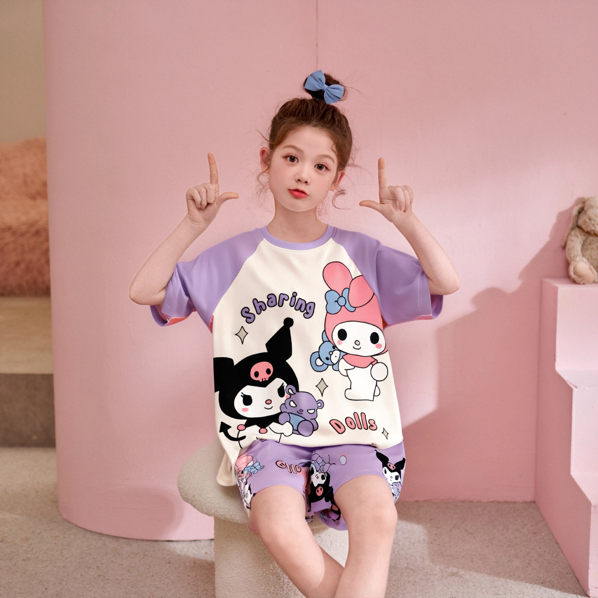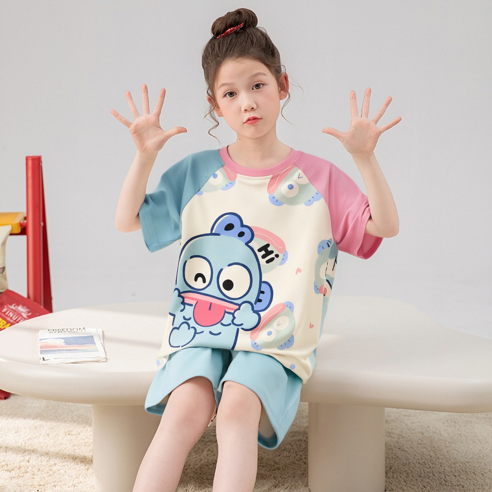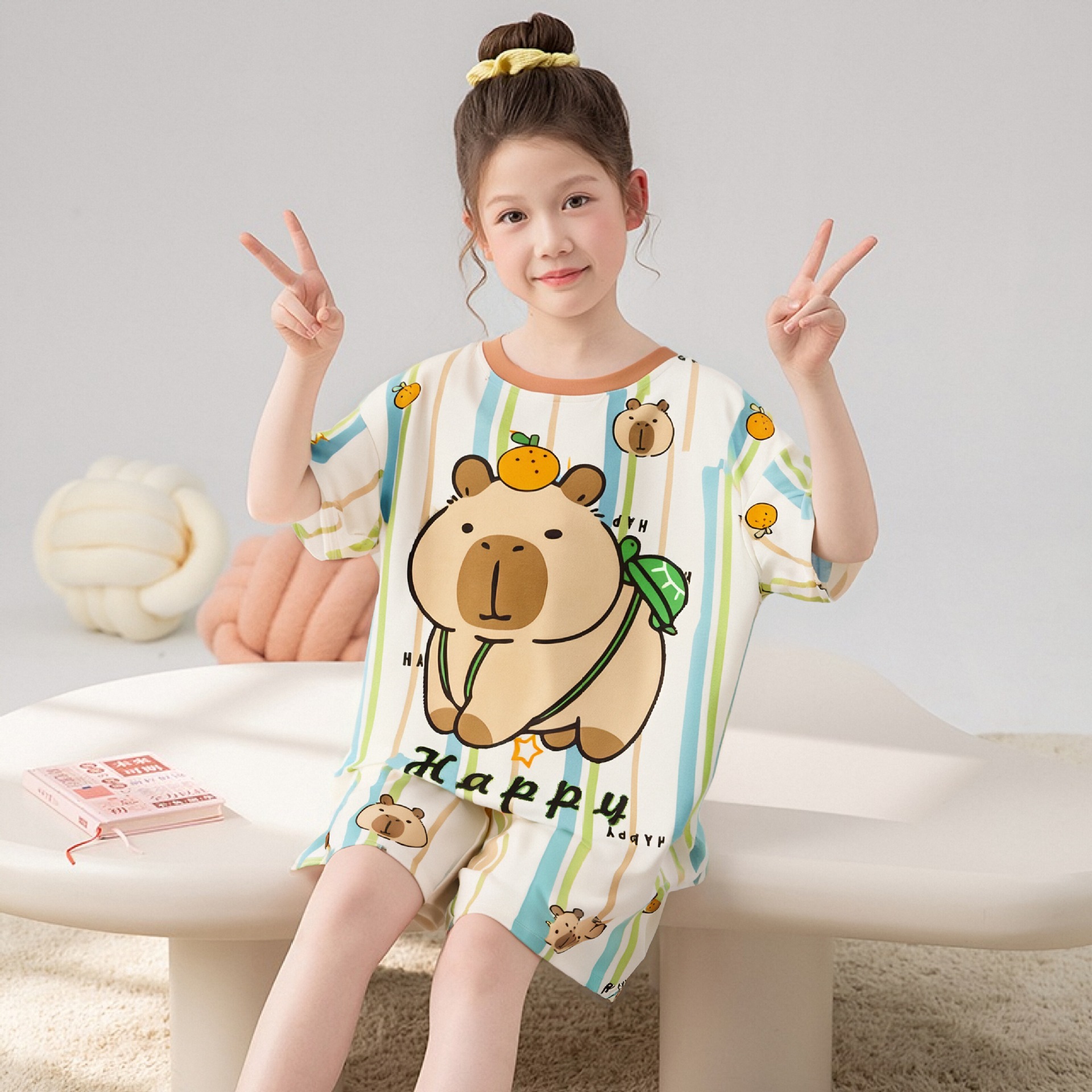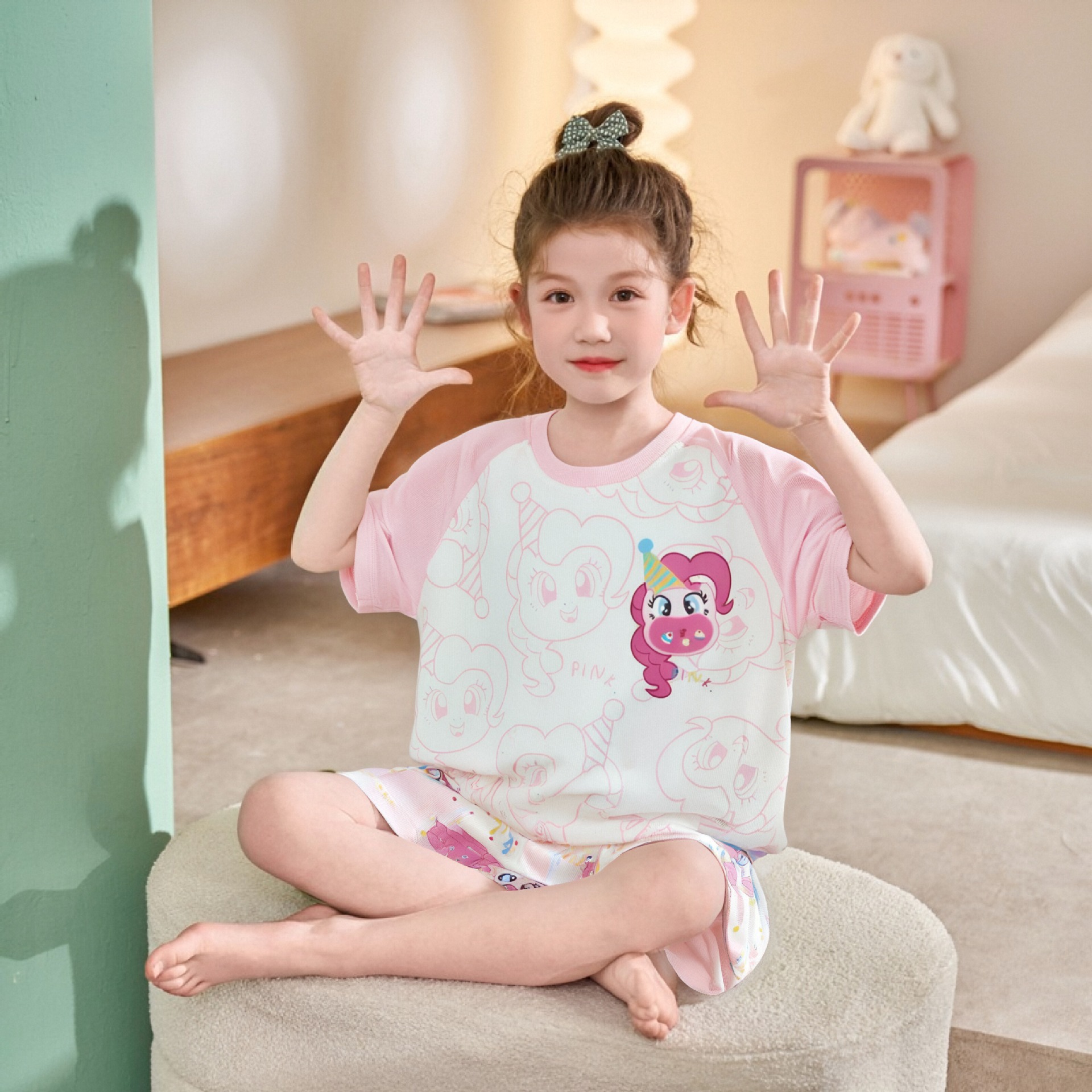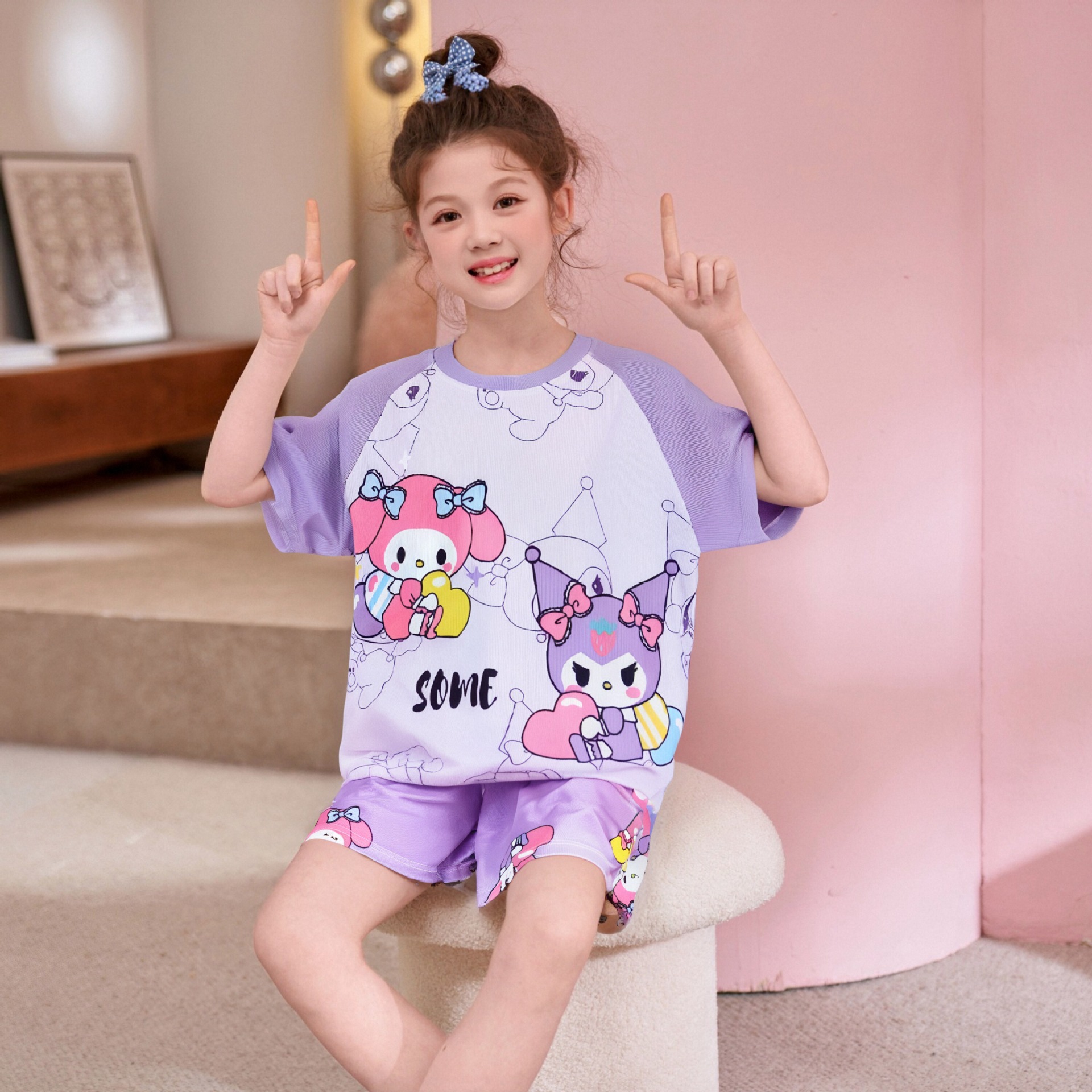 어린이 잠옷 여름 얇은 모달 반팔 만화 소녀 중대형 어린이 어머니와 딸 부모-자식 가정 의류 세트
