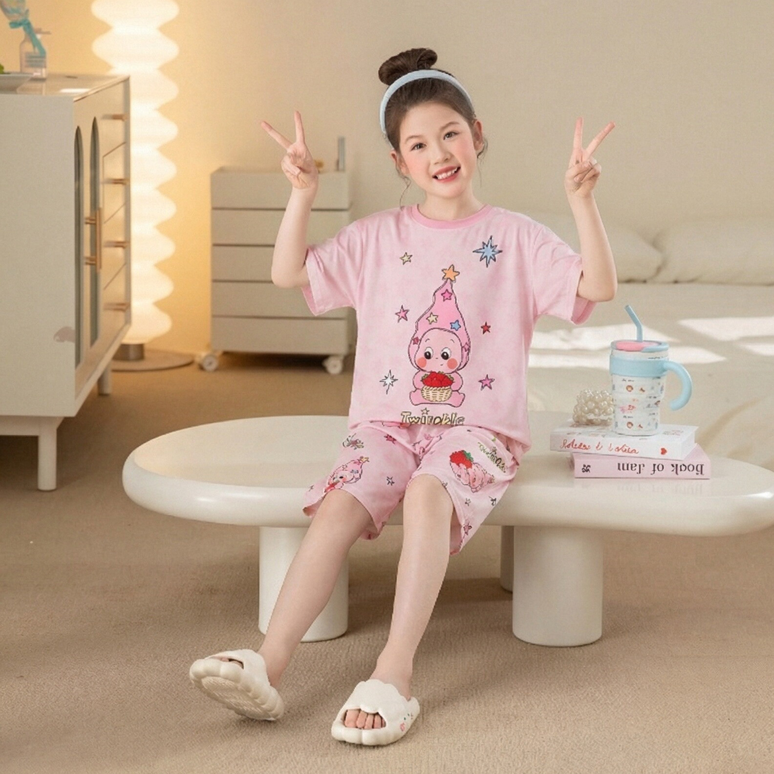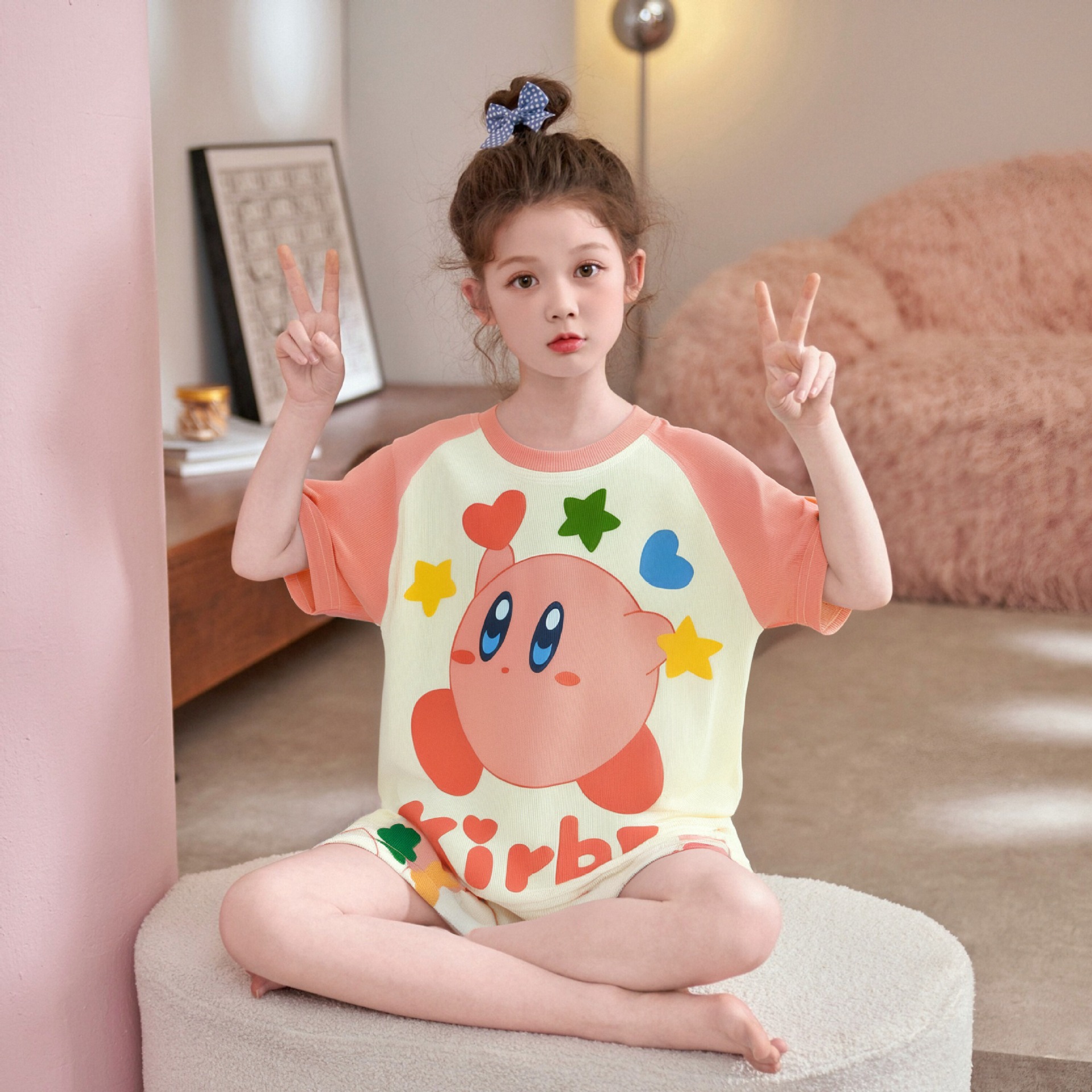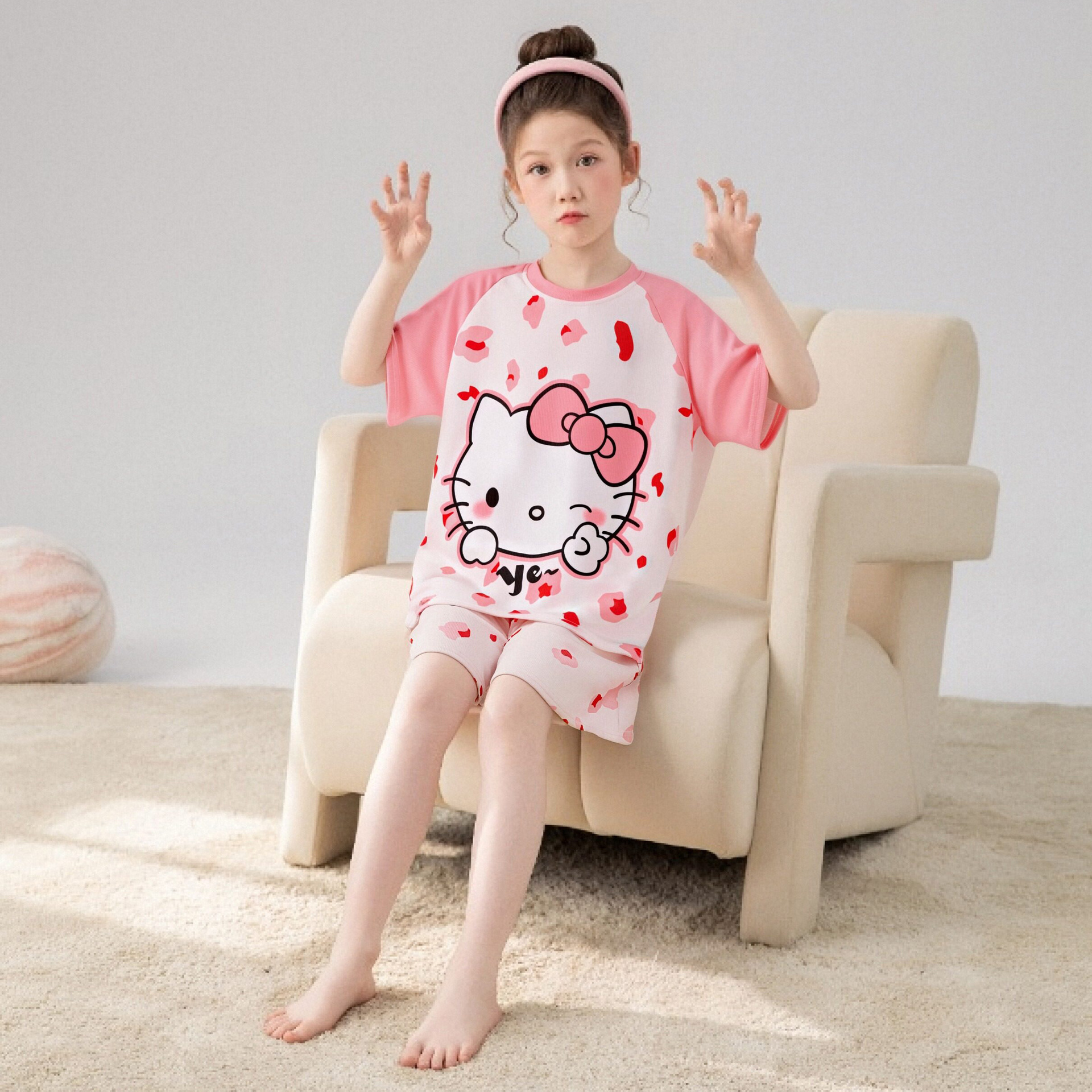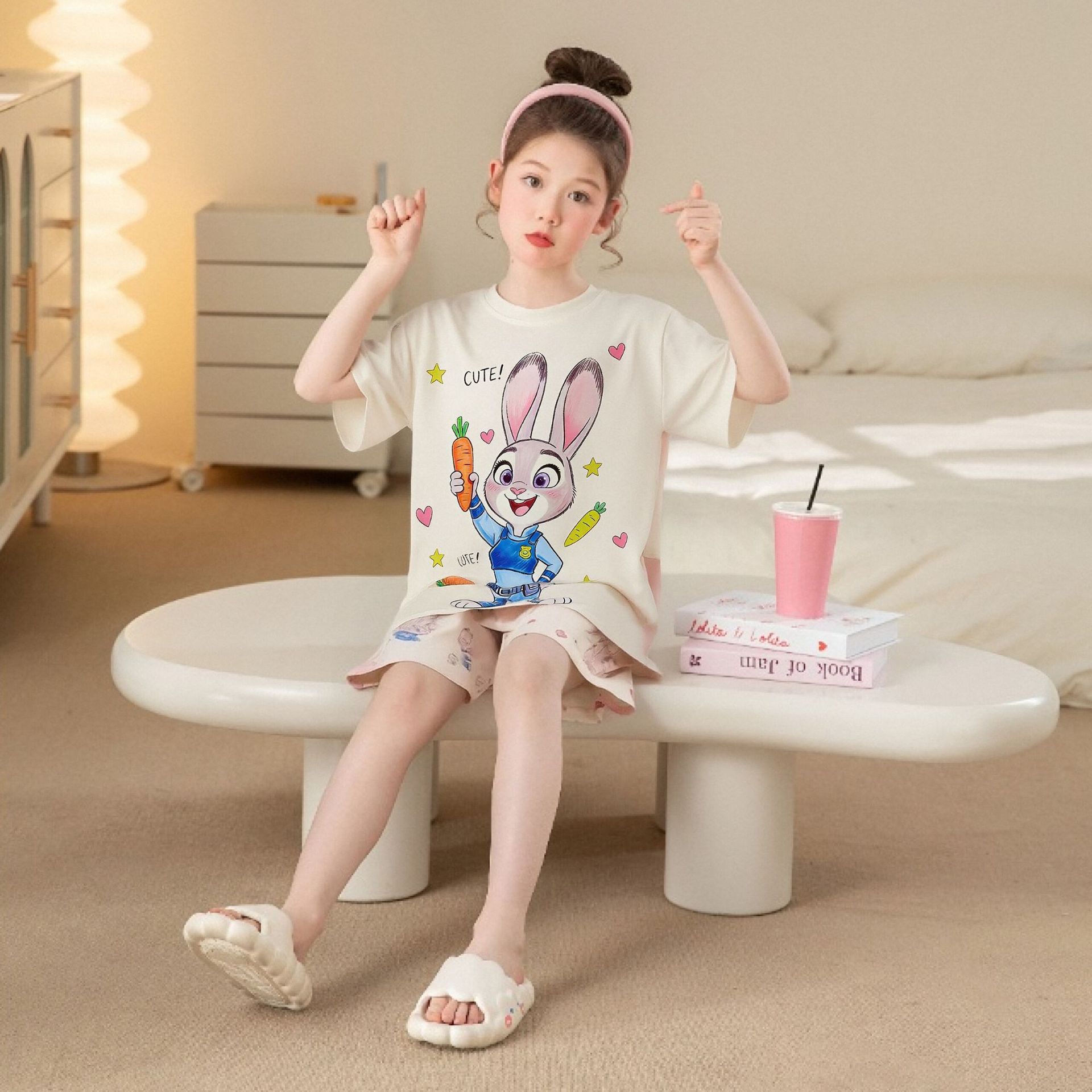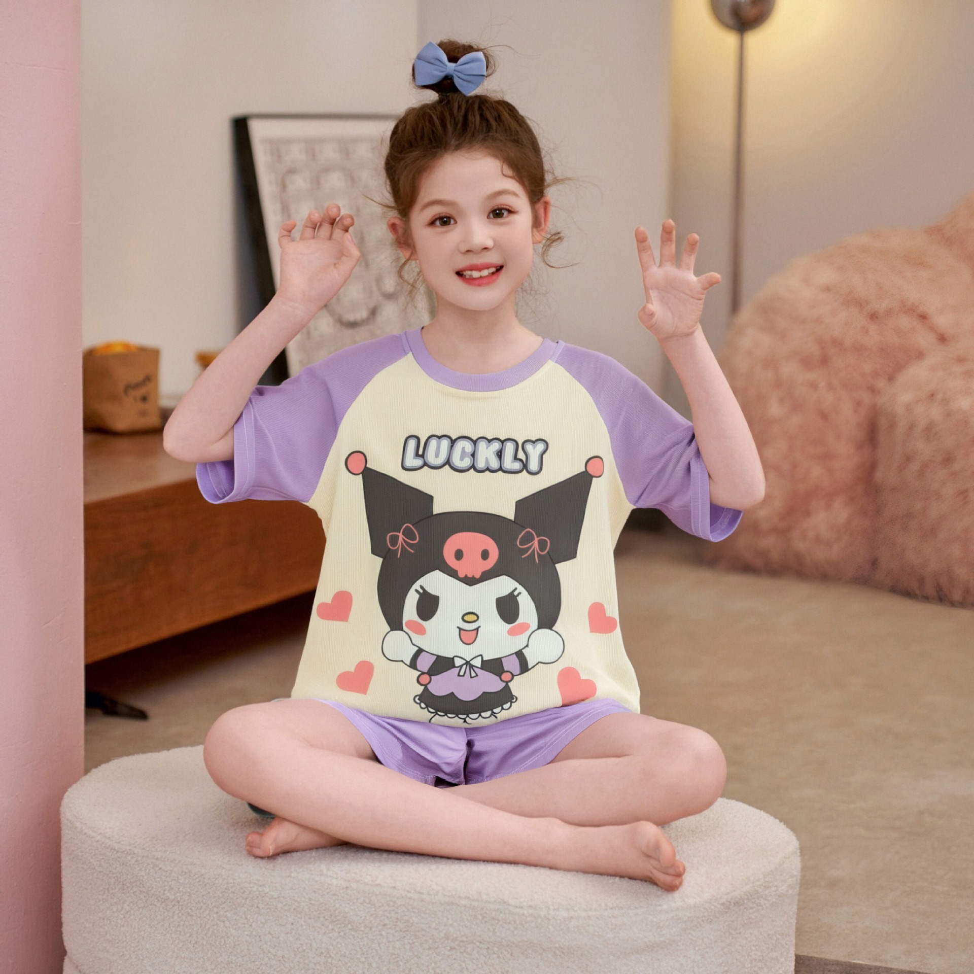 어린이 잠옷 여름 얇은 모달 반팔 만화 소녀 중대형 어린이 어머니와 딸 부모-자식 가정 의류 세트