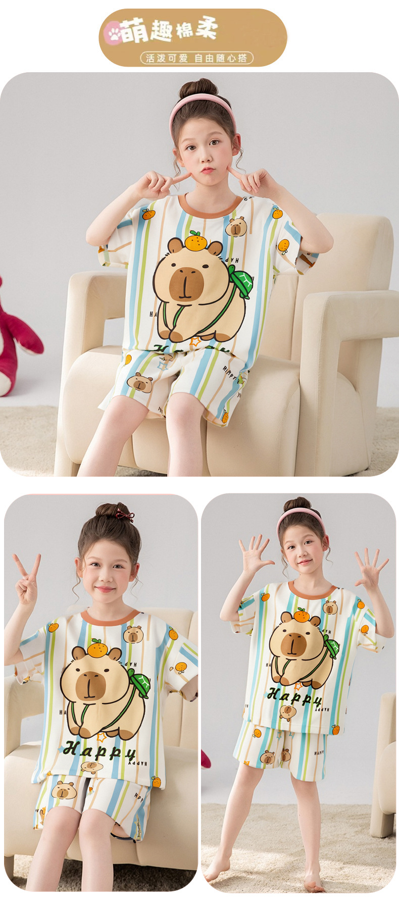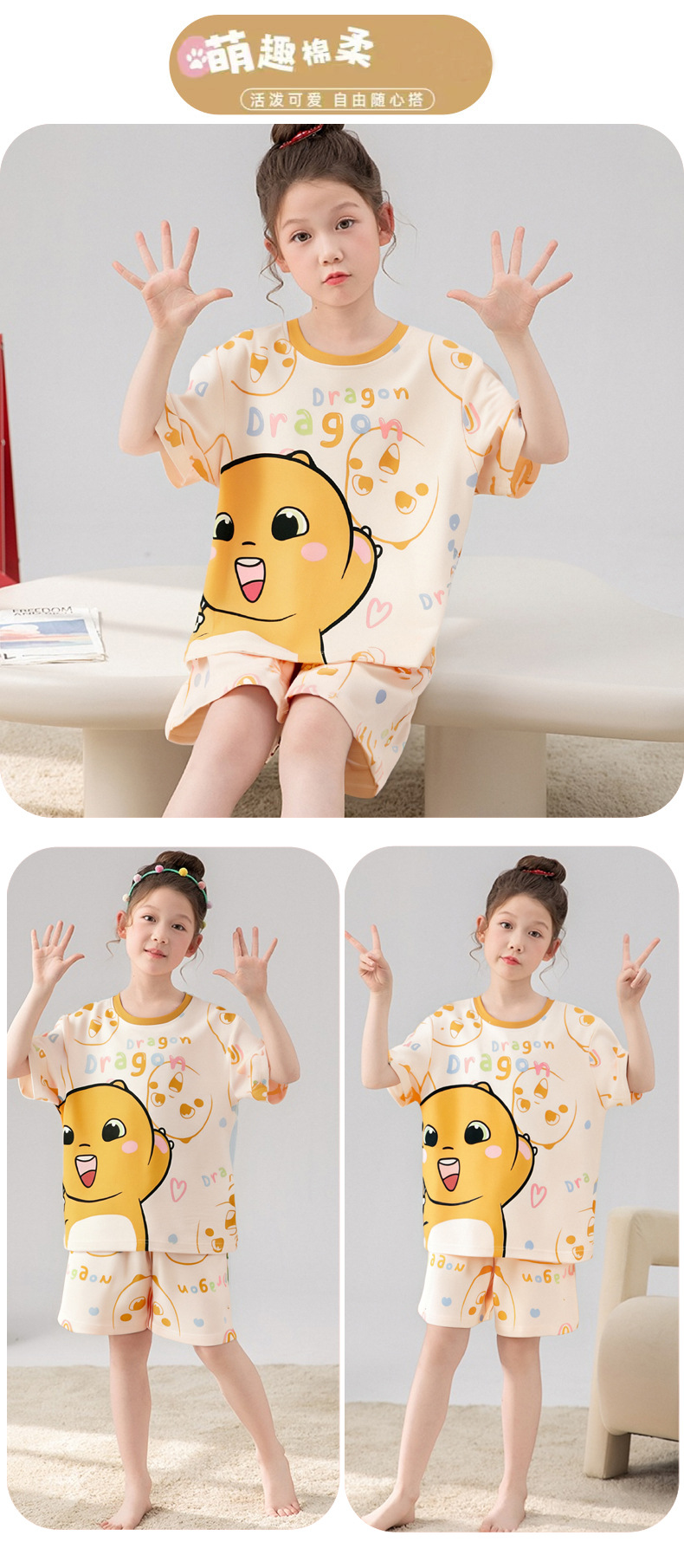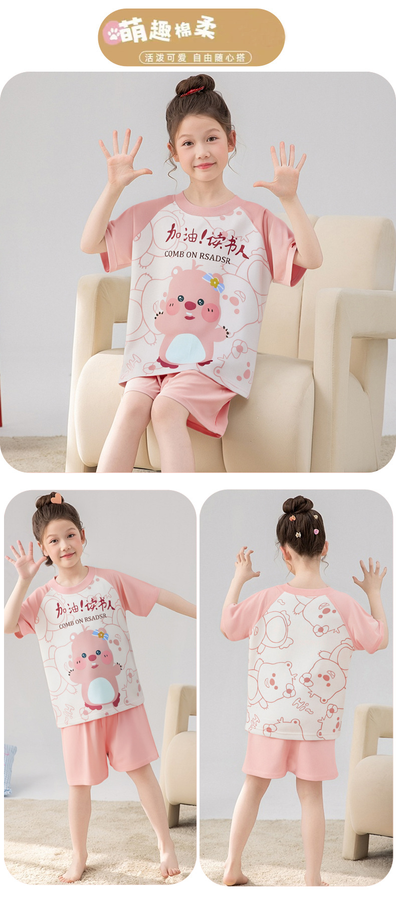 어린이 잠옷 여름 얇은 모달 반팔 만화 소녀 중대형 어린이 어머니와 딸 부모-자식 가정 의류 세트스토어 가기