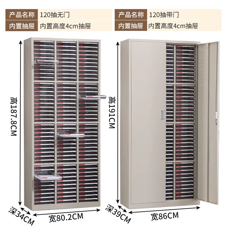• 문이 없는 120개의 드로우로 구성된 세 줄(작은 드로우)