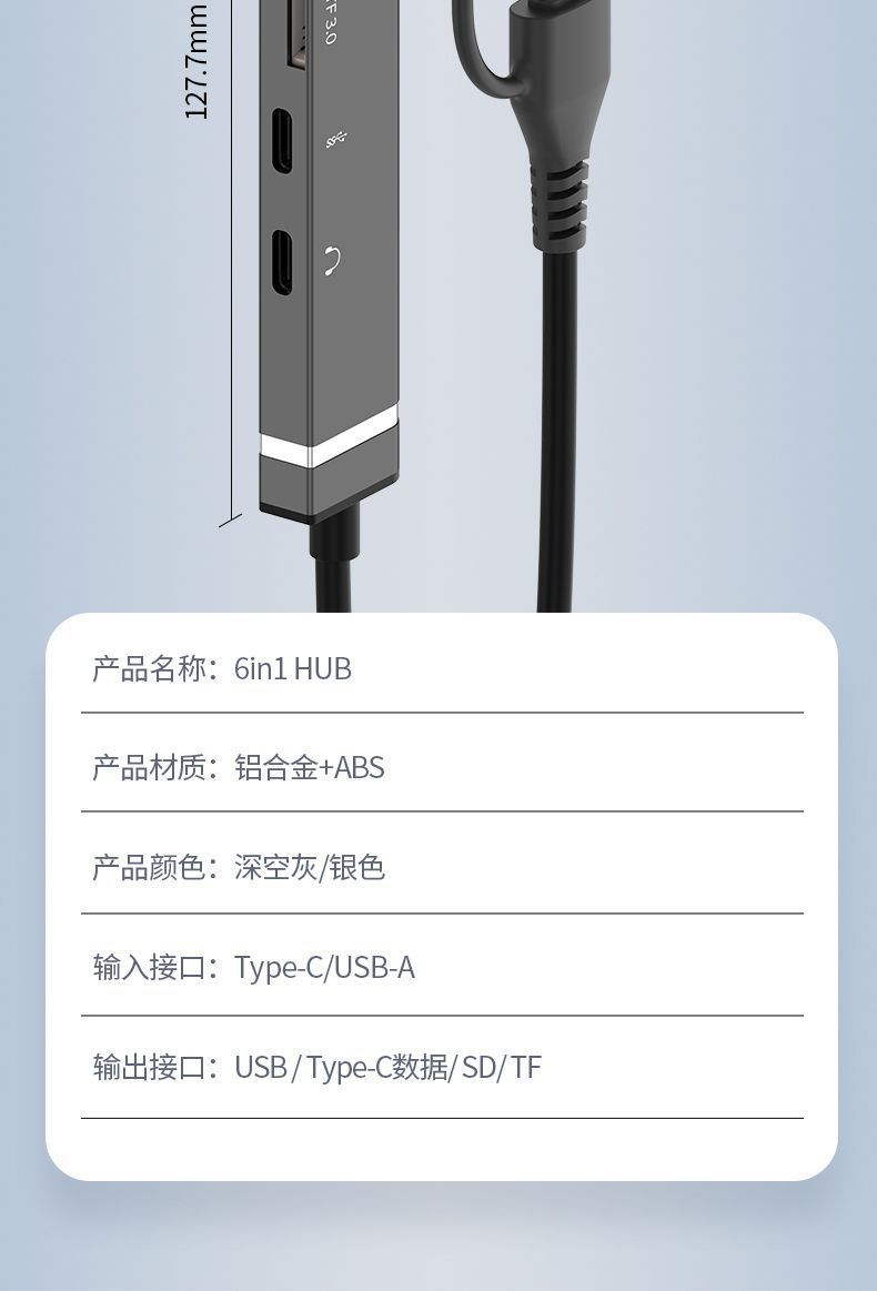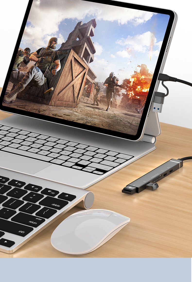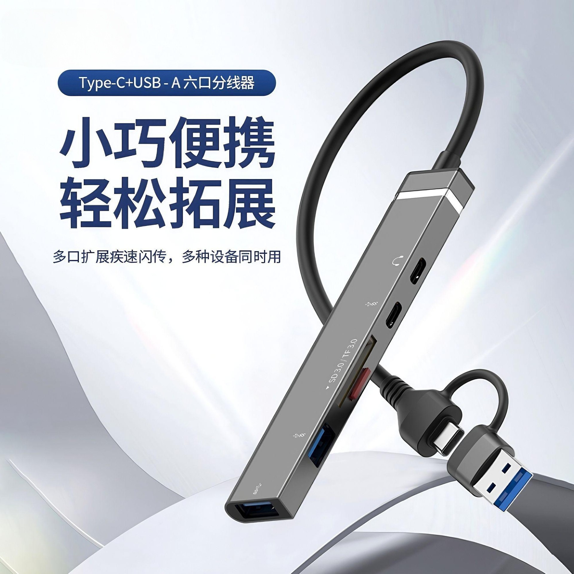USB 도킹 스테이션 2-in -1 Typec 다기능 확장기 노트북 오디오 카드 리더 6-in -1 허브