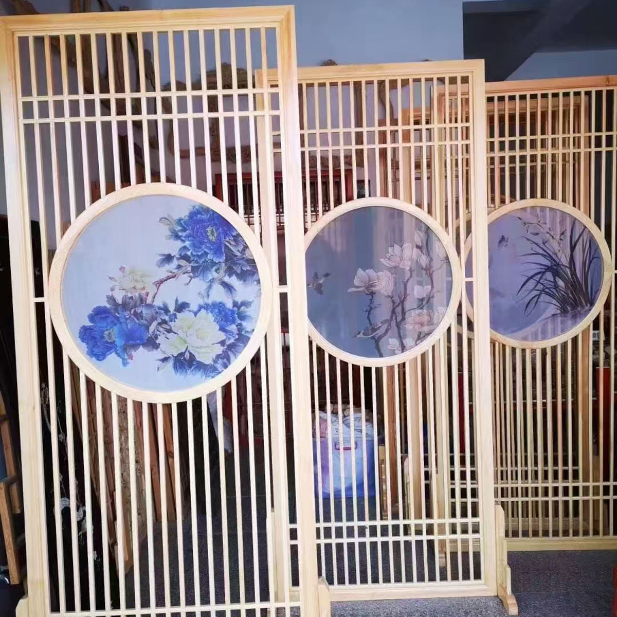 새로운 중국 스타일 입구 스크린 파티션 단단한 나무 골동품 접히는 간단한 장식 중공 입구 문 거실 장벽스토어 가기