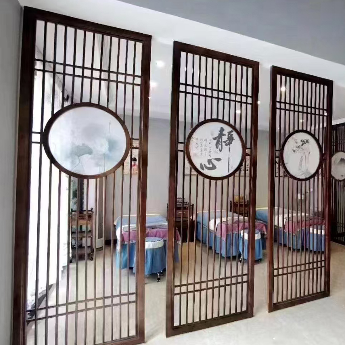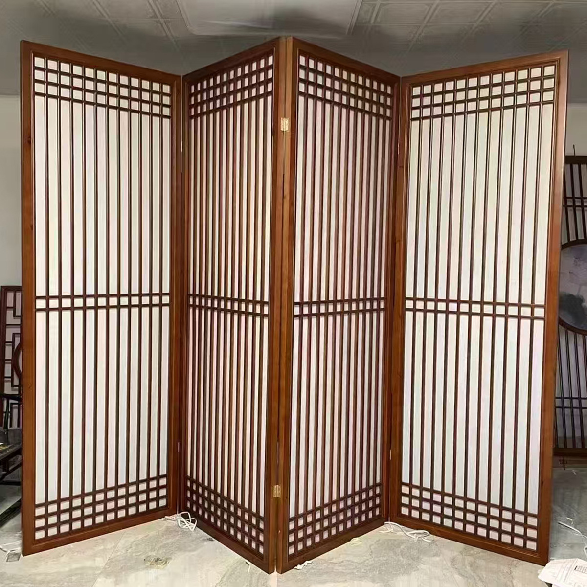 새로운 중국 스타일 입구 스크린 파티션 단단한 나무 골동품 접히는 간단한 장식 중공 입구 문 거실 장벽