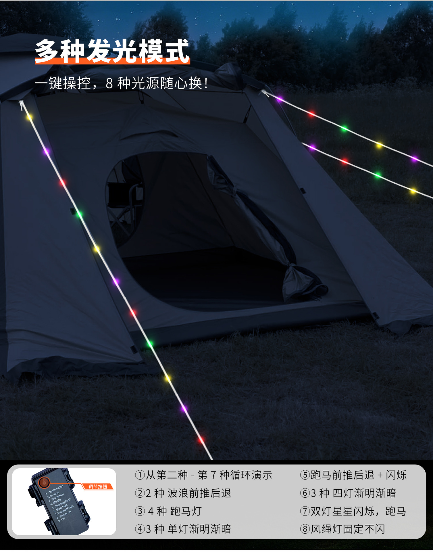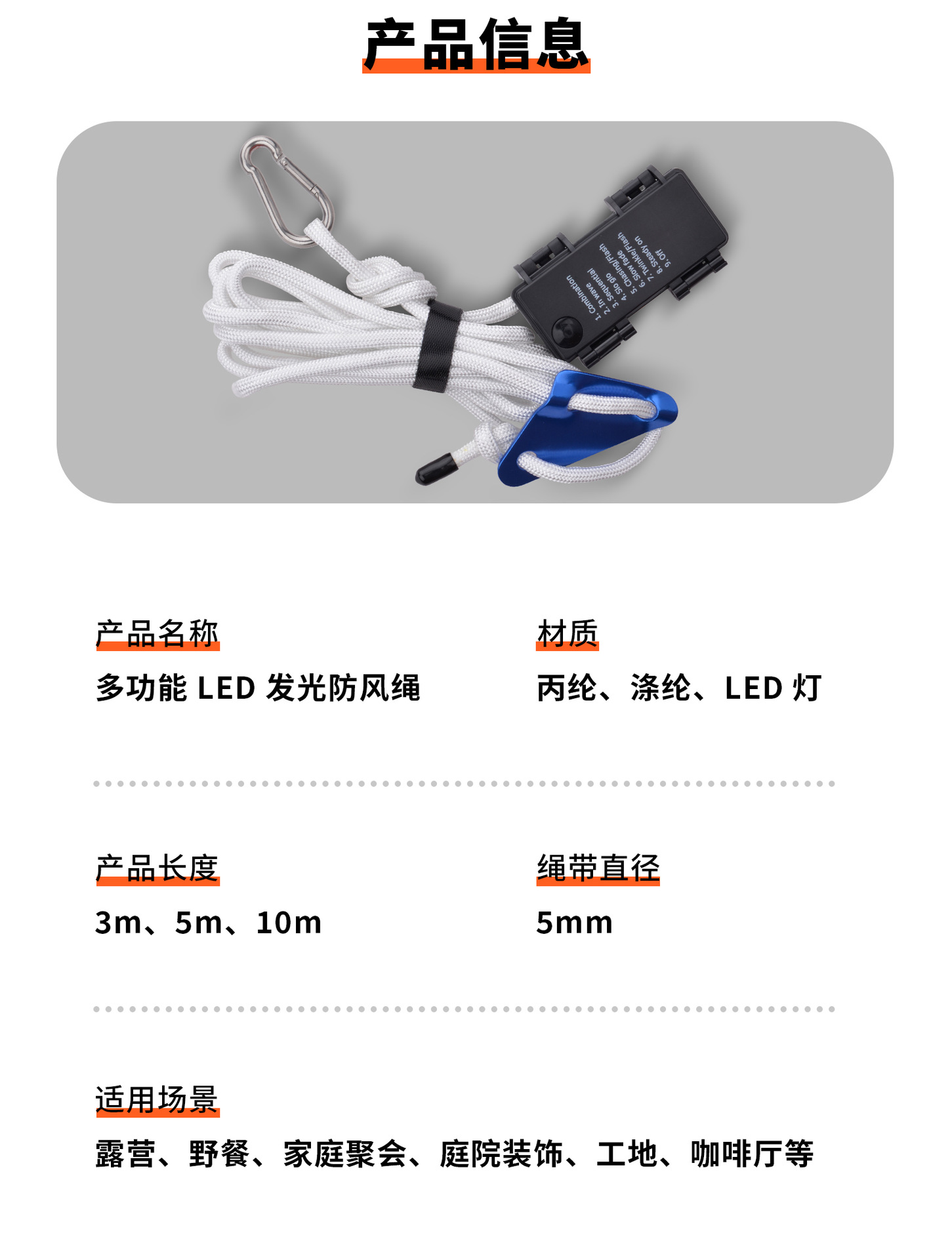 야외 캠핑 경고등 텐트 방풍 로프 캐노피 고정 로프 분위기 조명 led 캠핑 빛나는 바람 로프 조명