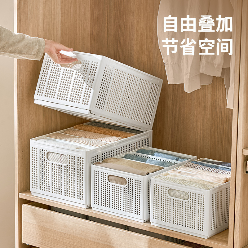 옷장 보관 계층화 된 인공물 바지 바구니 가정용 접는 계절 옷 청바지 데크 스토리지 박스 보관 상자