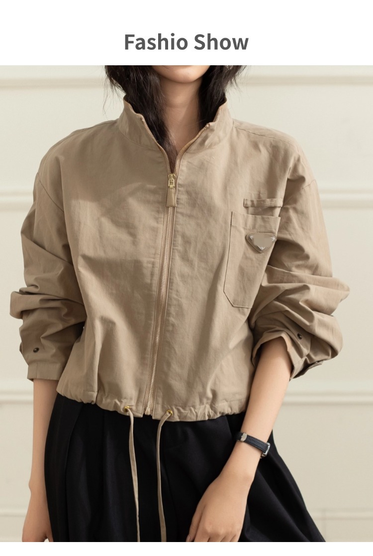 유럽 스탠드 루즈 캐주얼 스탠드 칼라 드로스트링 허리 재킷 여성용 초가을 새로운 디자인 짧은 솔리드 컬러 재킷