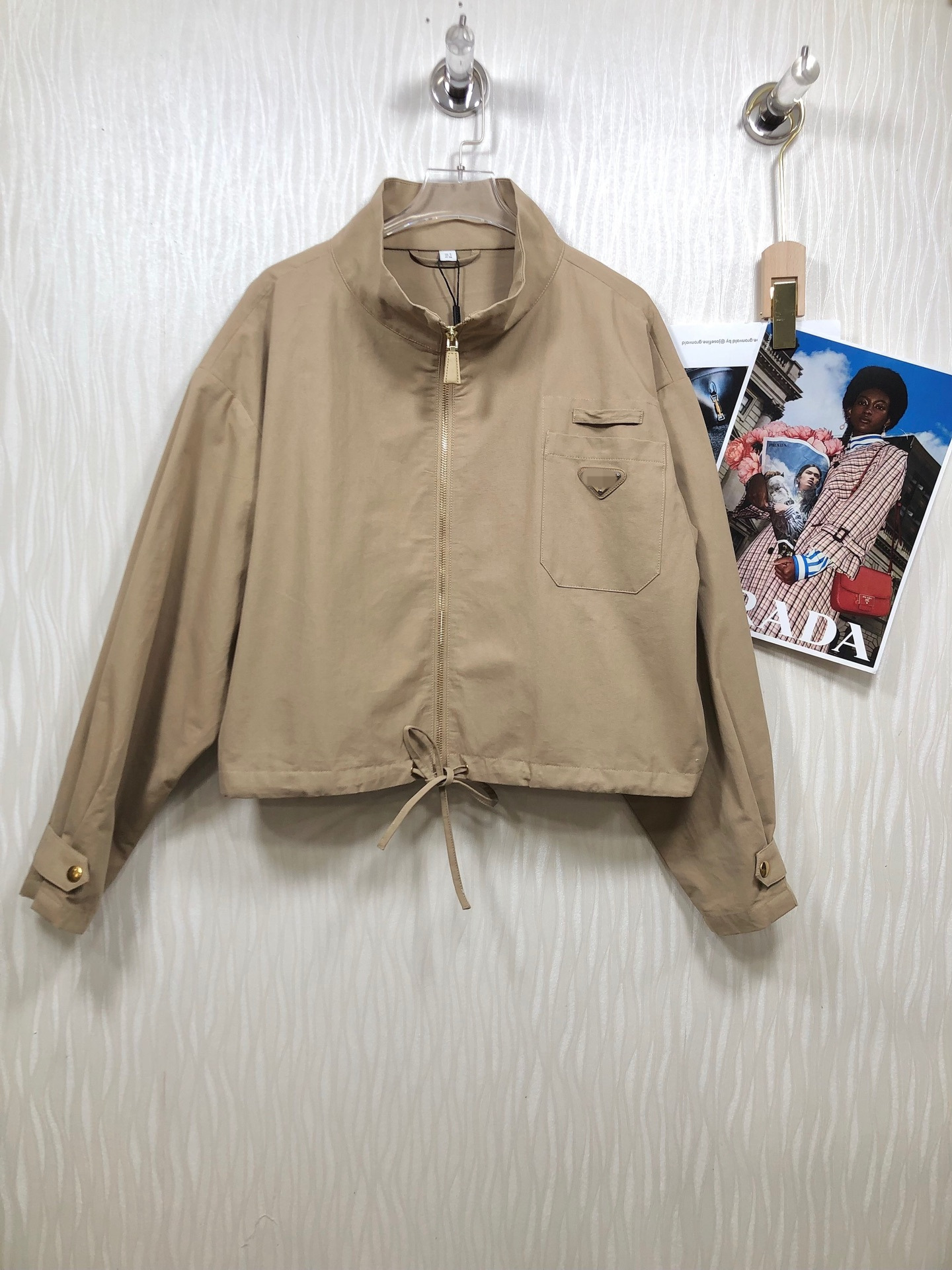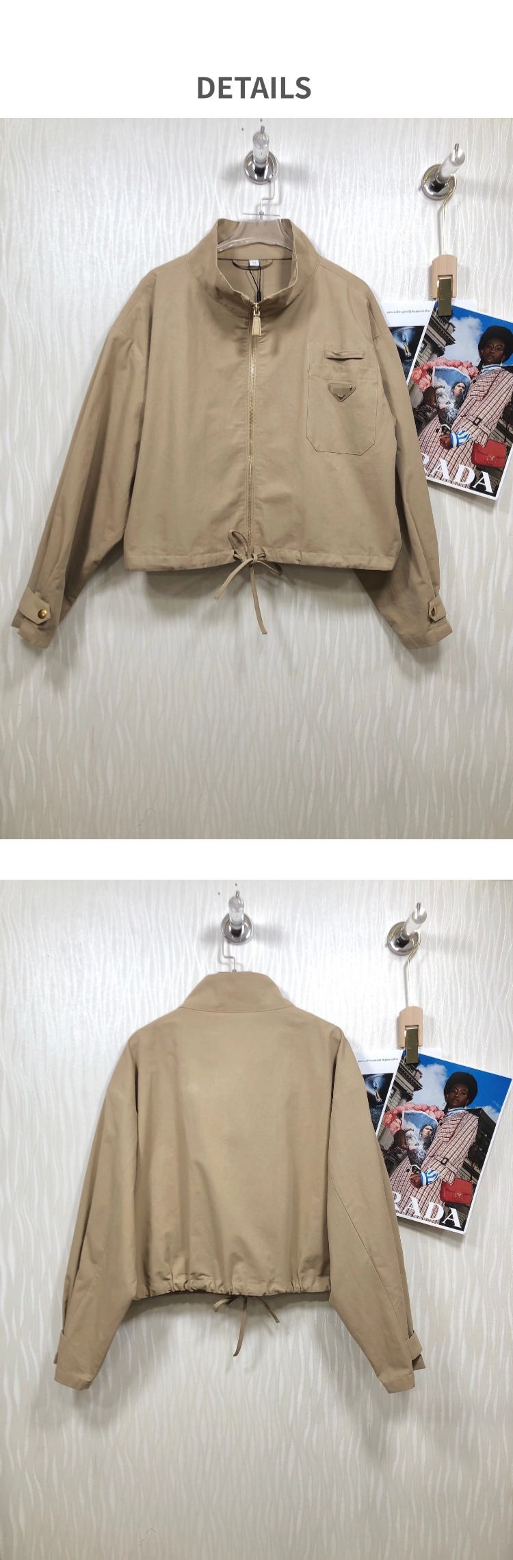 유럽 스탠드 루즈 캐주얼 스탠드 칼라 드로스트링 허리 재킷 여성용 초가을 새로운 디자인 짧은 솔리드 컬러 재킷스토어 가기