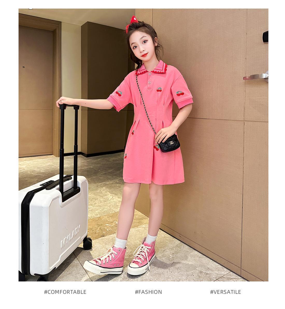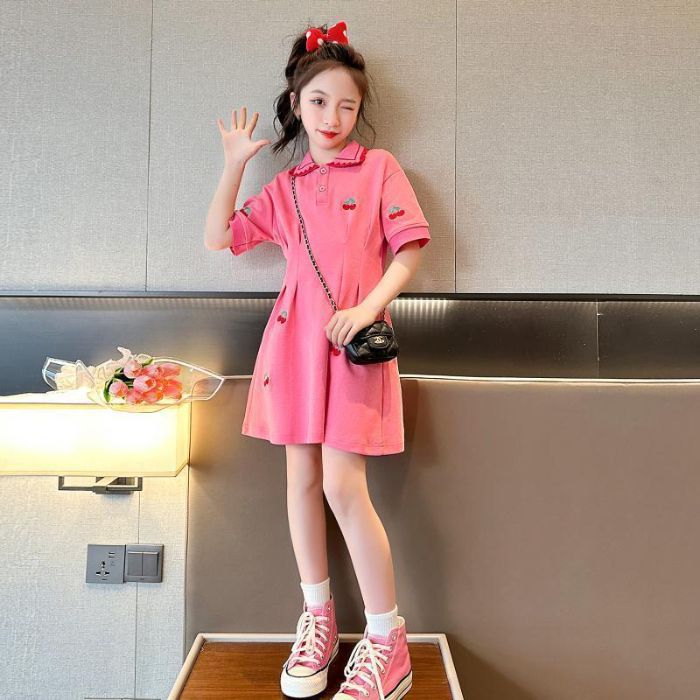 소녀 여름 원피스 2025 새로운 세련된 유행 어린이 공주 원피스 여름 원피스 어린 소녀의 반팔 폴로 원피스