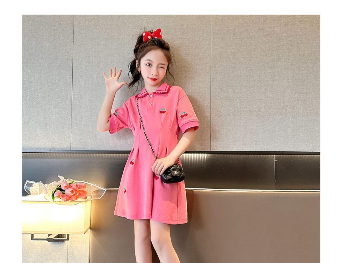 소녀 여름 원피스 2025 새로운 세련된 유행 어린이 공주 원피스 여름 원피스 어린 소녀의 반팔 폴로 원피스스토어 가기