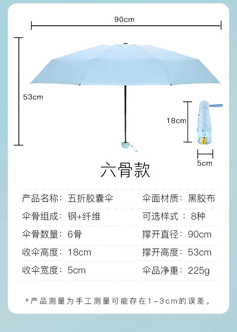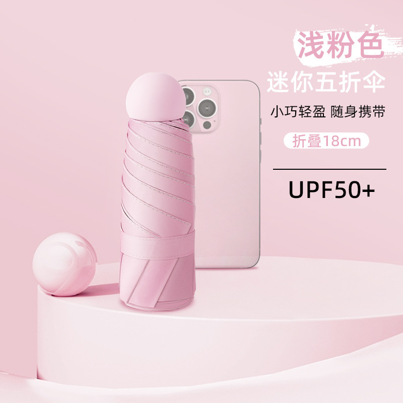 5 배 캡슐 우산 선 스크린 우산 태양 우산 미니 맑고 비오는 이중 목적 양산 우산 여성용 휴대용 로고 도매스토어 가기