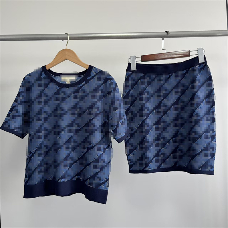 9065 아메리칸 싱글 ~ 여성의 봄 우아한 자카드 편지 크루 넥 반팔 니트 탑 세트 스커트